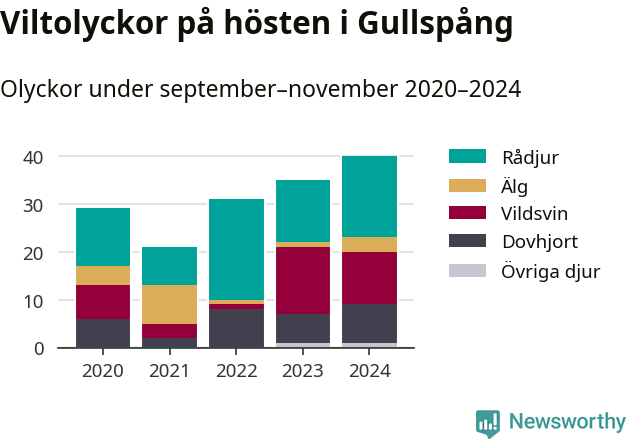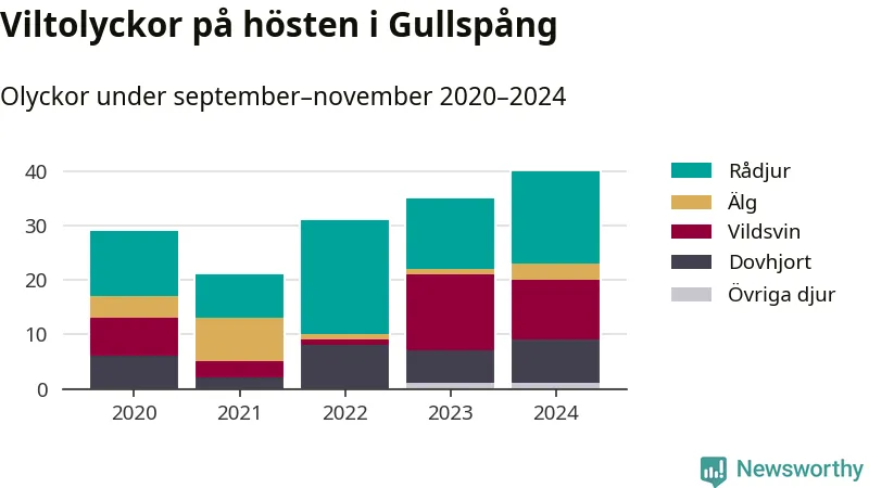 Källa: Nationella viltolycksrådet. Gäller olyckor under månaderna september–november 2020–2024.
