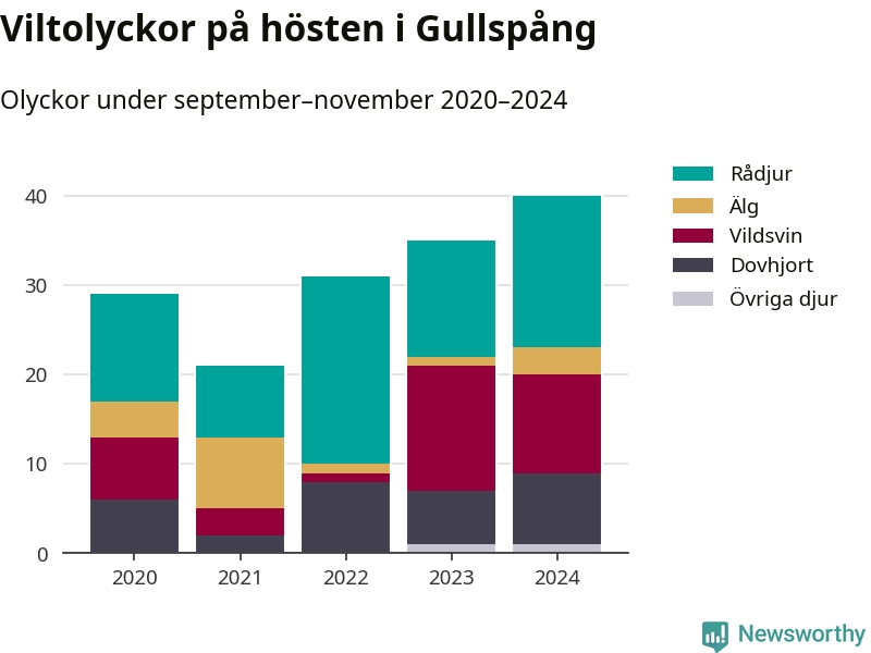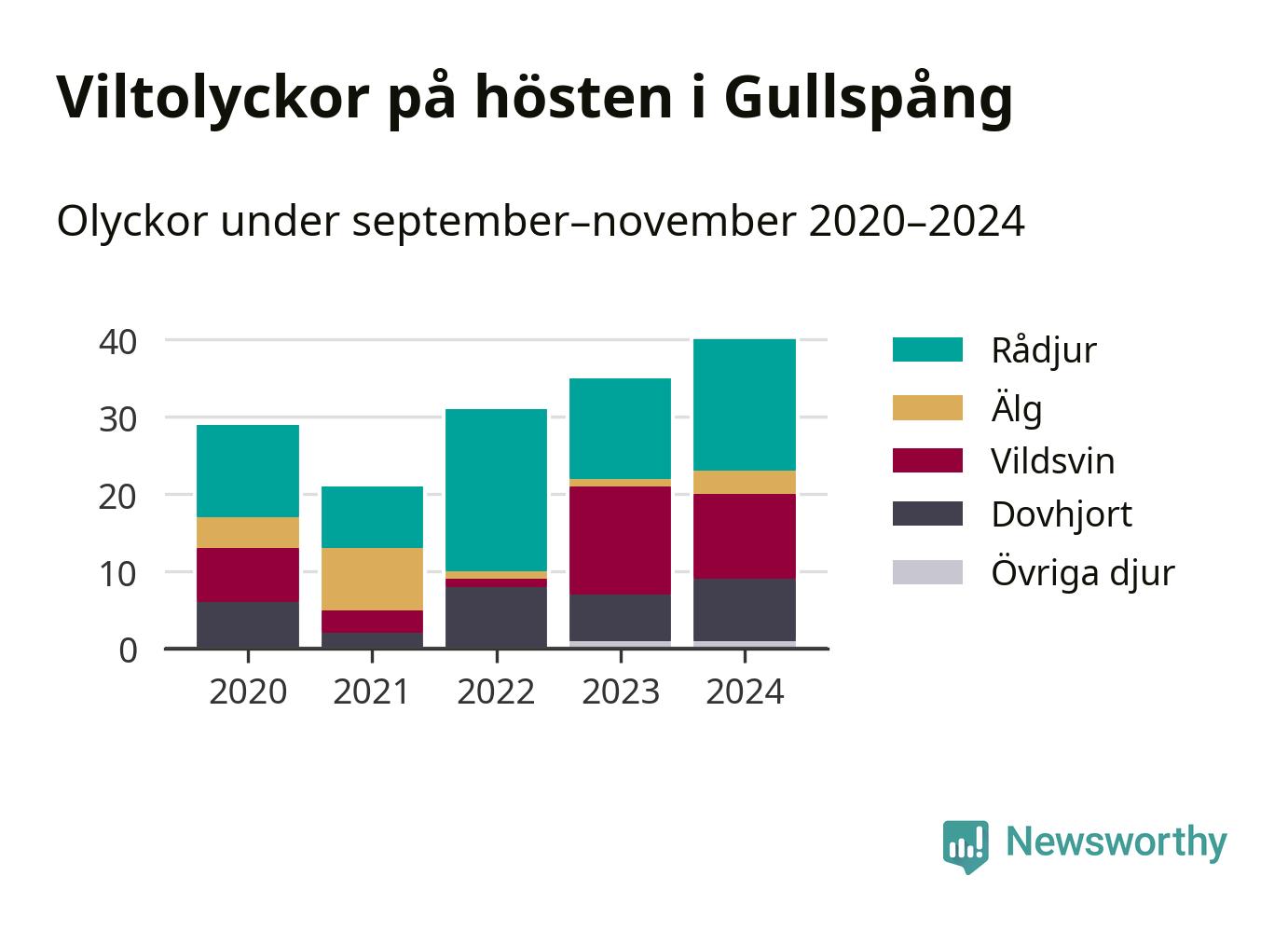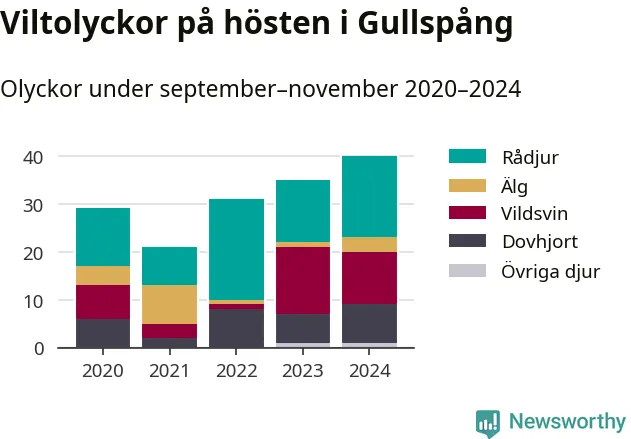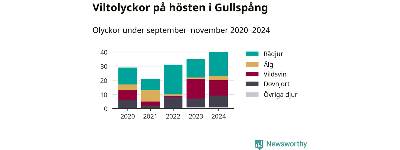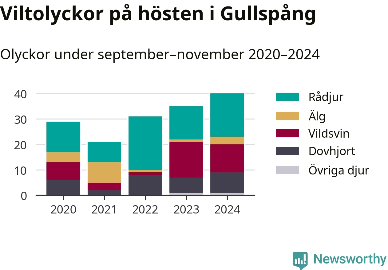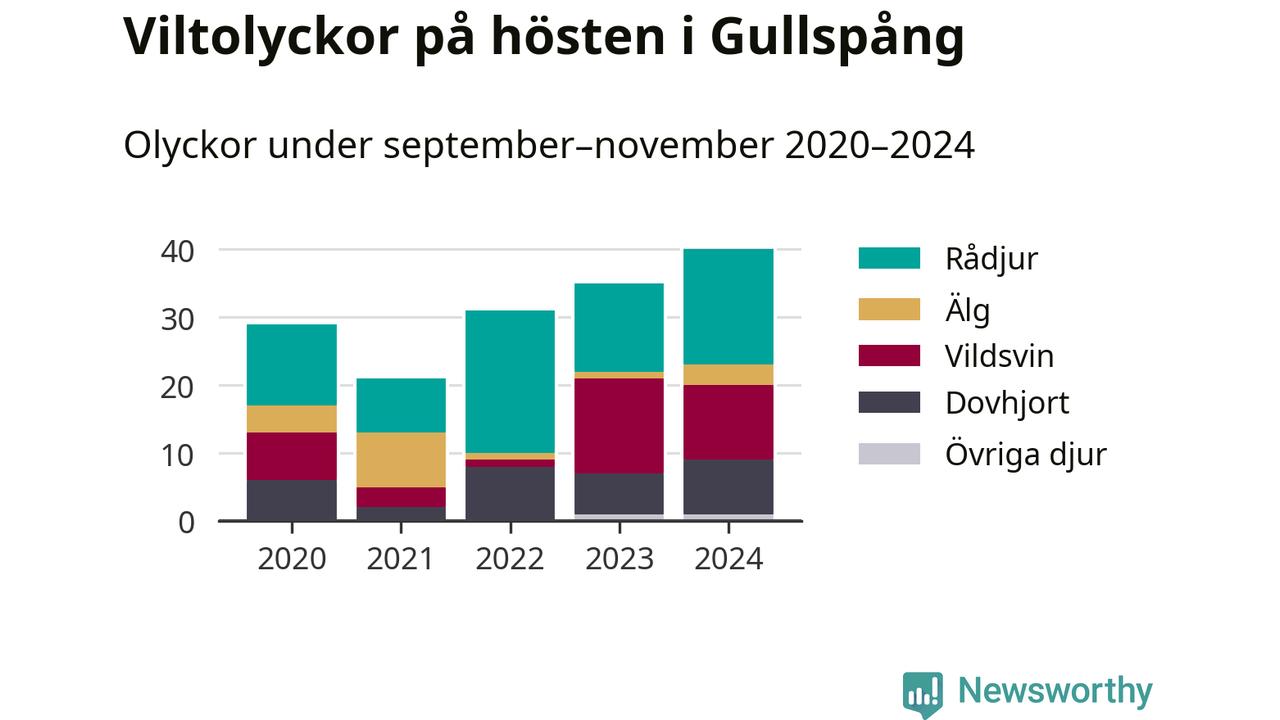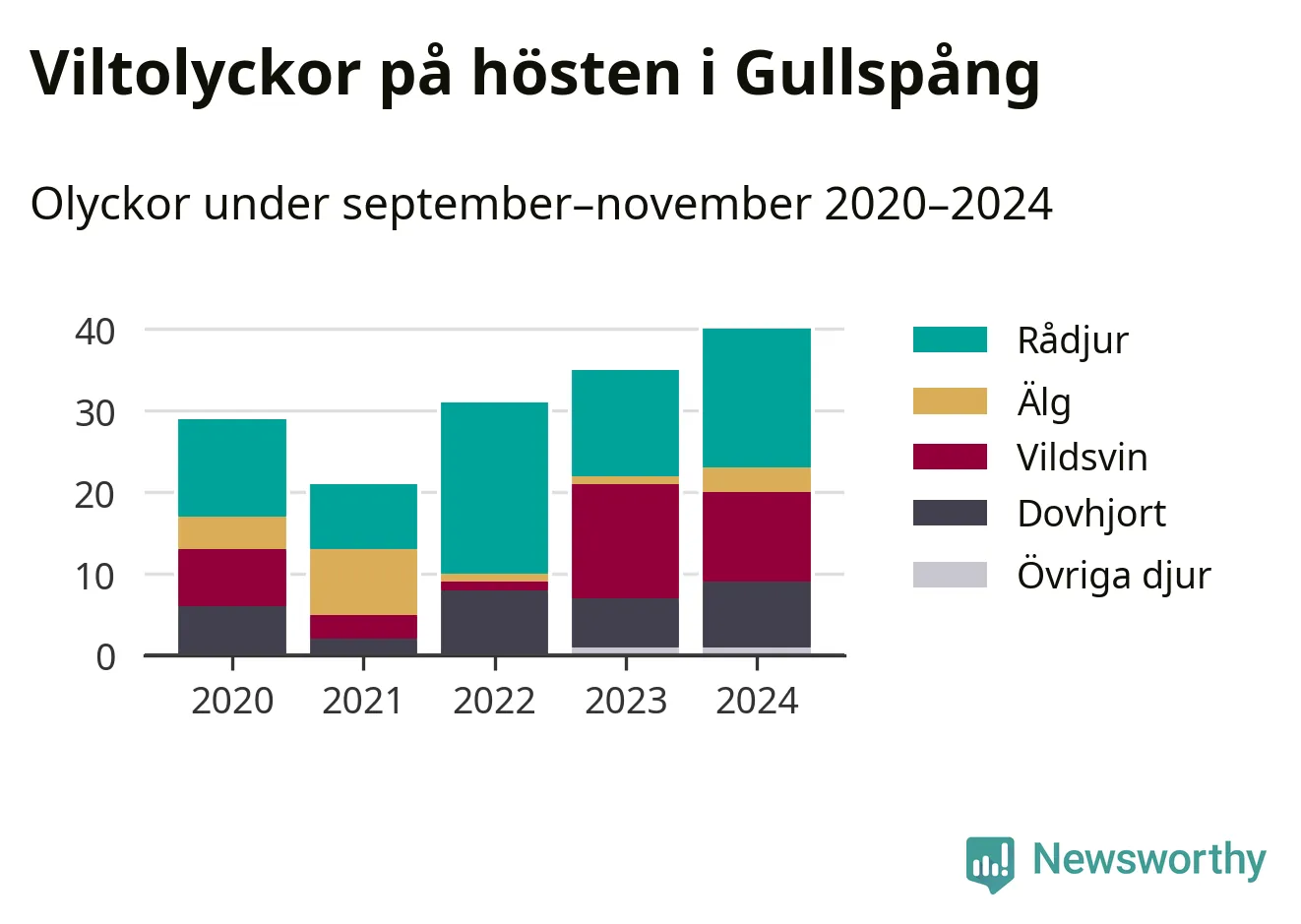 Under de senaste höstarna har antalet viltolyckor ökat i Sverige. I fjol höst noterades också flest viltolyckor i Gullspång hittills under 2020-talet, totalt 40 stycken.