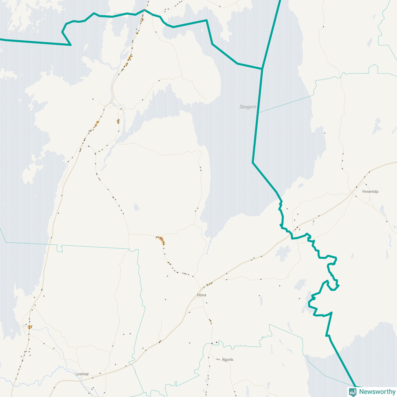 Den mest olycksdrabbade vägen i Västra Götaland är väg 190, med totalt 399 rapporterade viltolyckor i länet under femårsperioden. Flest olyckor längs väg 190 – 282 stycken – skedde i Alingsås kommun. Alingsås är också den kommun med flest registrerade viltolyckor i länet totalt, 907 stycken under perioden september–november 2020–2024.