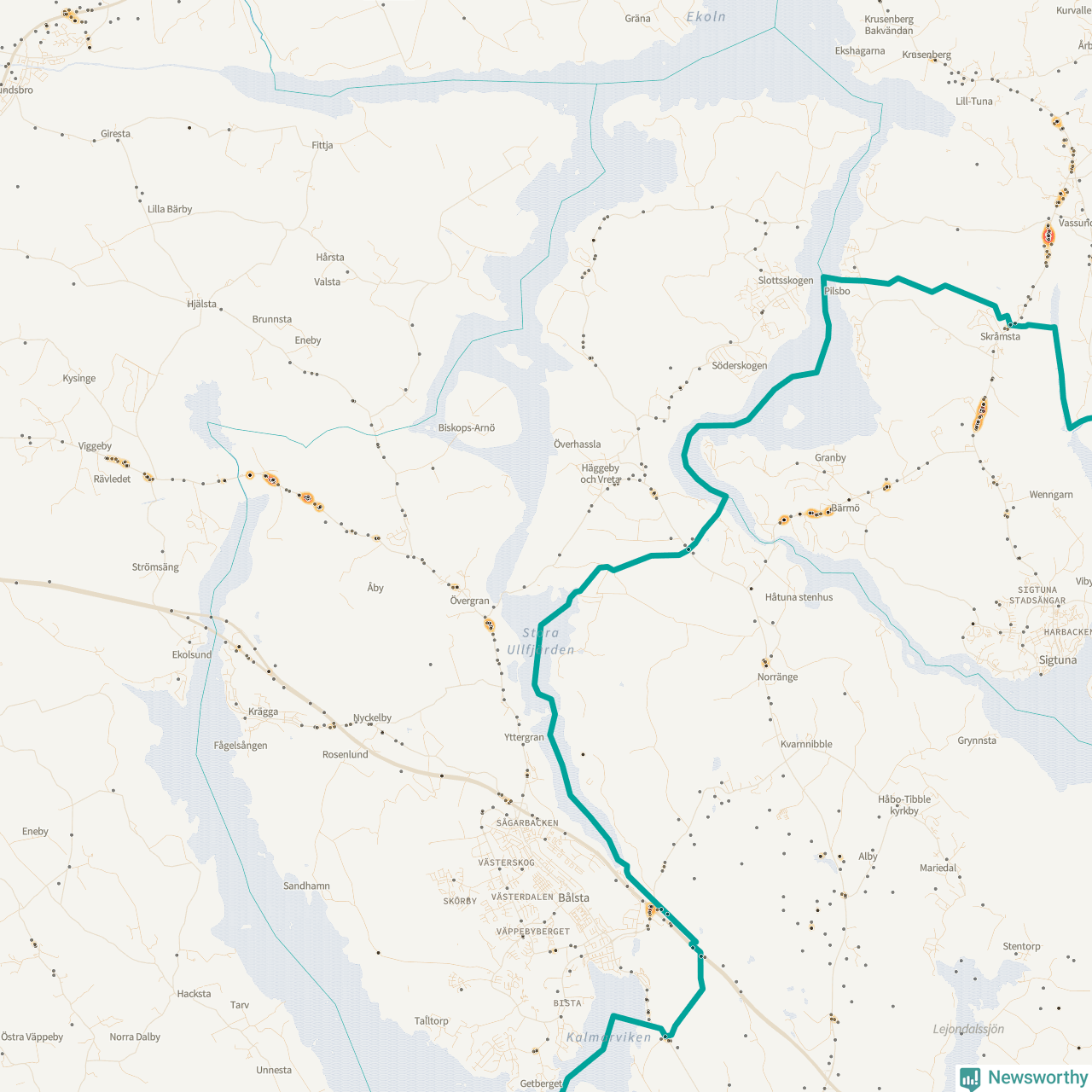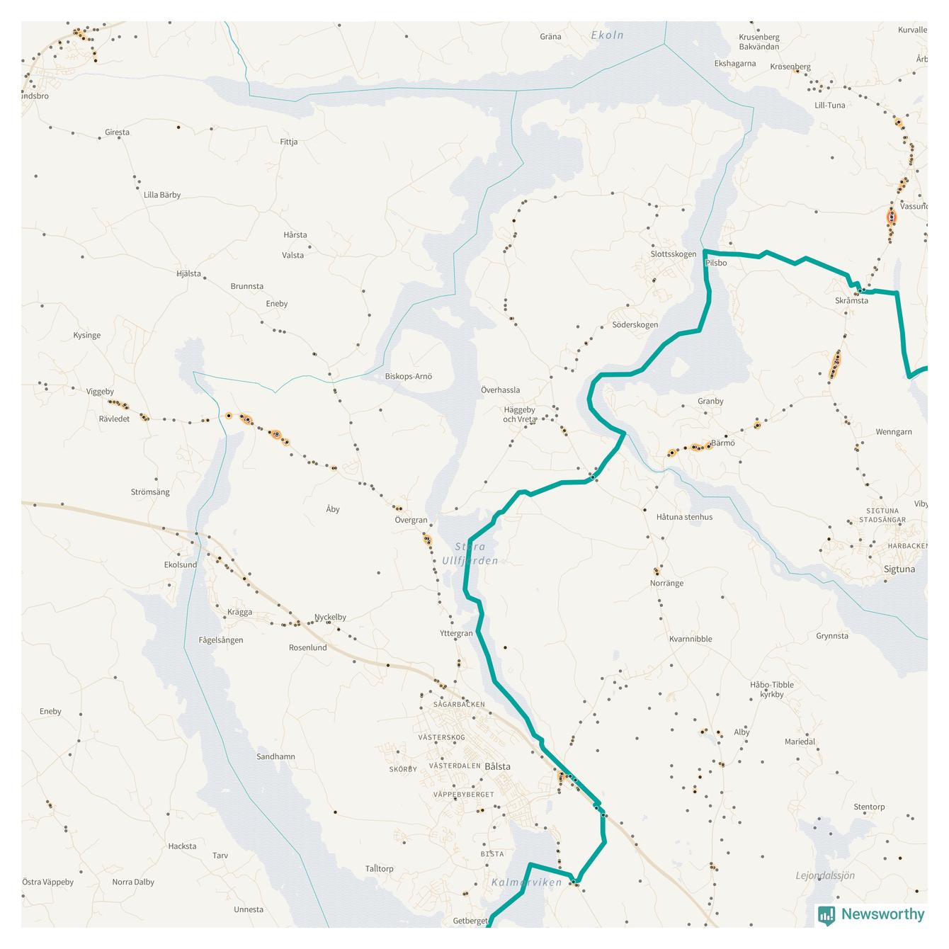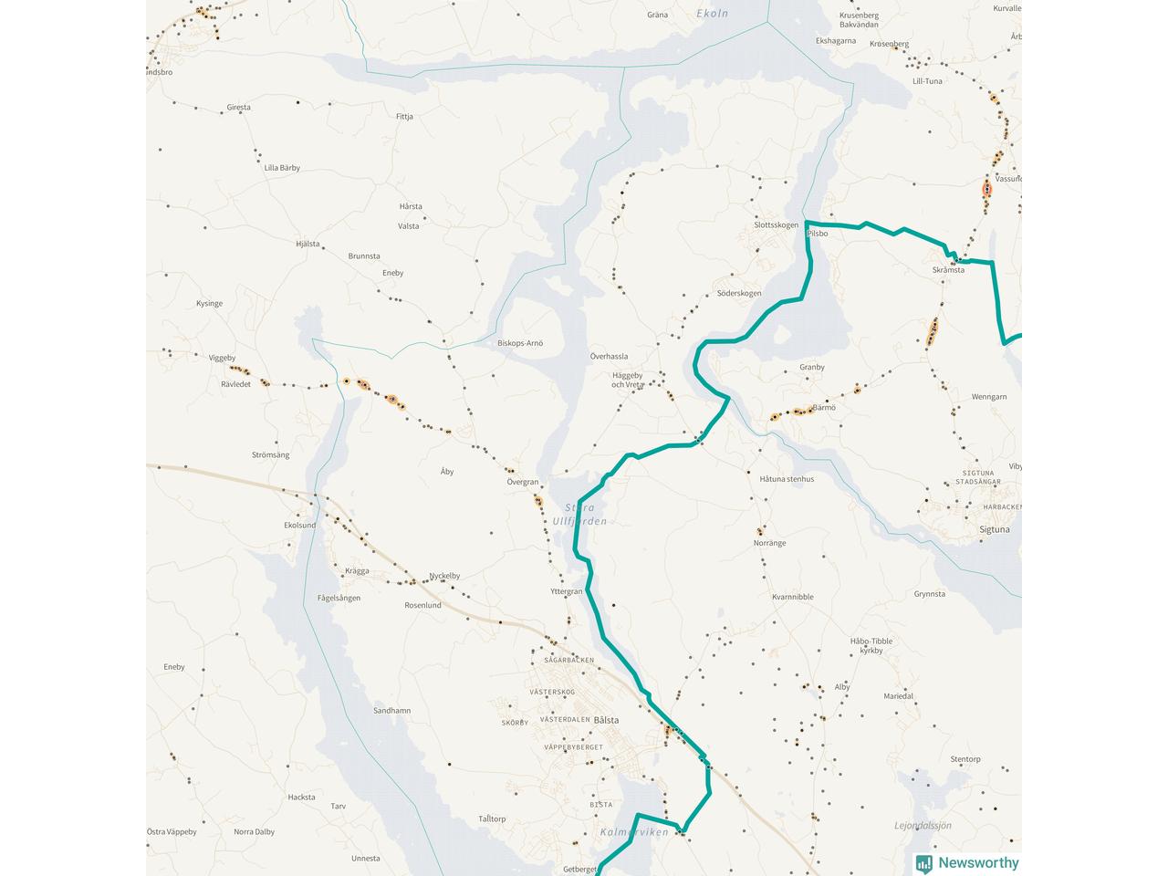 De mest viltolycksdrabbade vägarna i Håbo 2020–2024