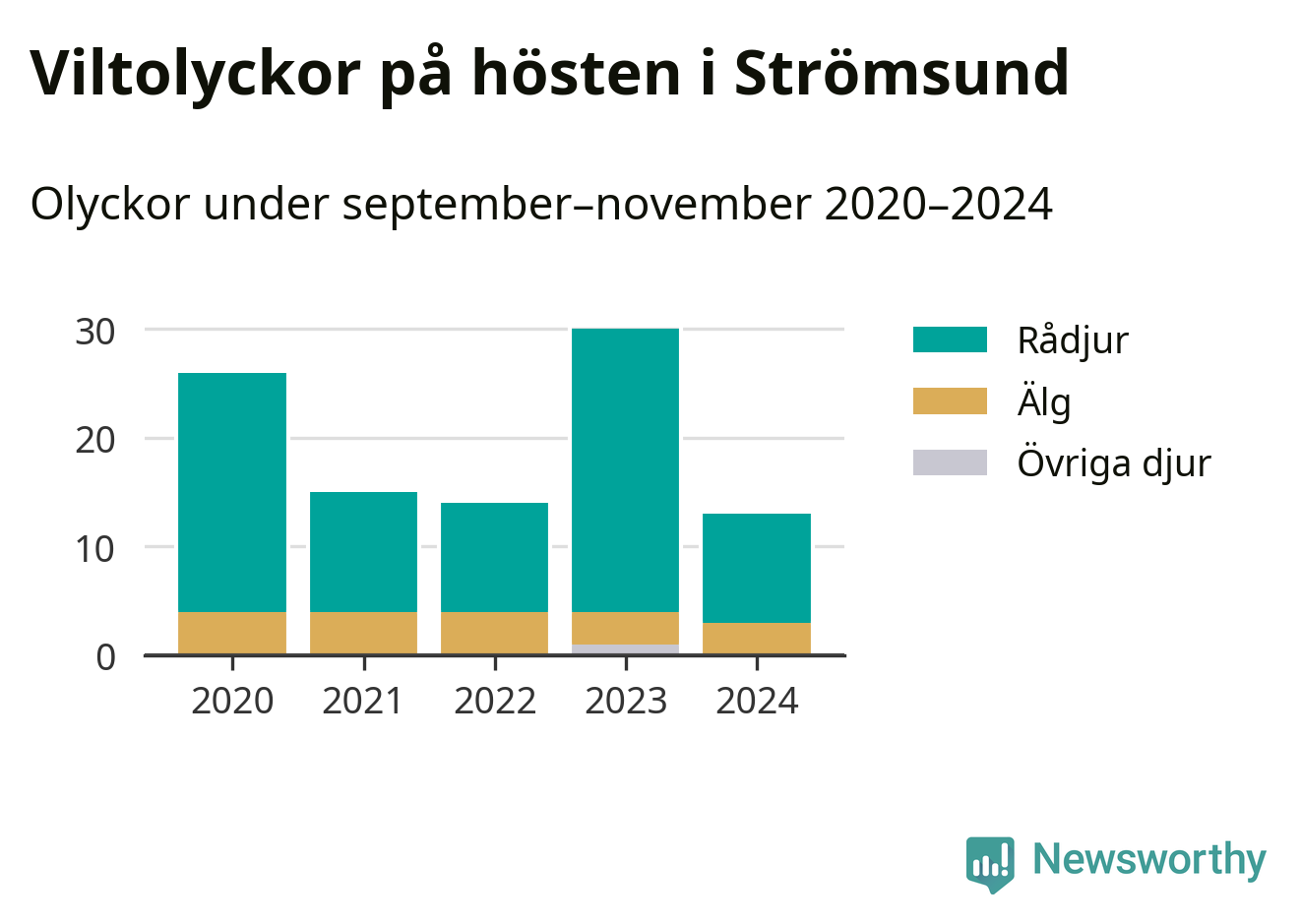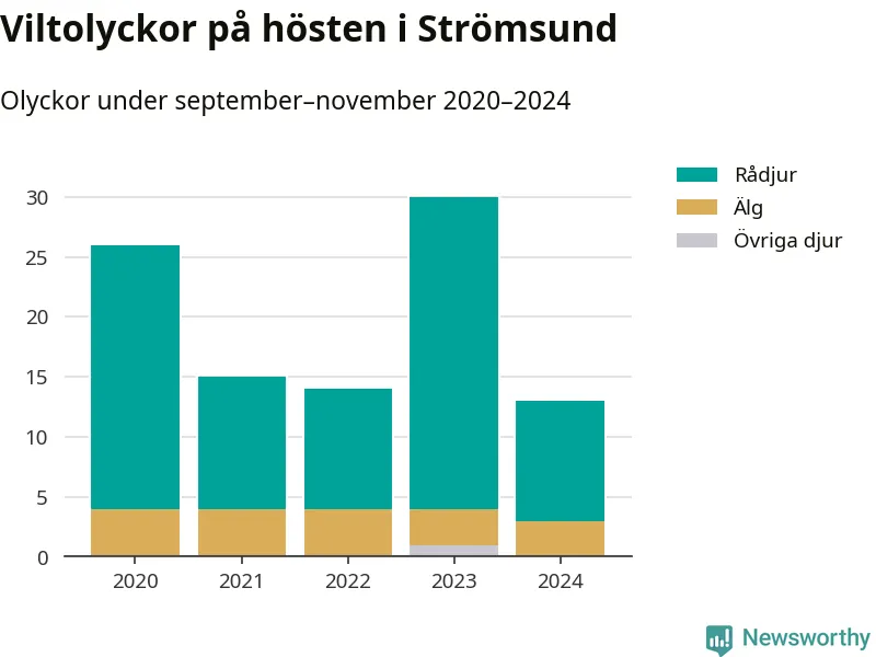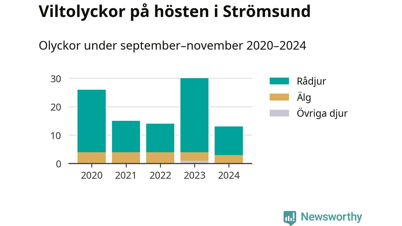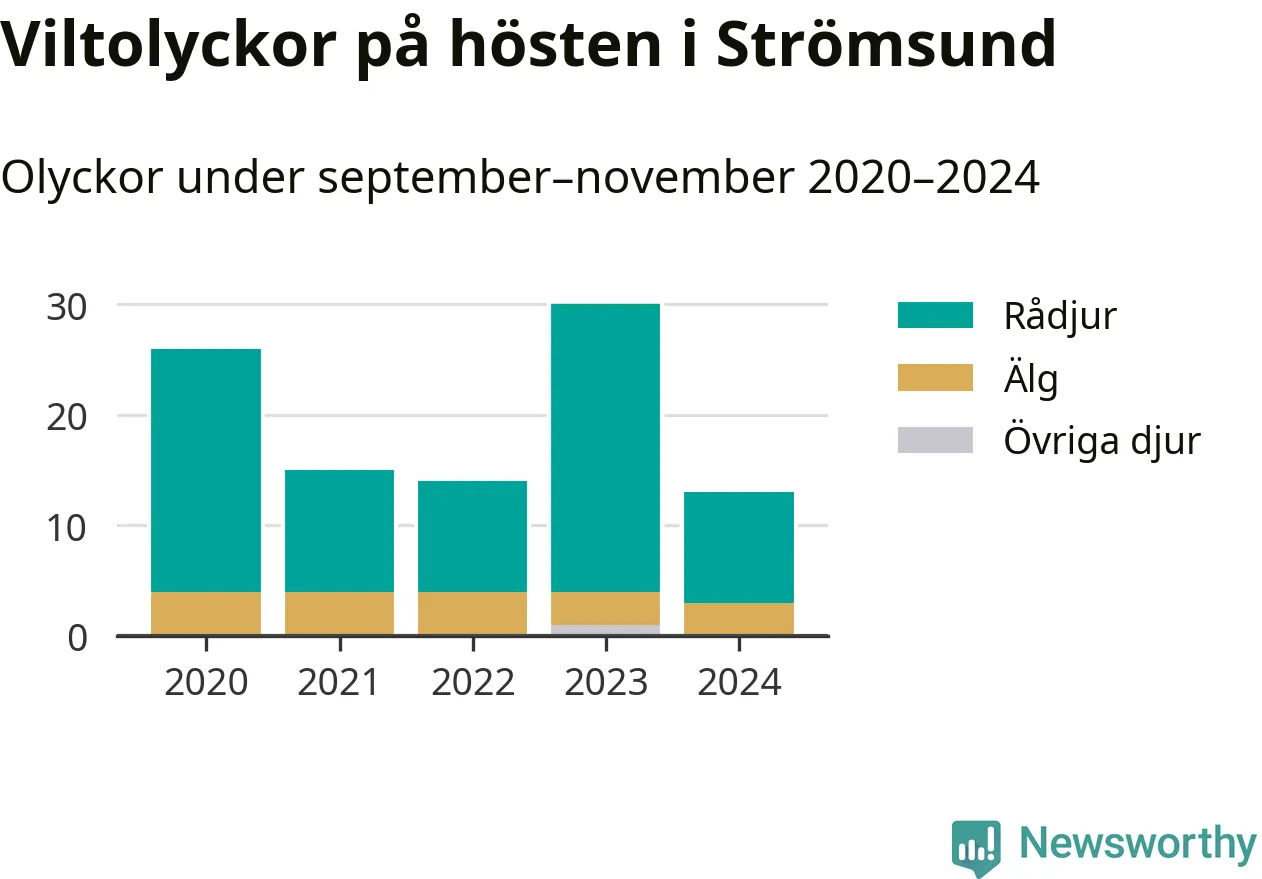Under de senaste höstarna har antalet viltolyckor ökat i Sverige. I fjol höst noterades dock färst viltolyckor i Strömsund hittills under 2020-talet, totalt 13 stycken.