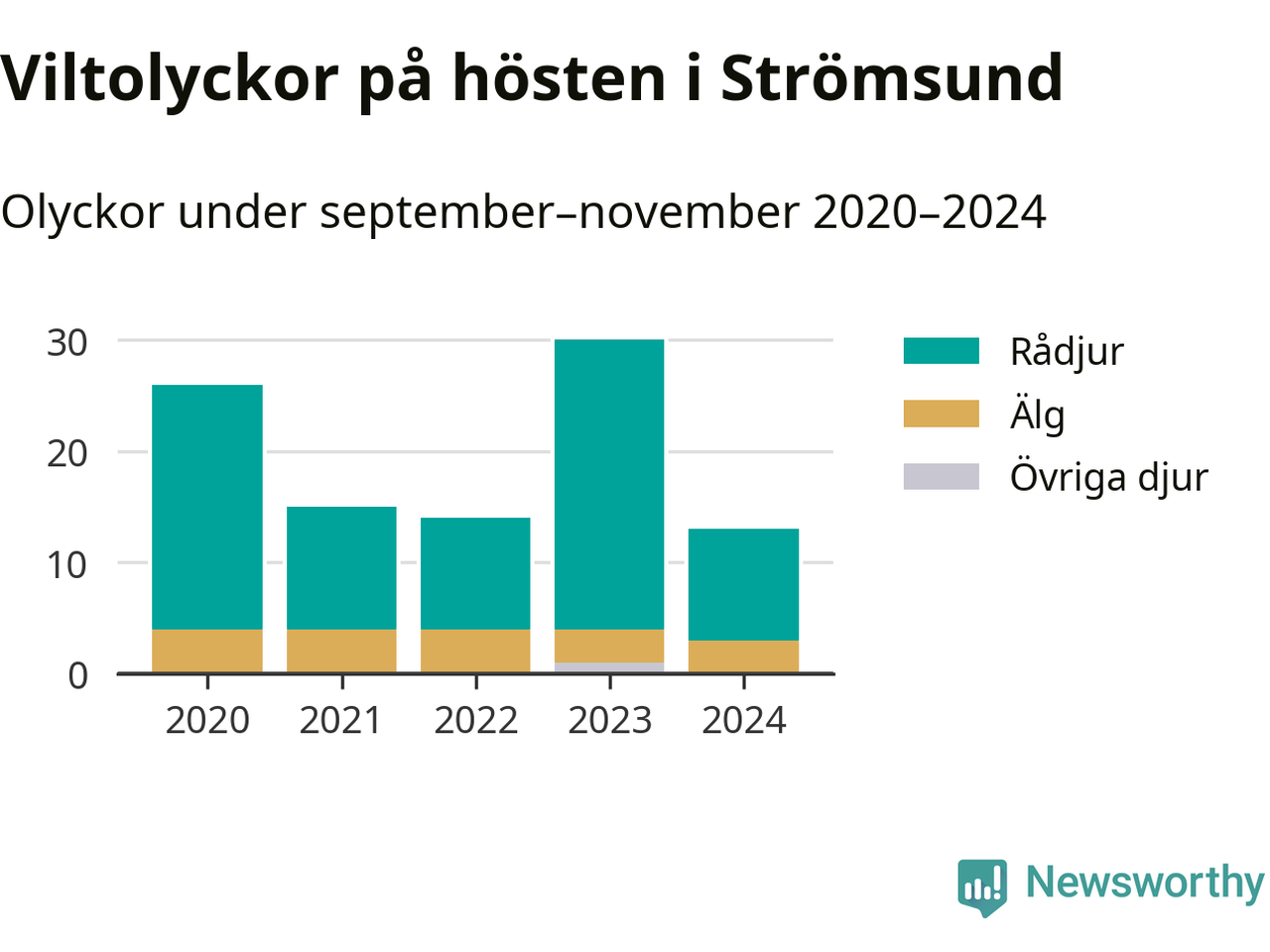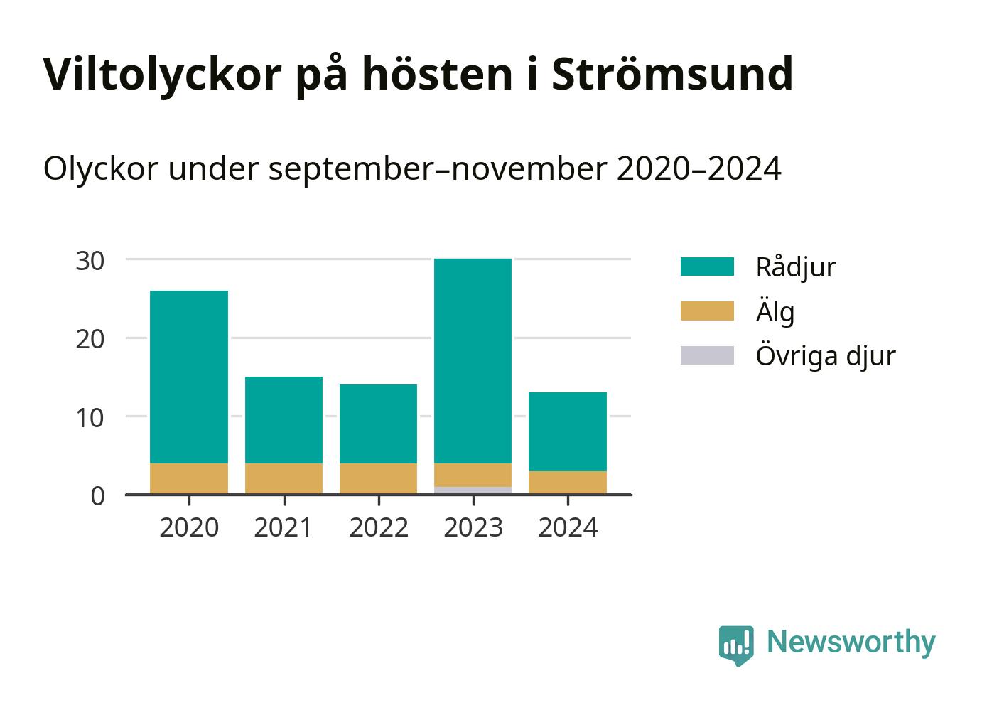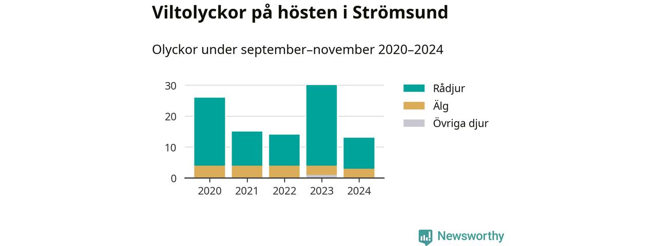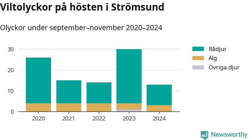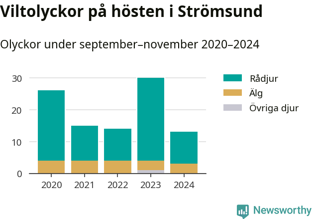 Under de senaste höstarna har antalet viltolyckor ökat i Sverige. I fjol höst noterades dock färst viltolyckor i Strömsund hittills under 2020-talet, totalt 13 stycken.