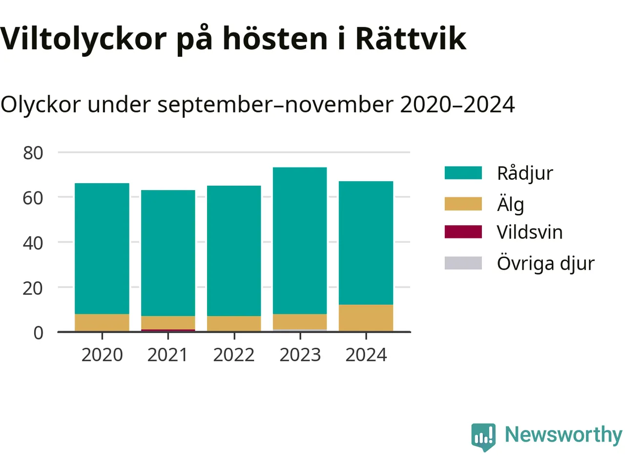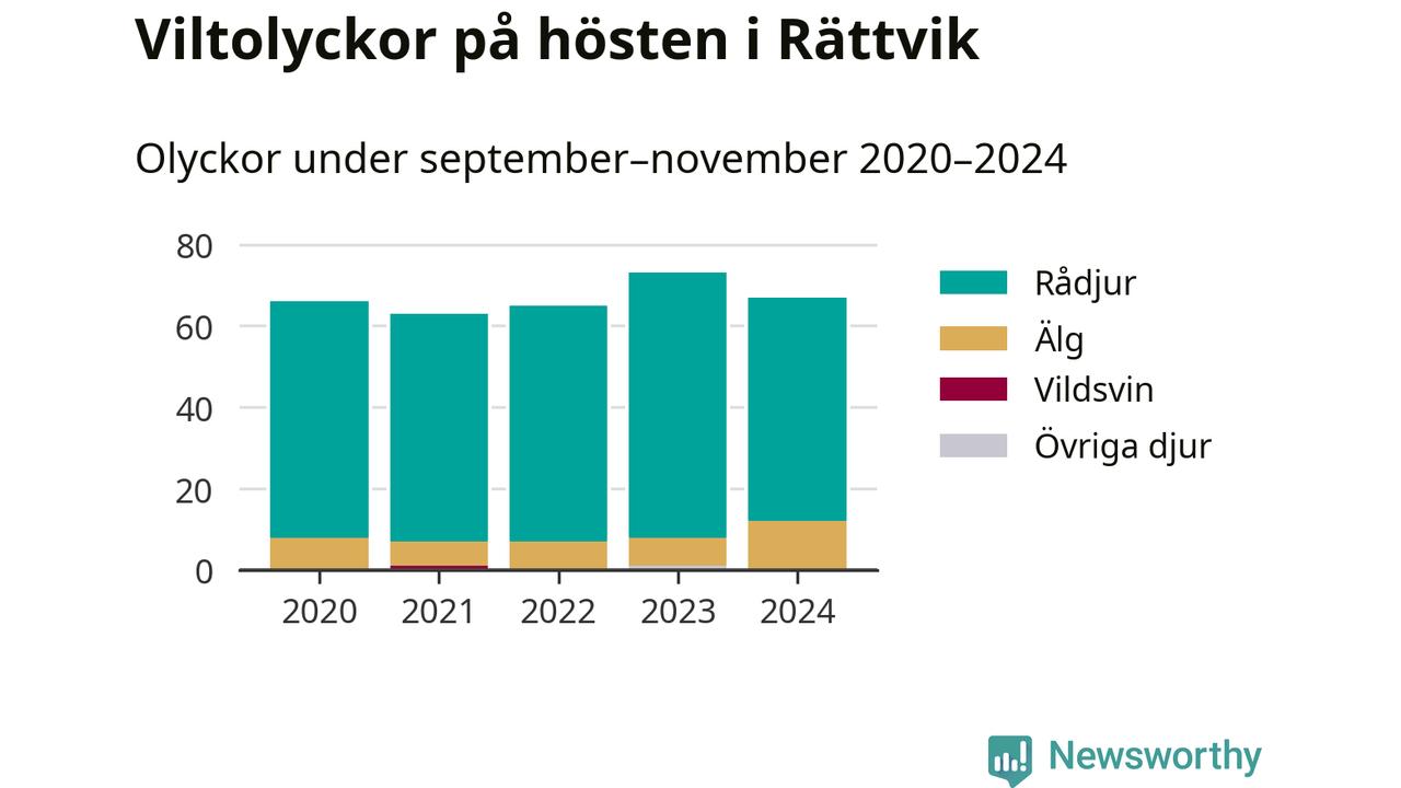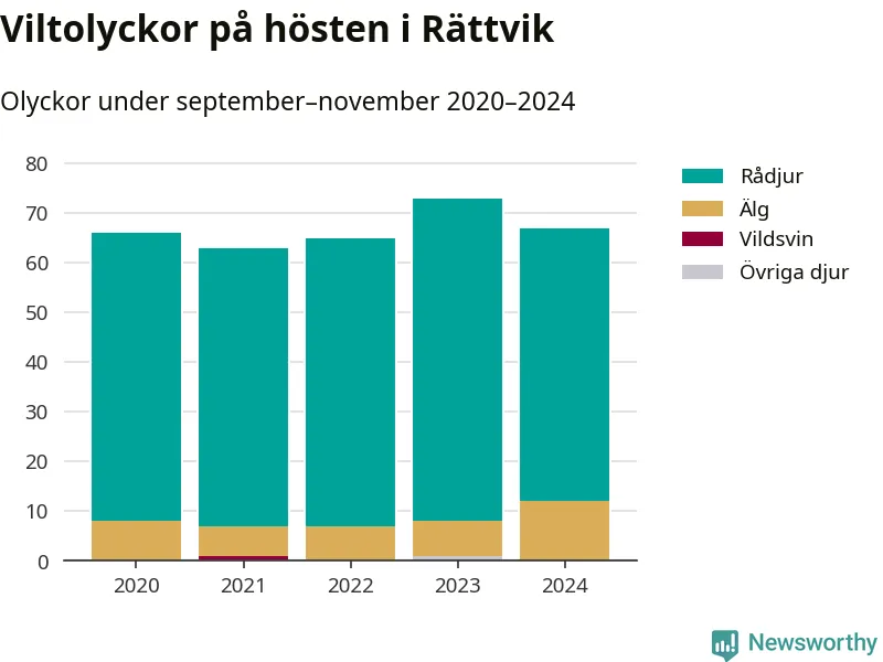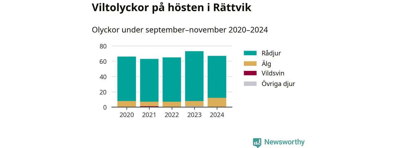 Under de senaste höstarna har antalet viltolyckor ökat i Sverige. Den höst med flest viltolyckor i Rättvik hittills under 2020-talet var 2023, 73 olyckor. I fjol höst rapporterades totalt 67 olyckor.