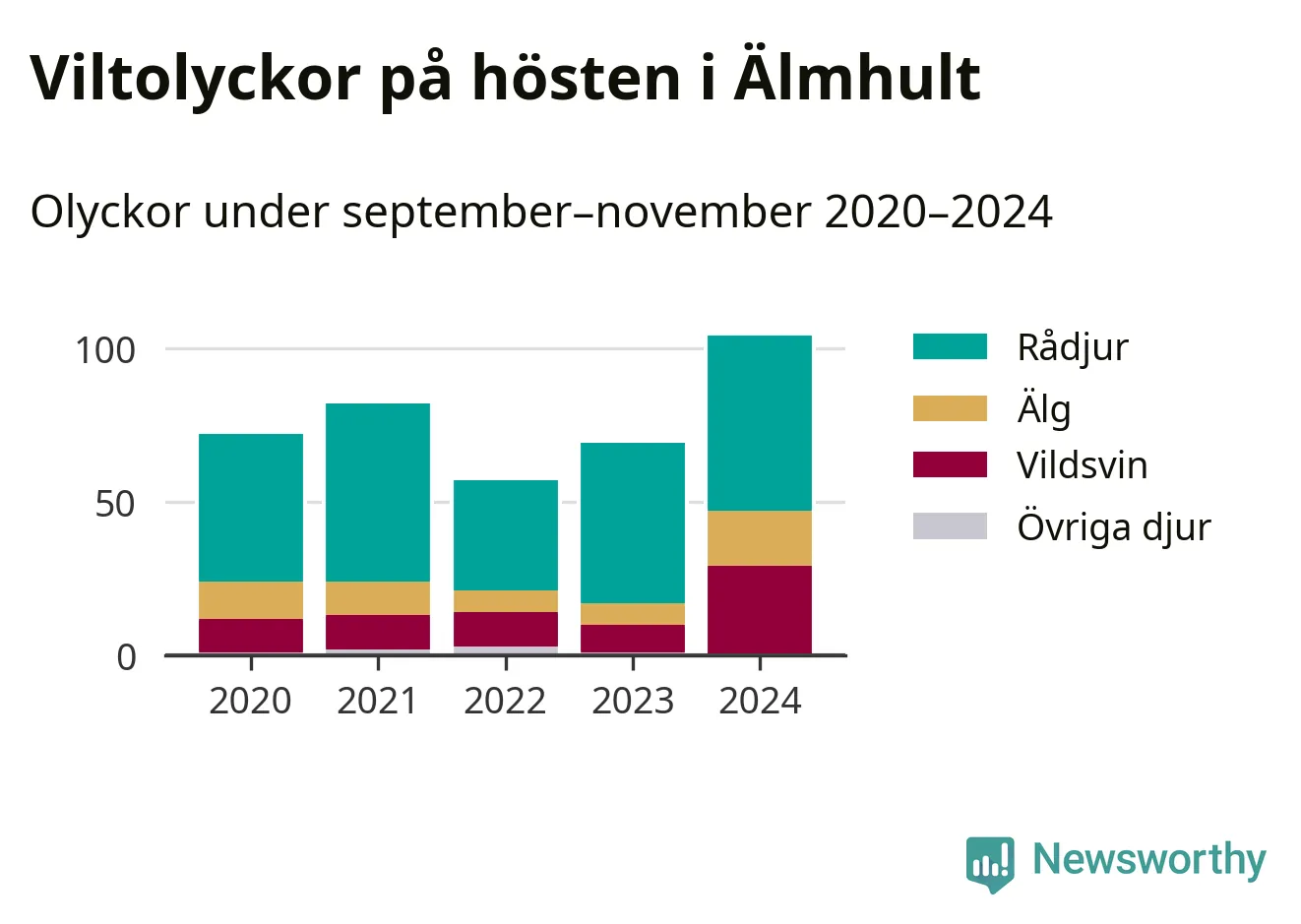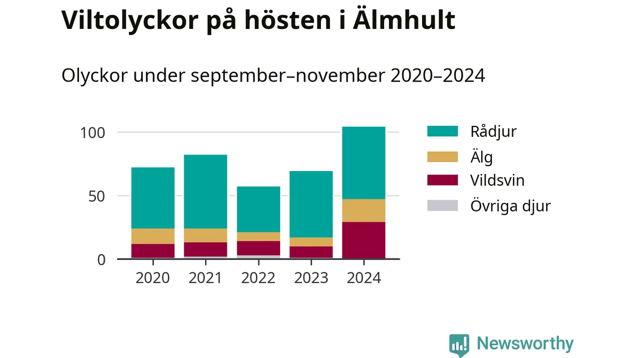 Under de senaste höstarna har antalet viltolyckor ökat i Sverige. I fjol höst noterades också flest viltolyckor i Älmhult hittills under 2020-talet, totalt 104 stycken.