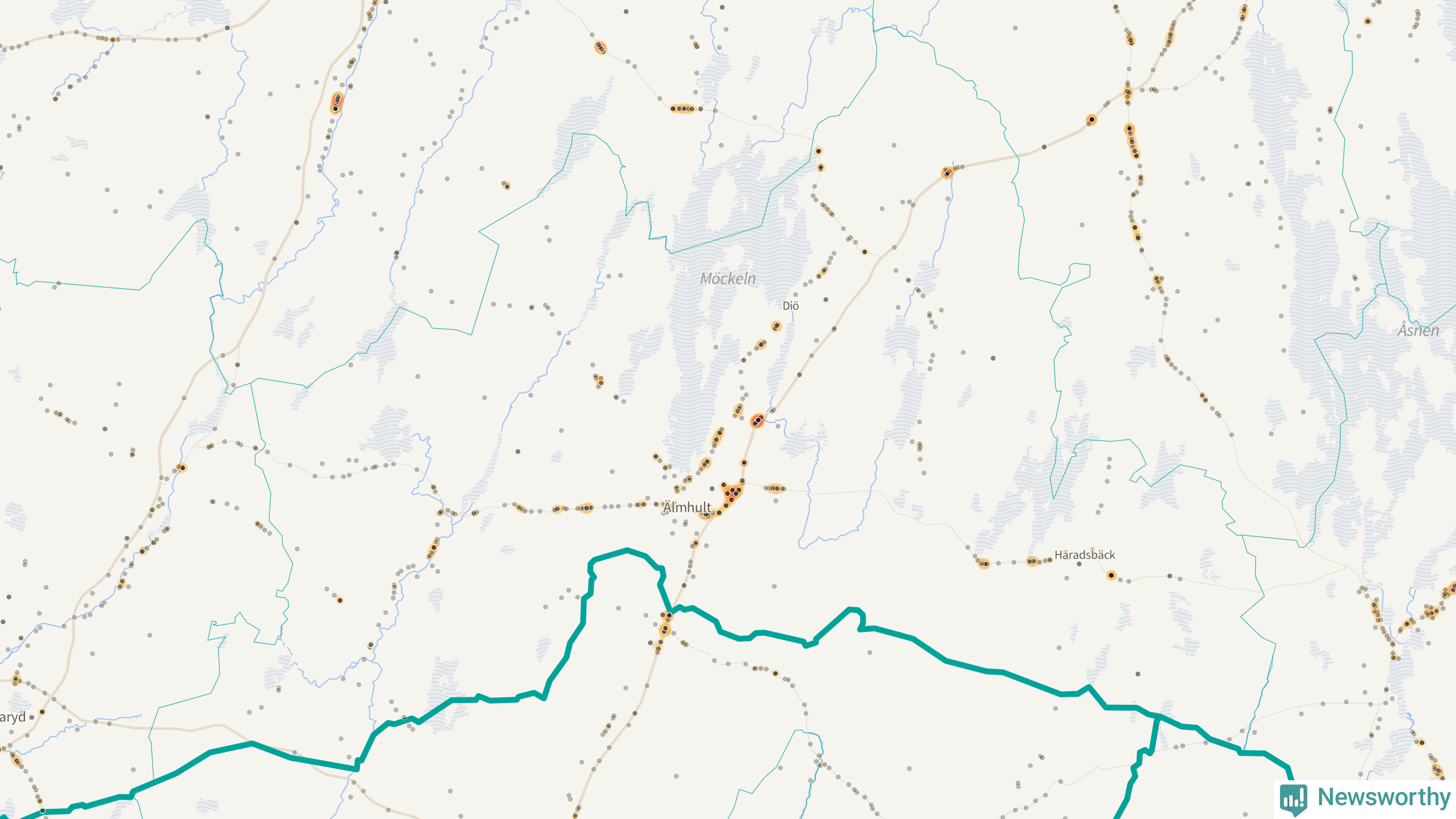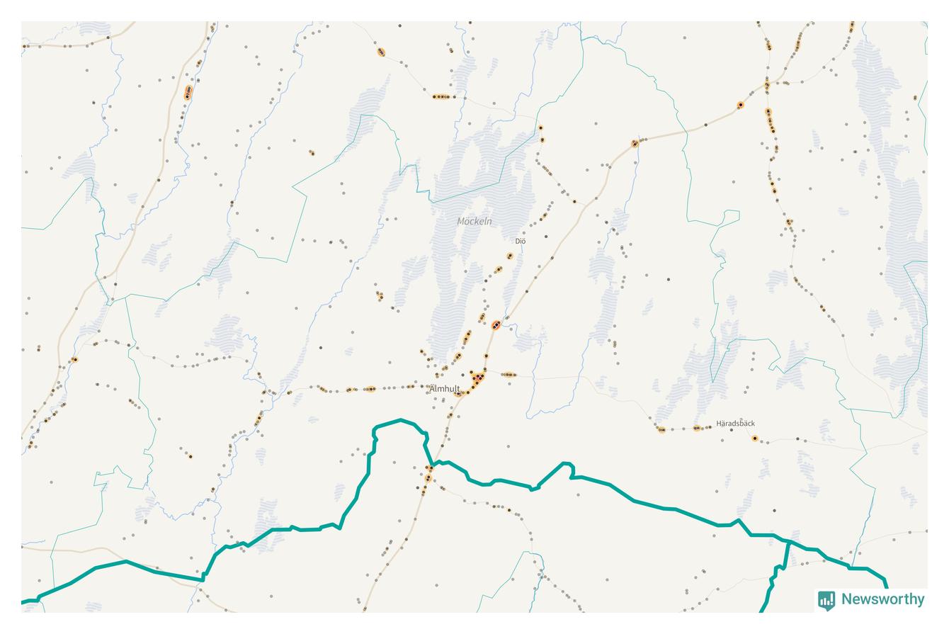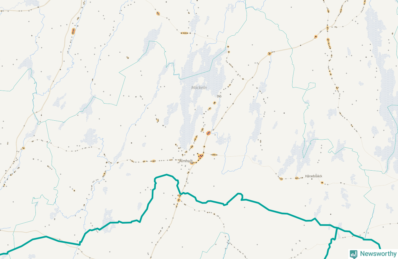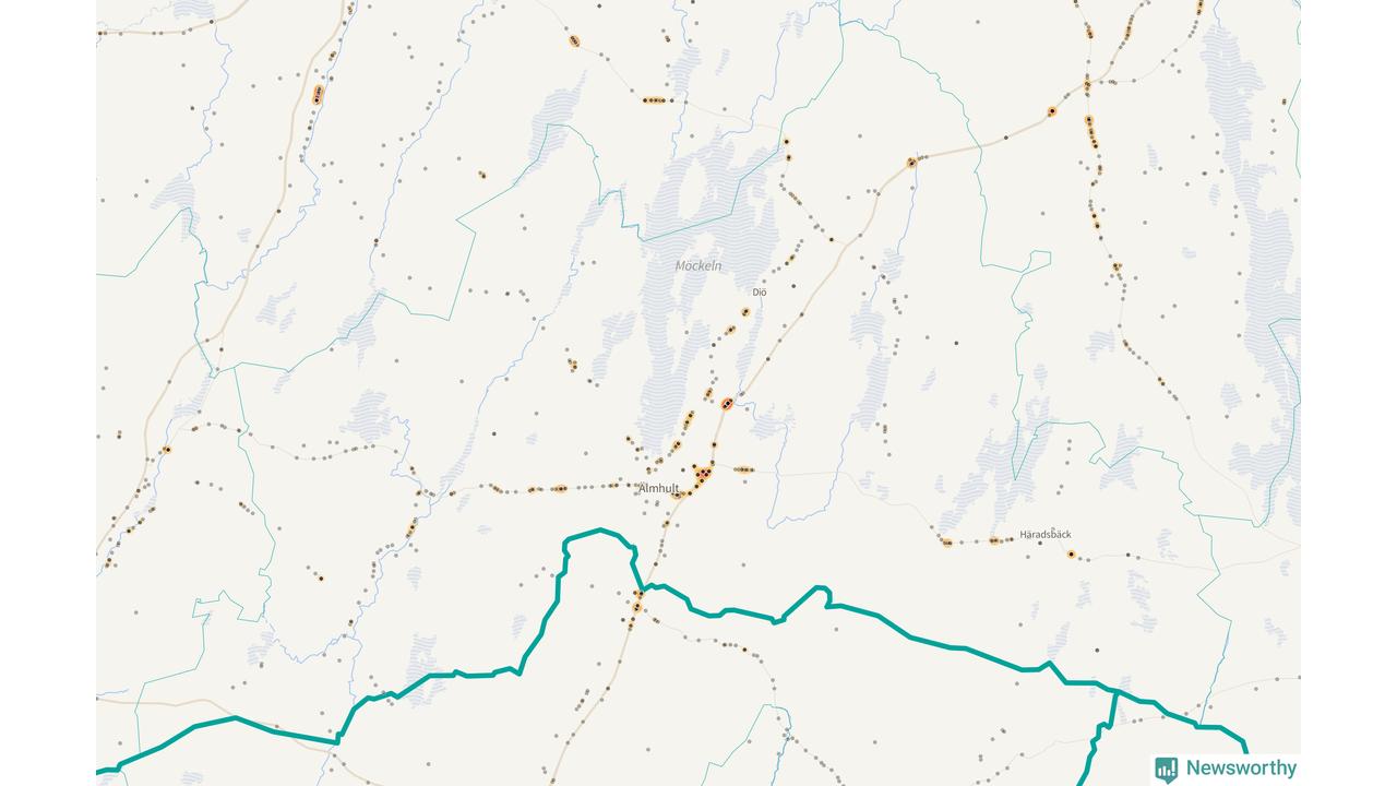 De mest viltolycksdrabbade vägarna i Älmhult 2020–2024