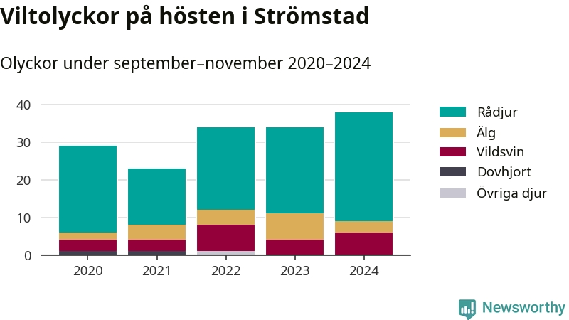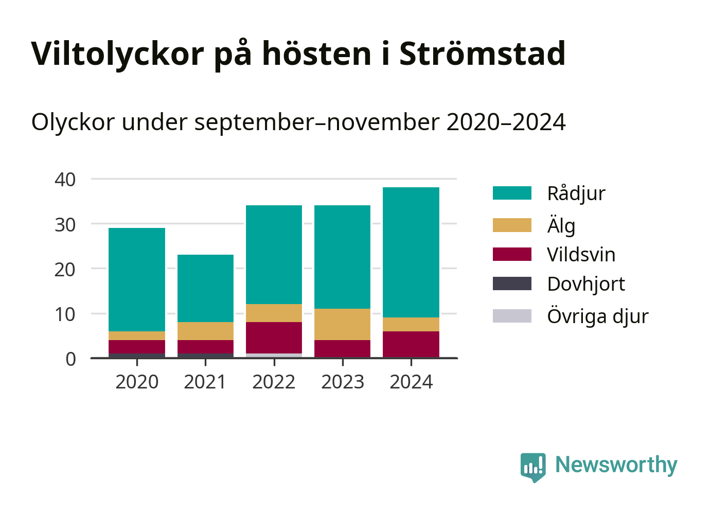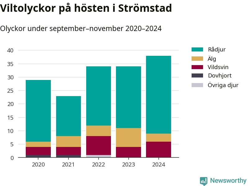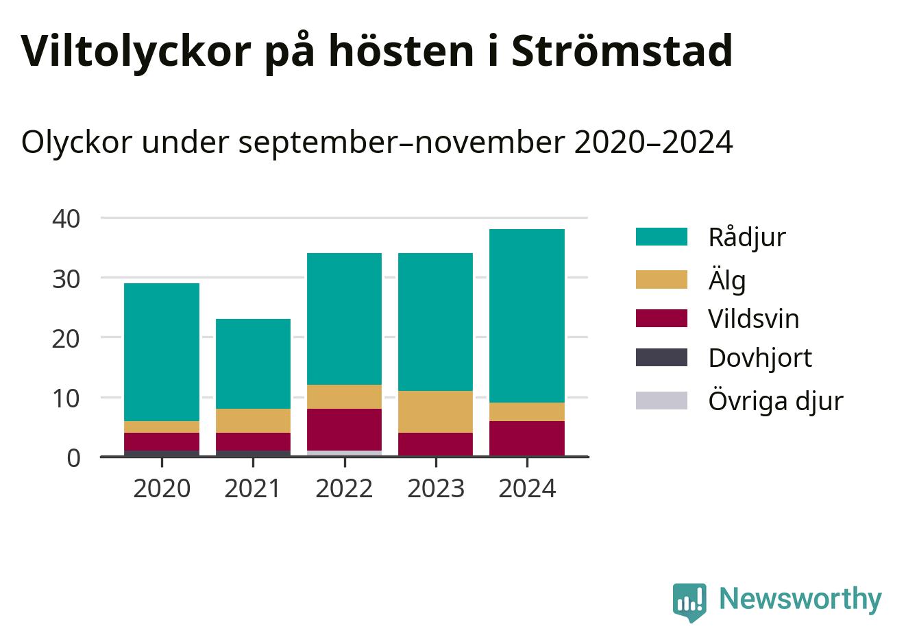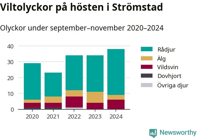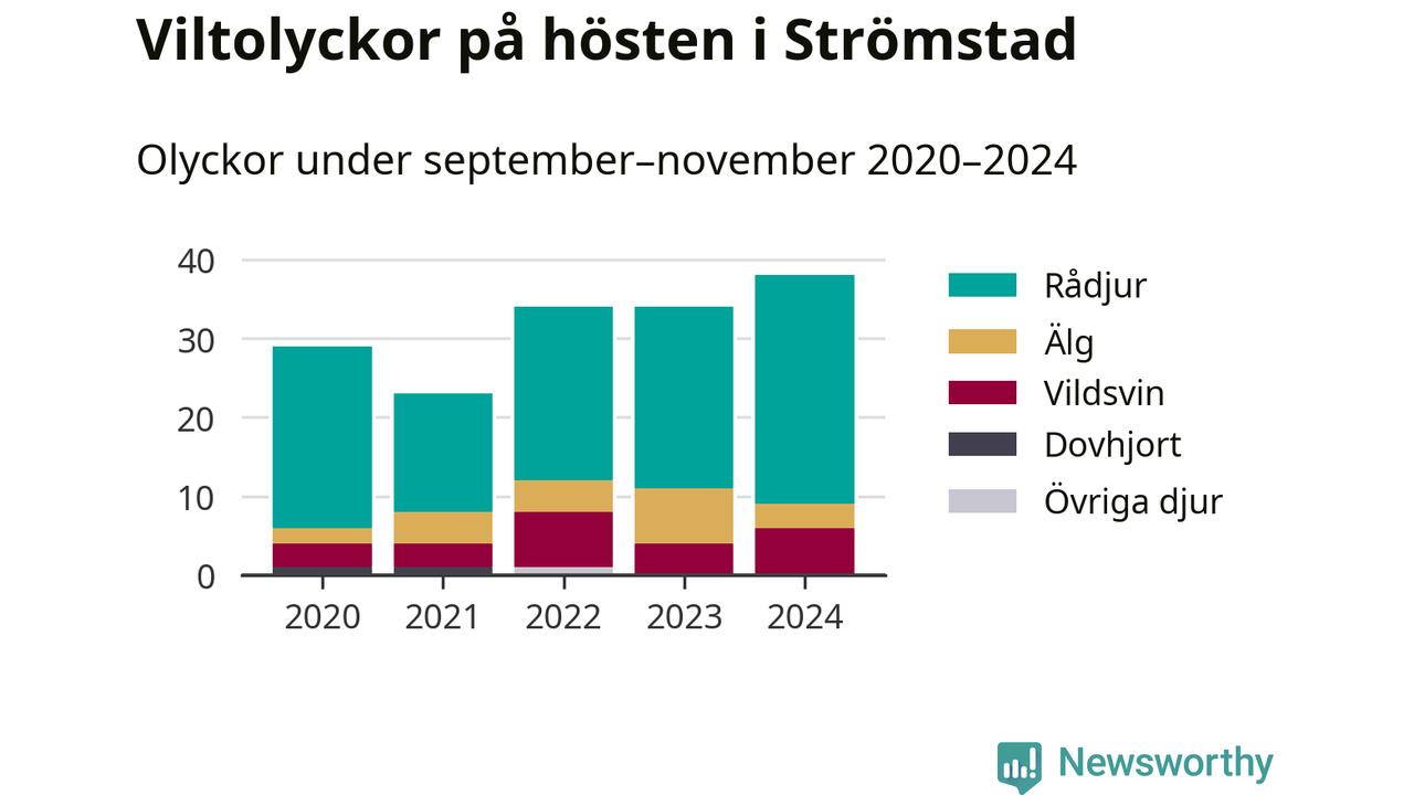 Under de senaste höstarna har antalet viltolyckor ökat i Sverige. I fjol höst noterades också flest viltolyckor i Strömstad hittills under 2020-talet, totalt 38 stycken.
