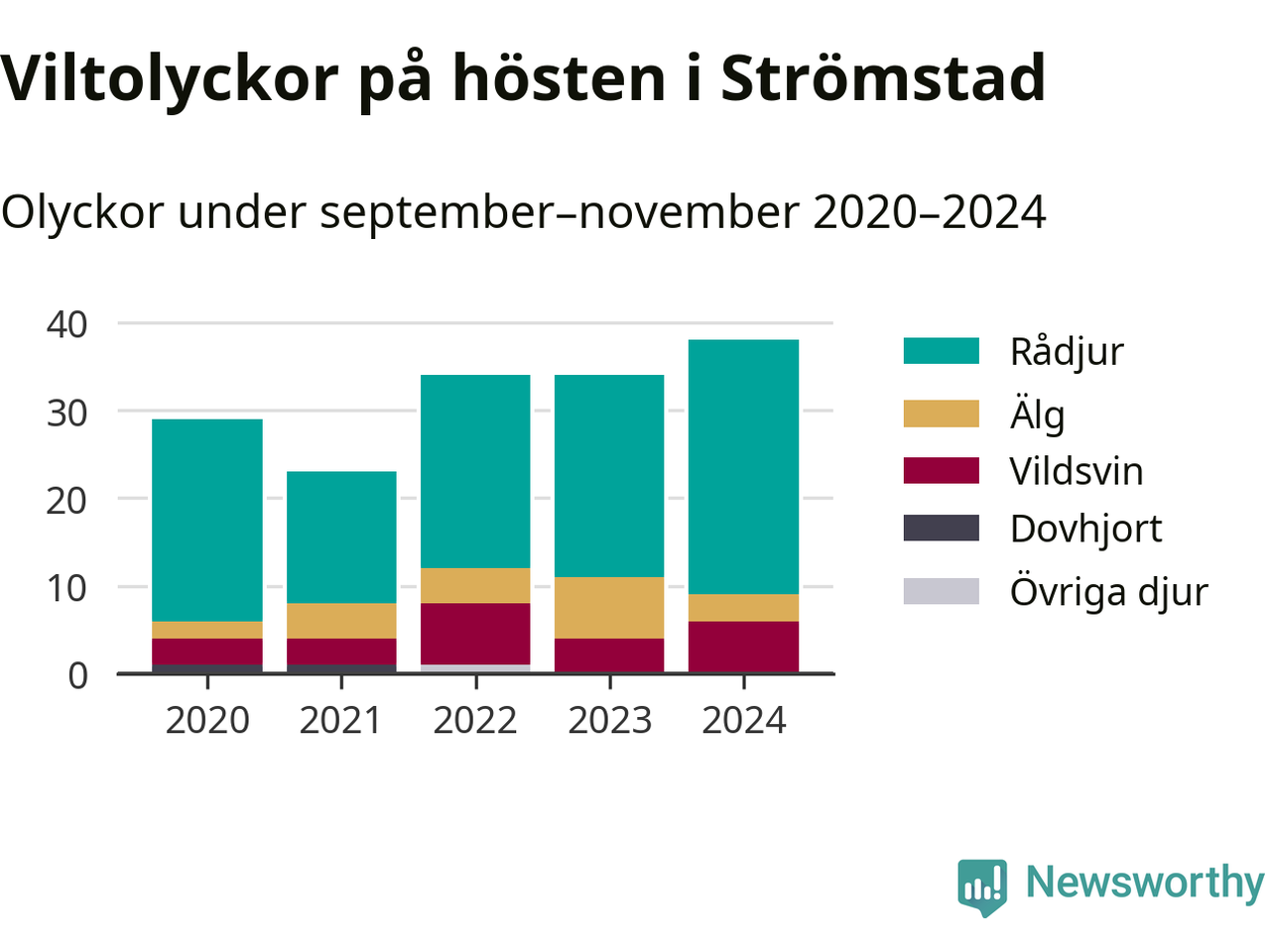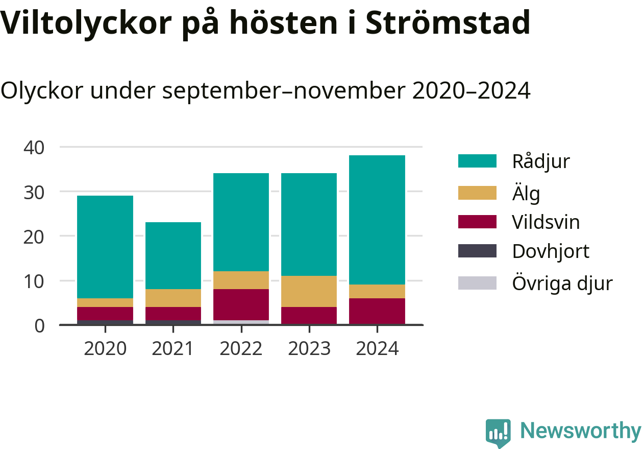 Källa: Nationella viltolycksrådet. Gäller olyckor under månaderna september–november 2020–2024.