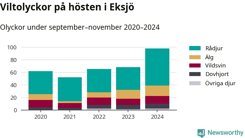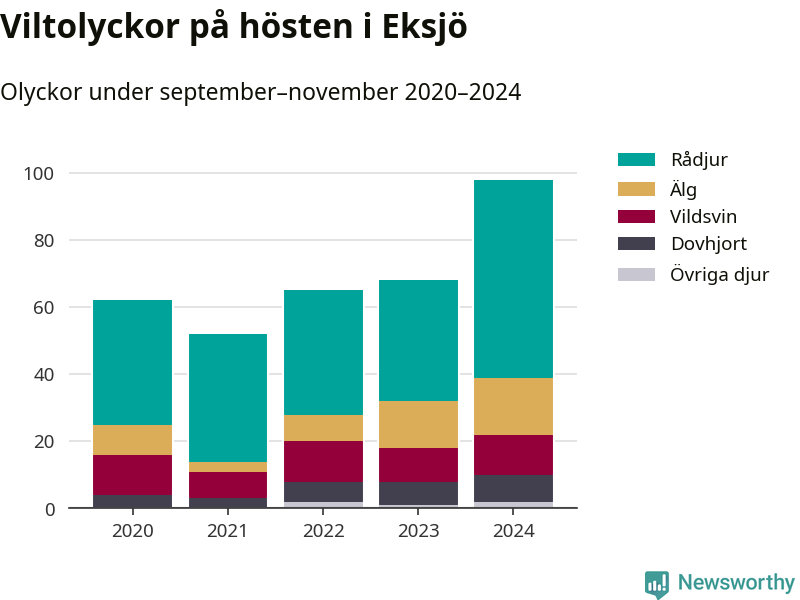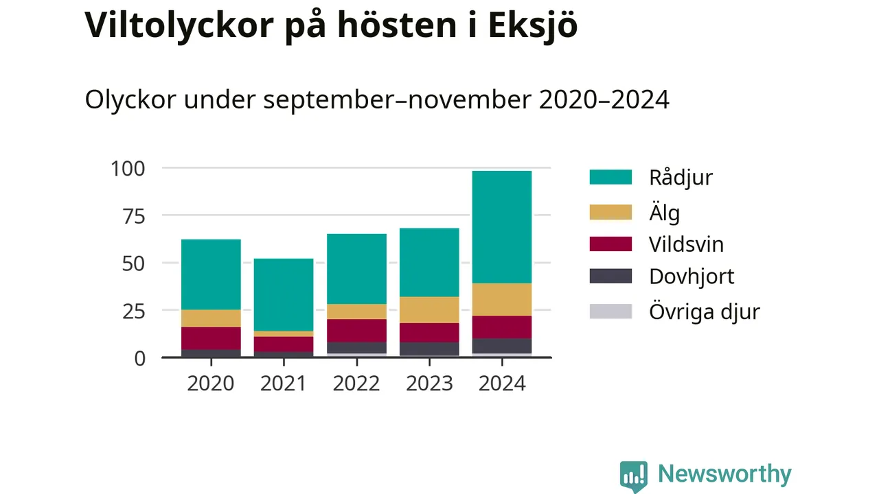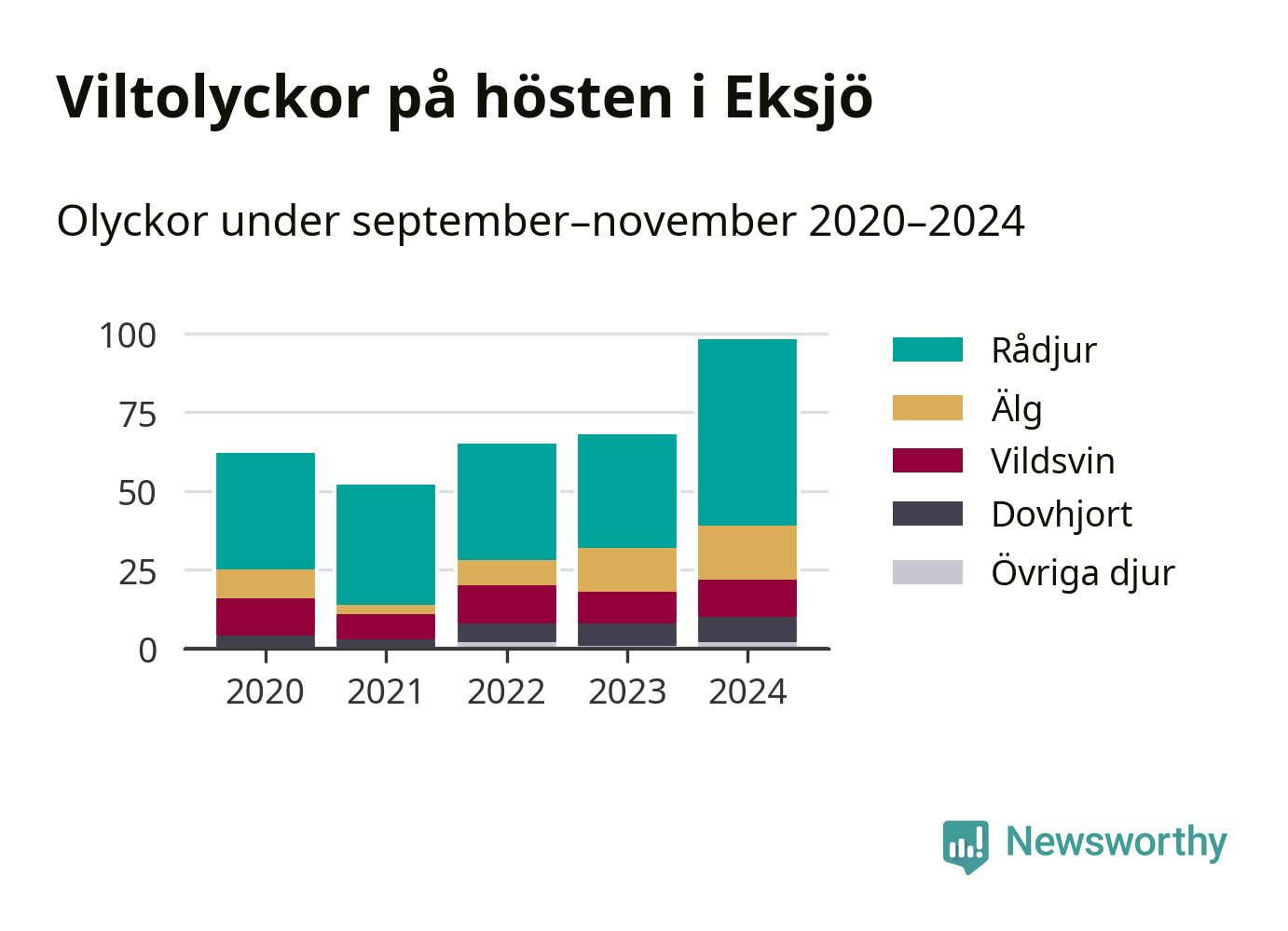 Under de senaste höstarna har antalet viltolyckor ökat i Sverige. I fjol höst noterades också flest viltolyckor i Eksjö hittills under 2020-talet, totalt 98 stycken.