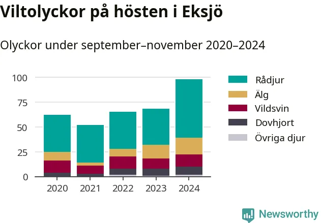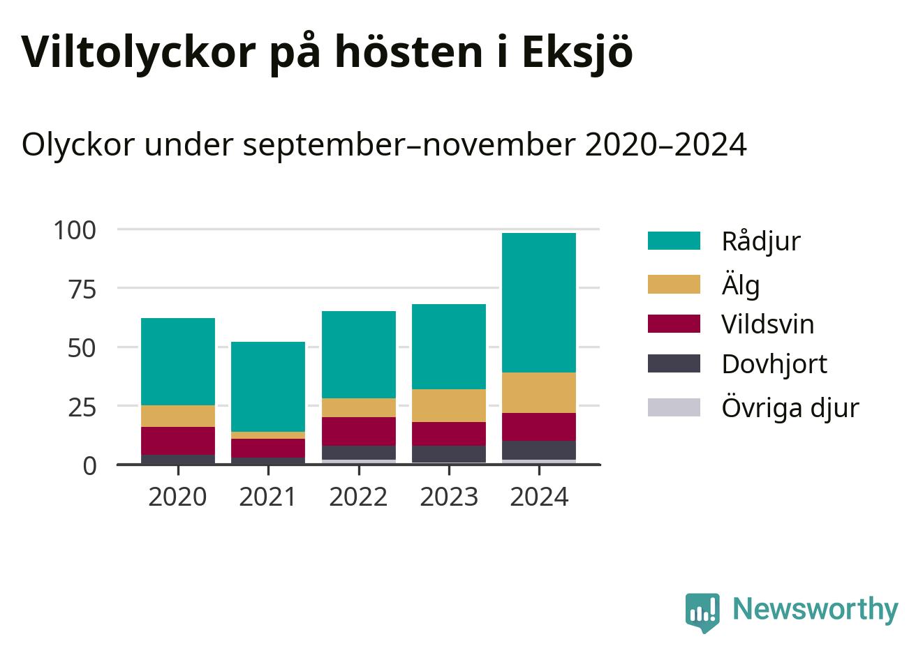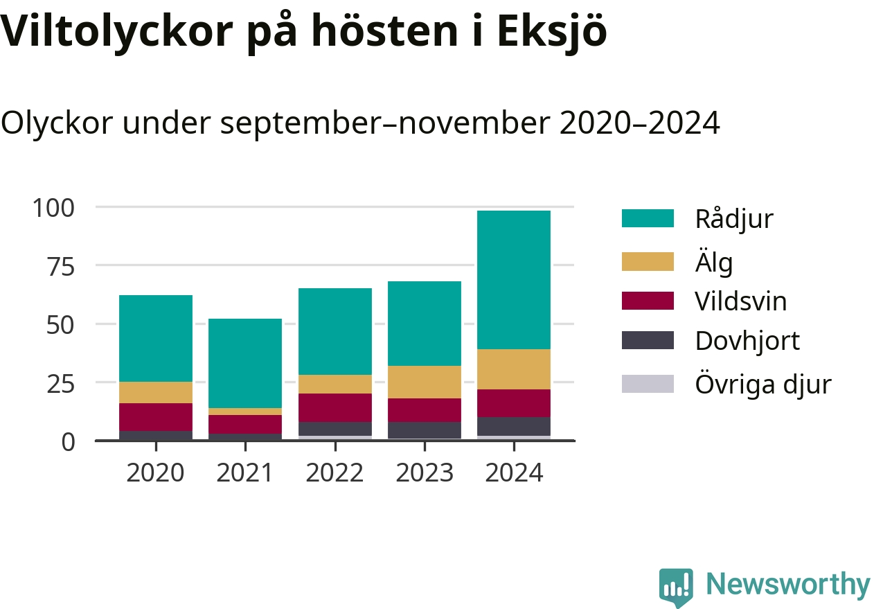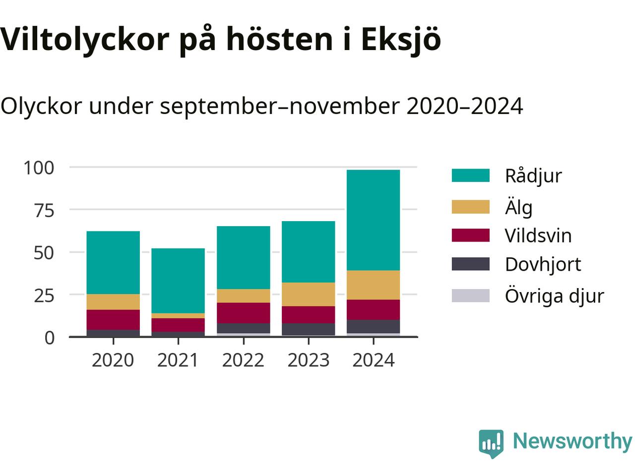 Under de senaste höstarna har antalet viltolyckor ökat i Sverige. I fjol höst noterades också flest viltolyckor i Eksjö hittills under 2020-talet, totalt 98 stycken.