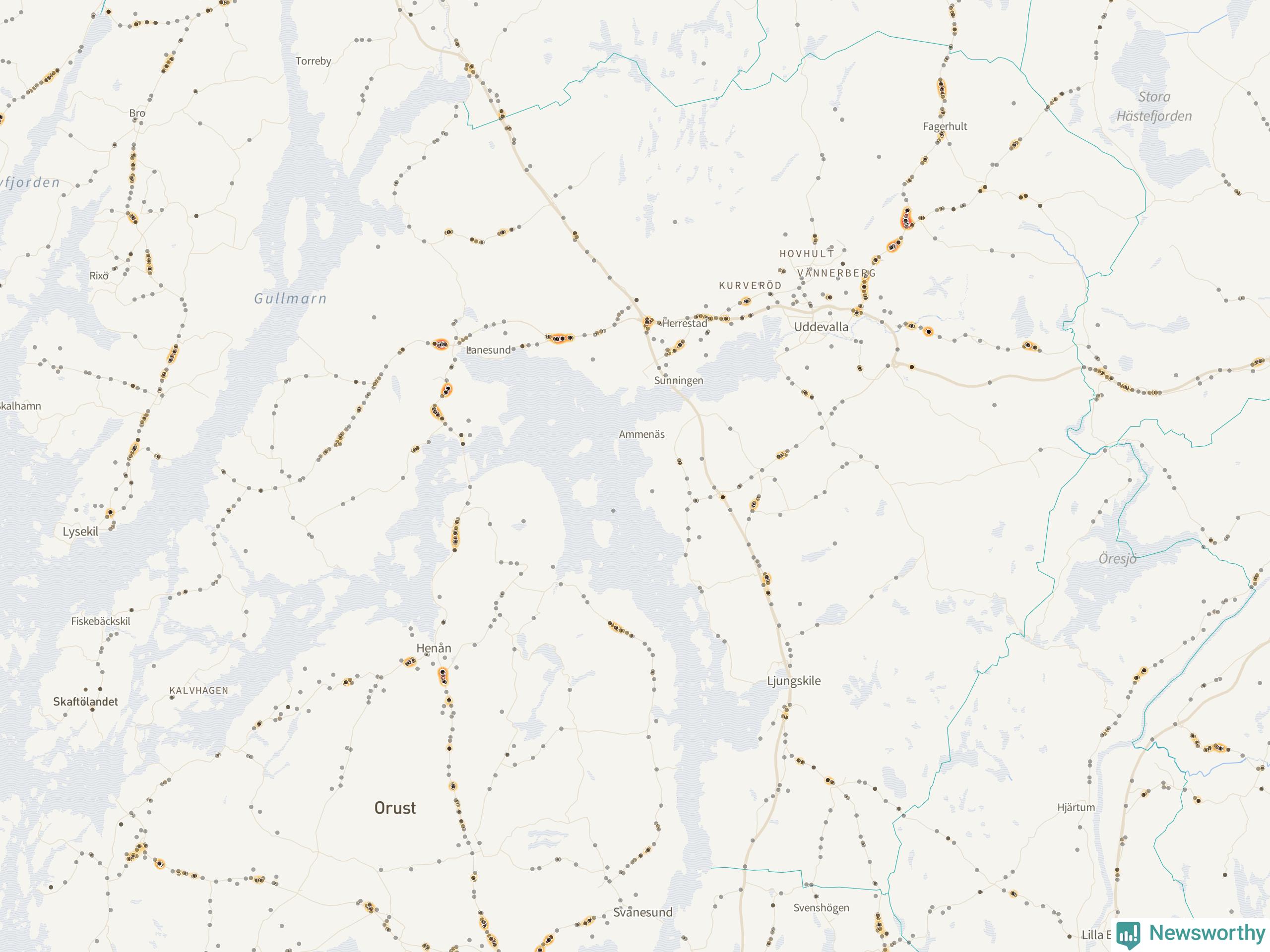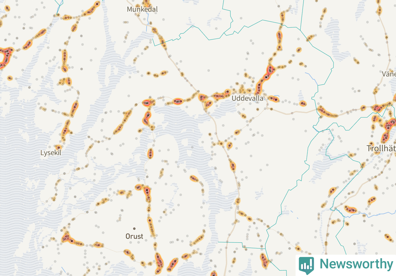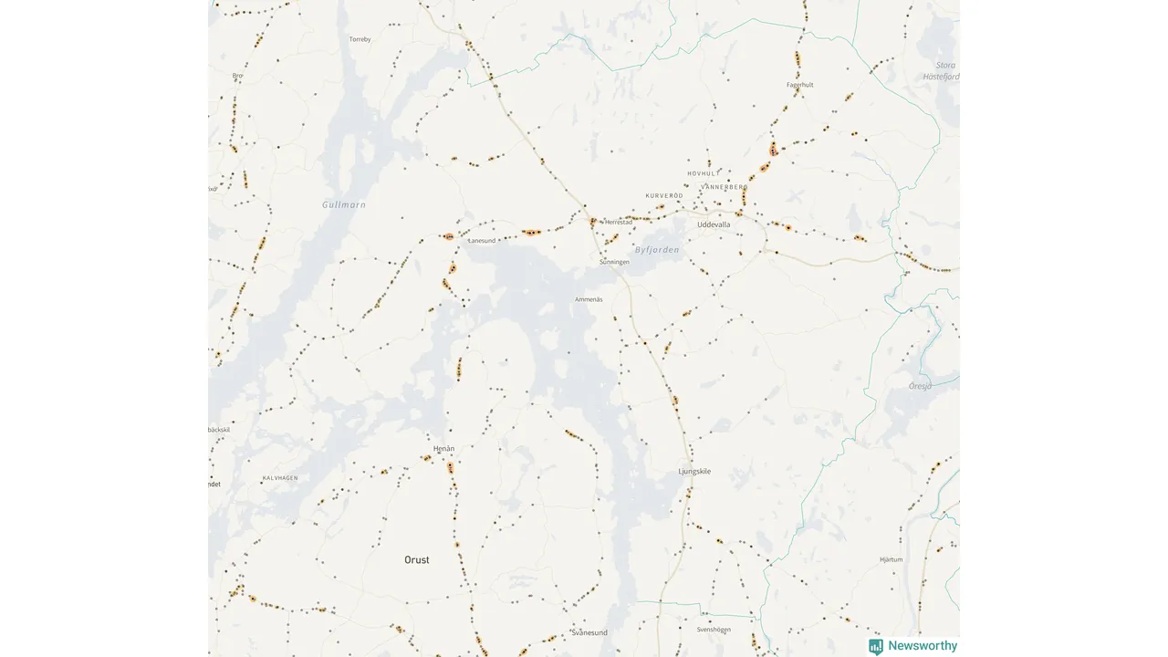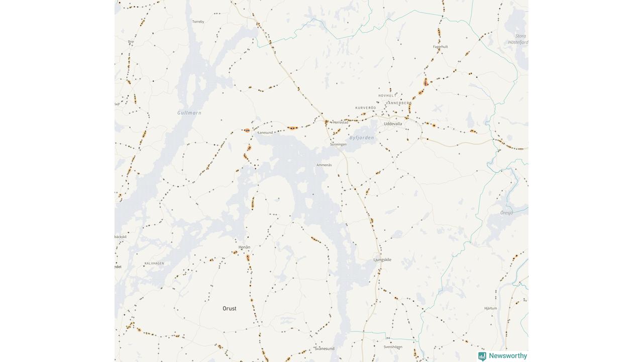 På hösten ökar risken för viltolyckor längs vägarna. Under de senaste fem höstarna har totalt 608 olyckor rapporterats i Uddevalla kommun. Här är de mest drabbade vägarna.