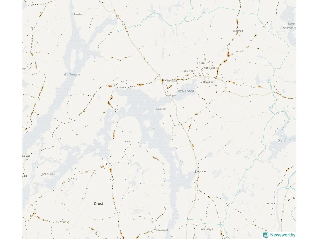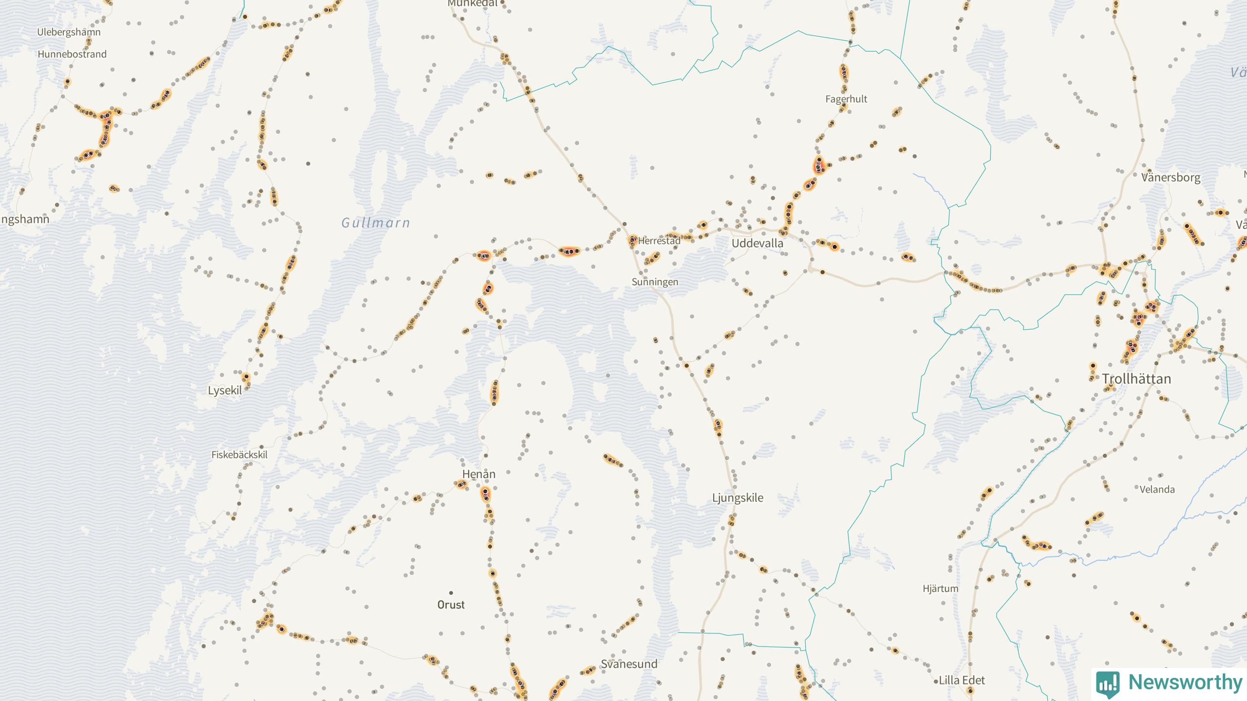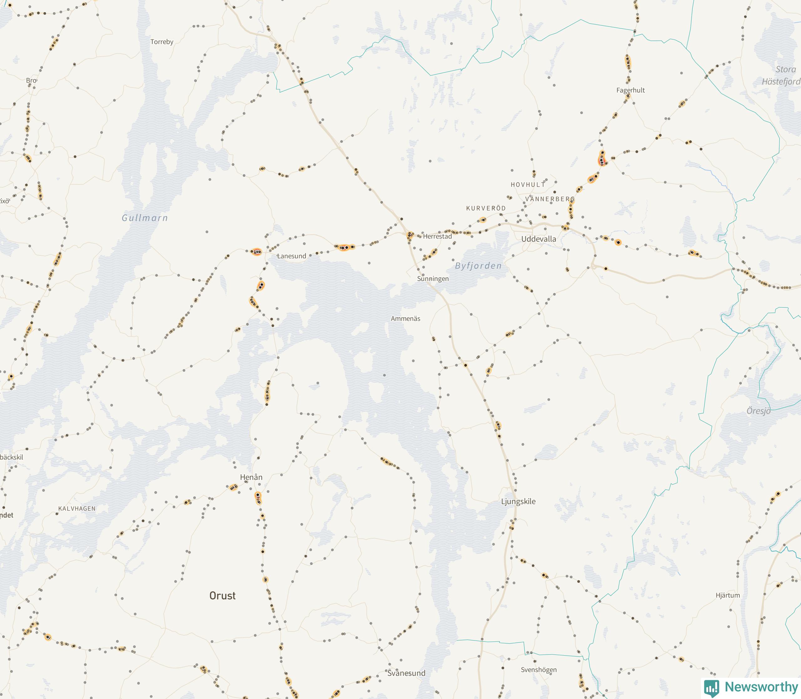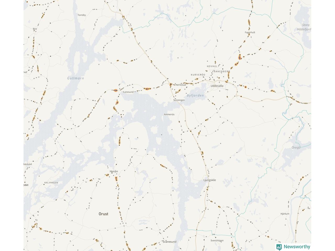 På hösten ökar risken för viltolyckor längs vägarna. Under de senaste fem höstarna har totalt 608 olyckor rapporterats i Uddevalla kommun. Här är de mest drabbade vägarna.