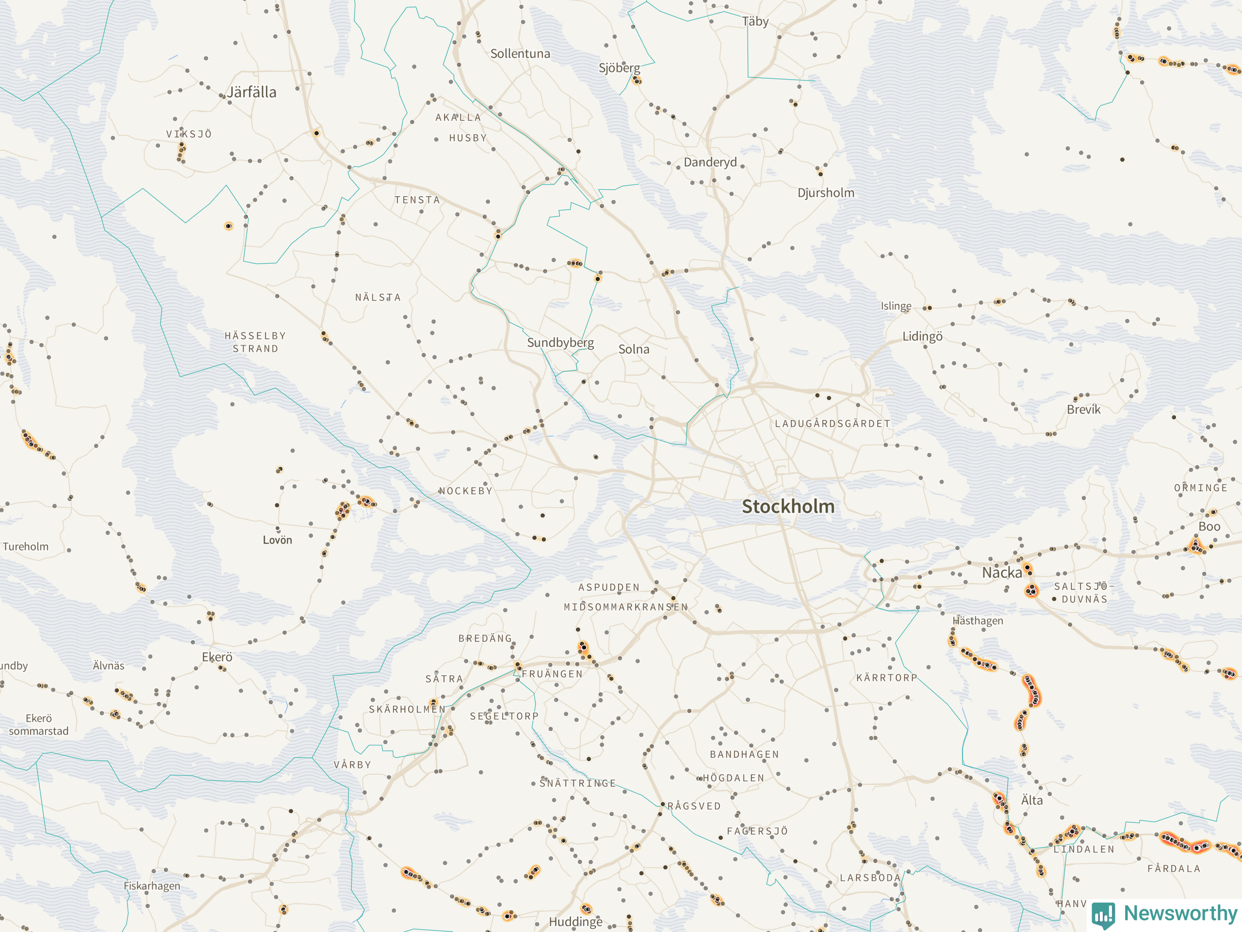 På hösten ökar risken för viltolyckor längs vägarna. Under de senaste fem höstarna har totalt 364 olyckor rapporterats i Stockholms kommun. Här är de mest drabbade vägarna.