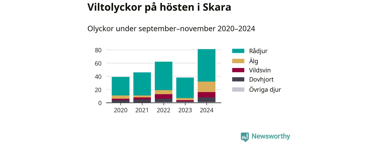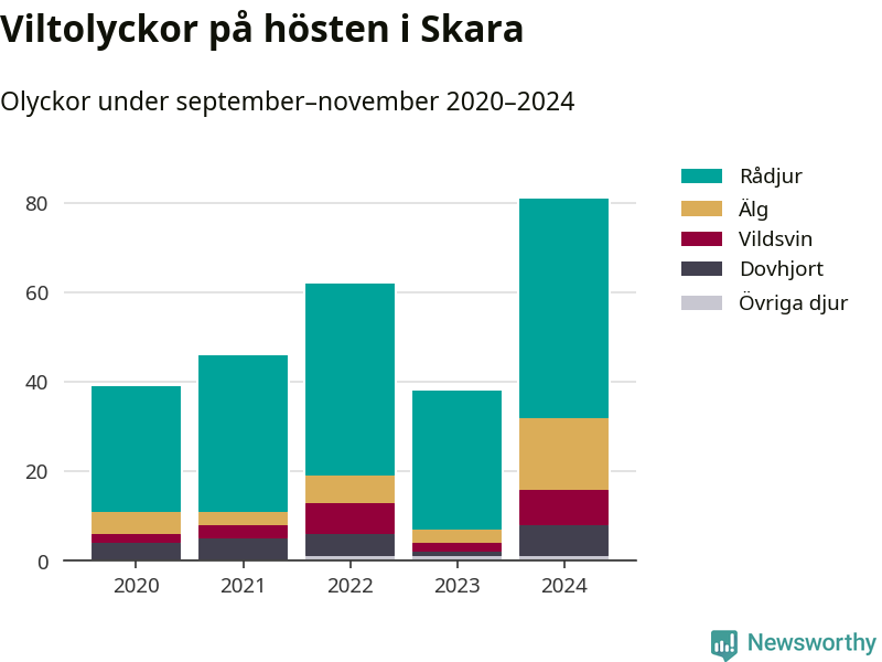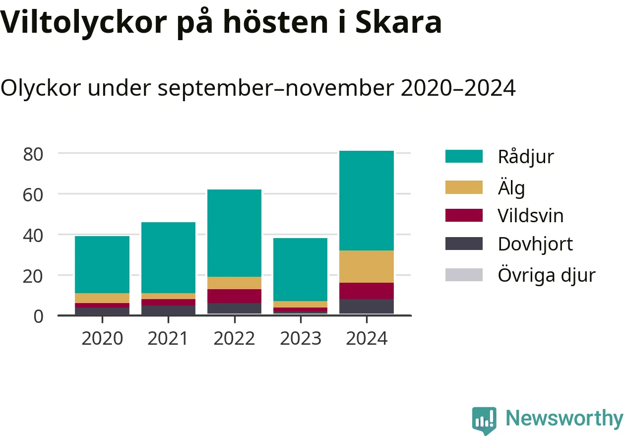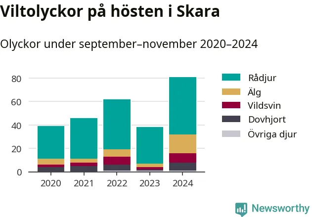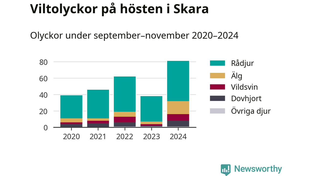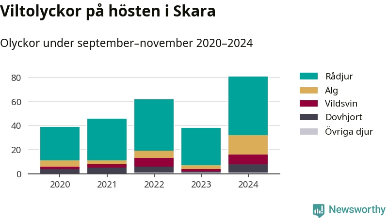 Under de senaste höstarna har antalet viltolyckor ökat i Sverige. I fjol höst noterades också flest viltolyckor i Skara hittills under 2020-talet, totalt 81 stycken.