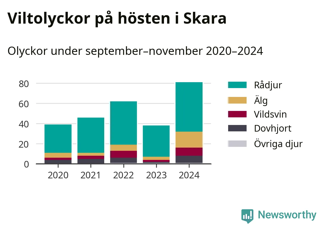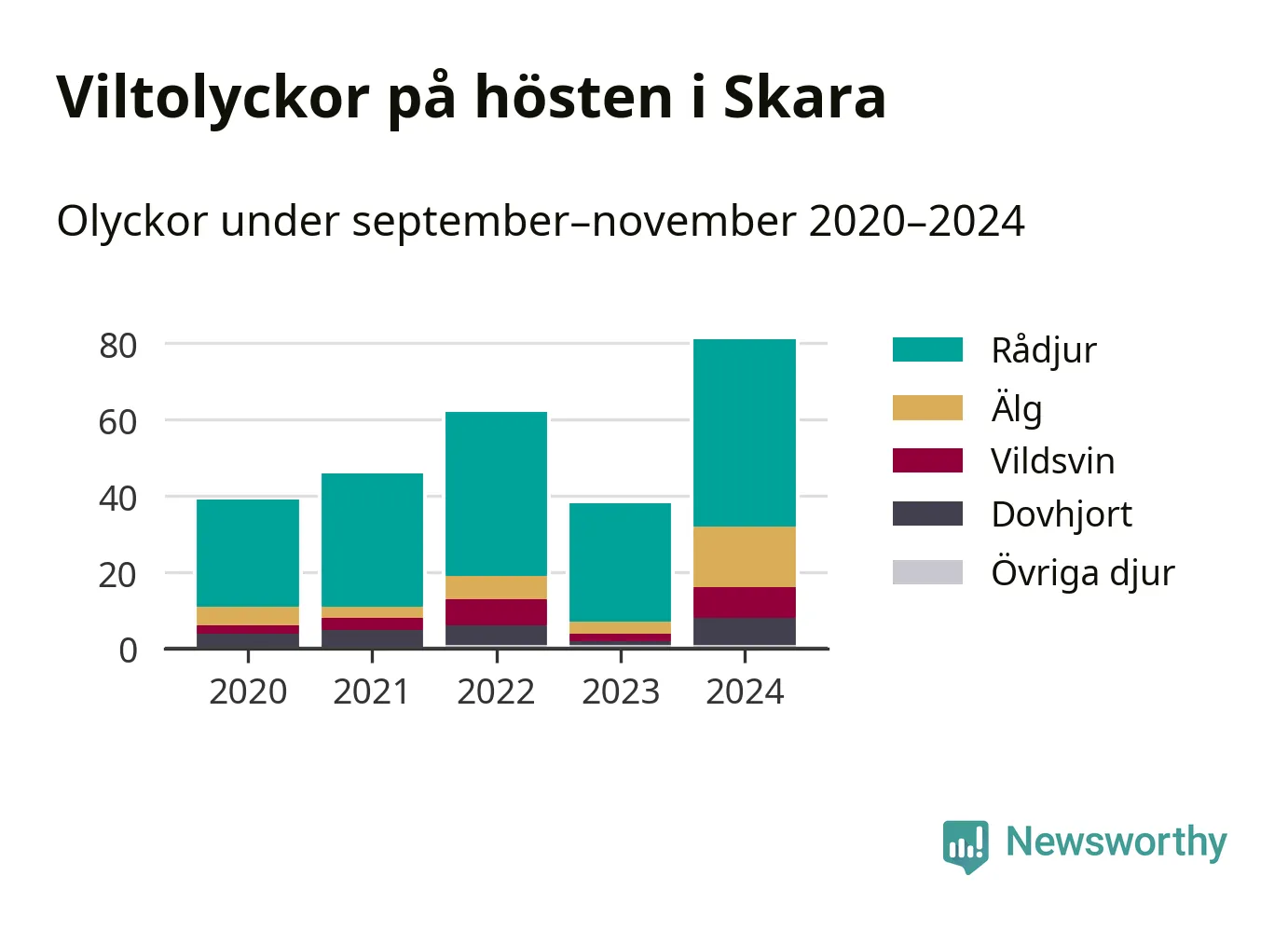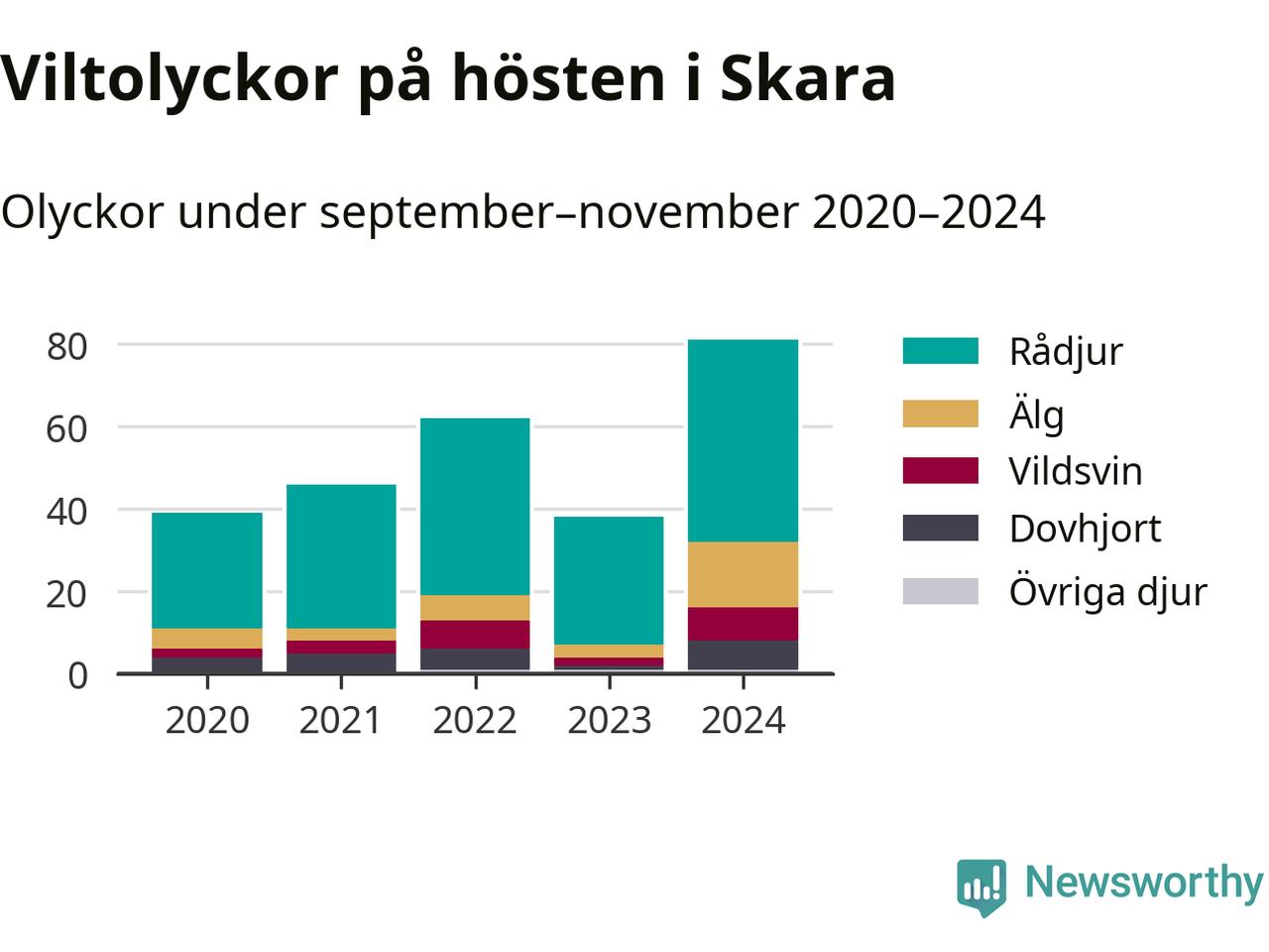Under de senaste höstarna har antalet viltolyckor ökat i Sverige. I fjol höst noterades också flest viltolyckor i Skara hittills under 2020-talet, totalt 81 stycken.
