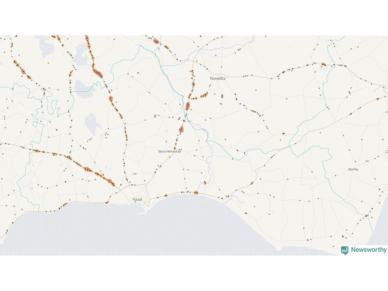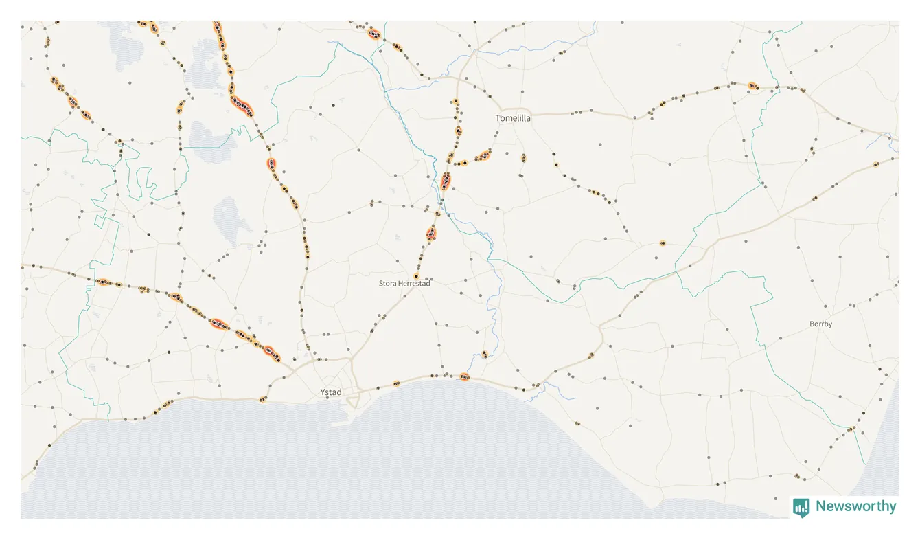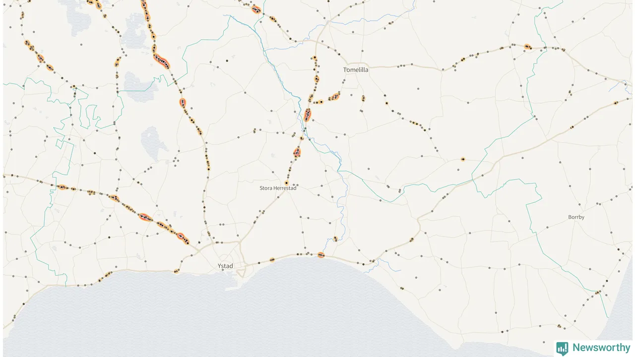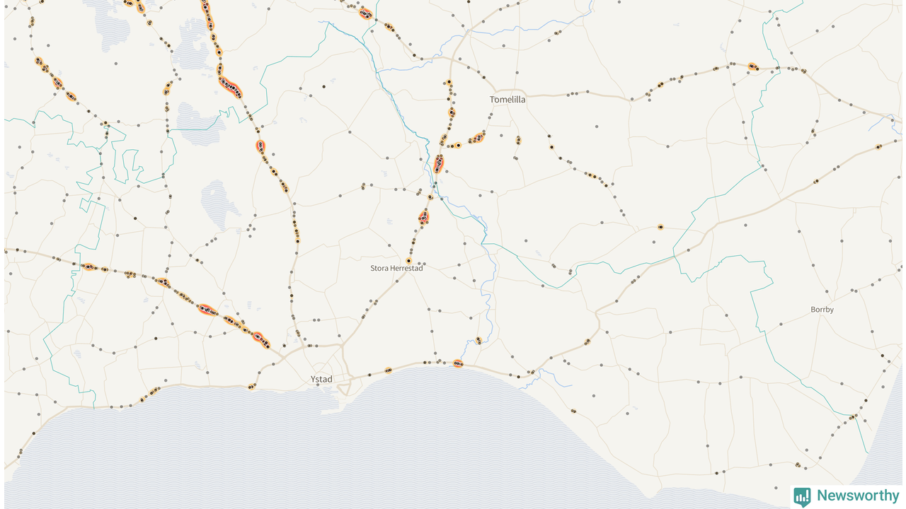 Stor kartläggning: Här sker viltolyckorna i Ystad
