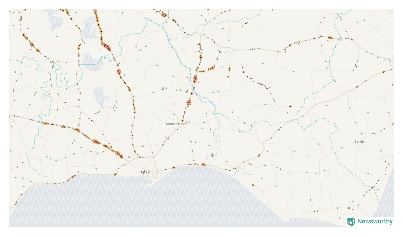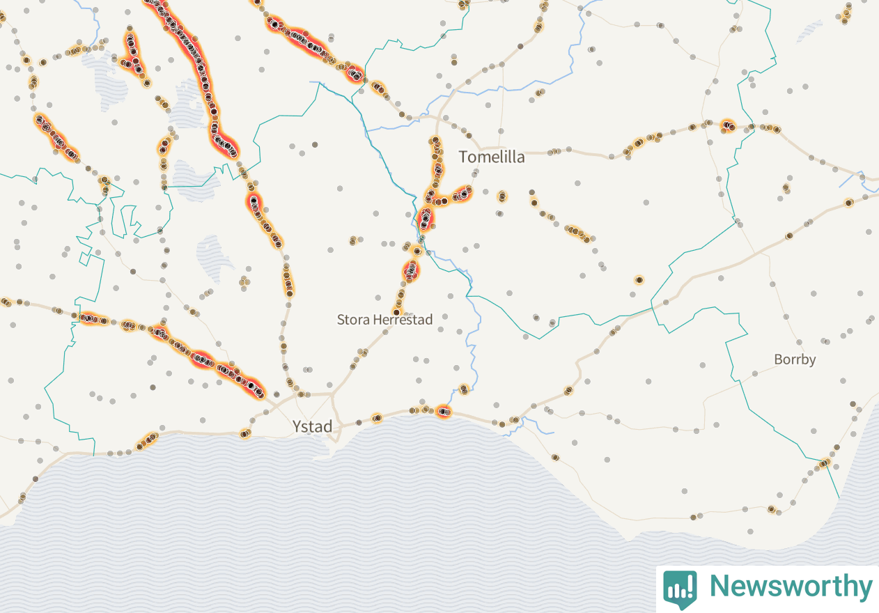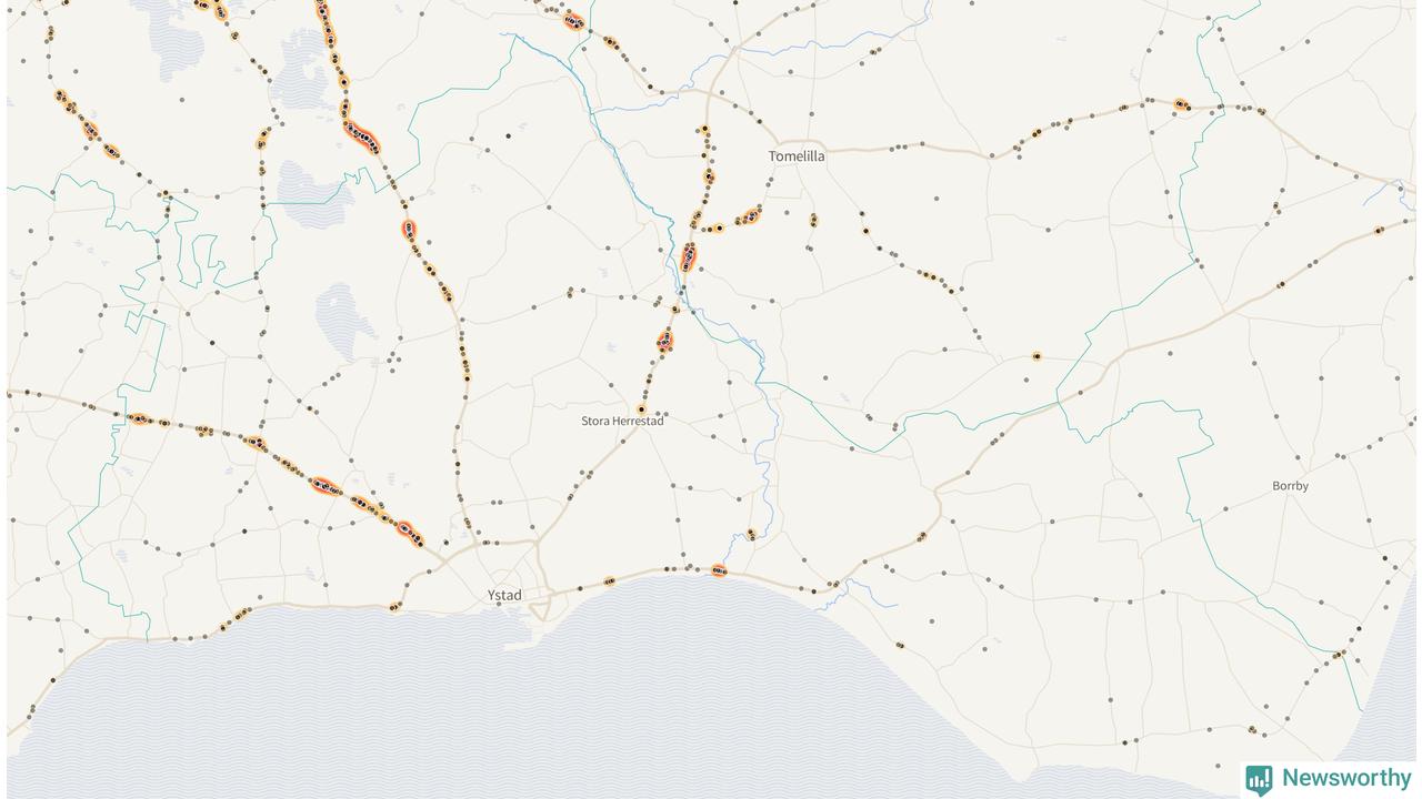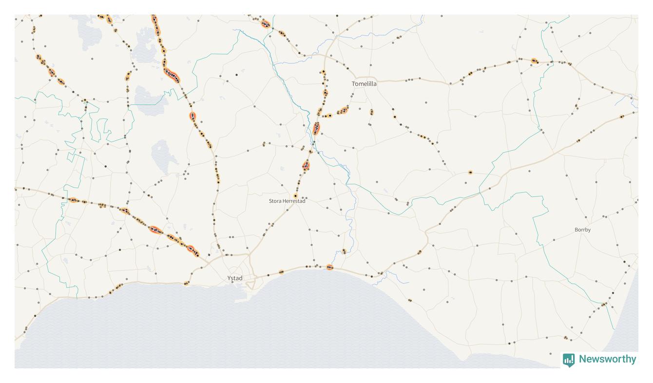 Stor kartläggning: Här sker viltolyckorna i Ystad