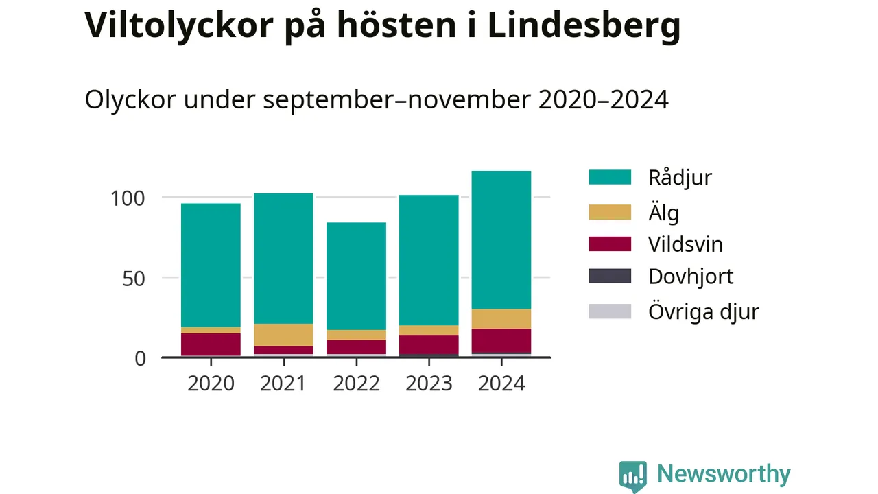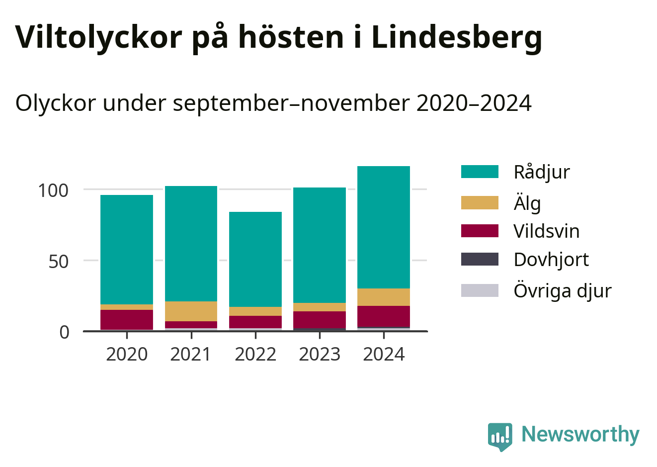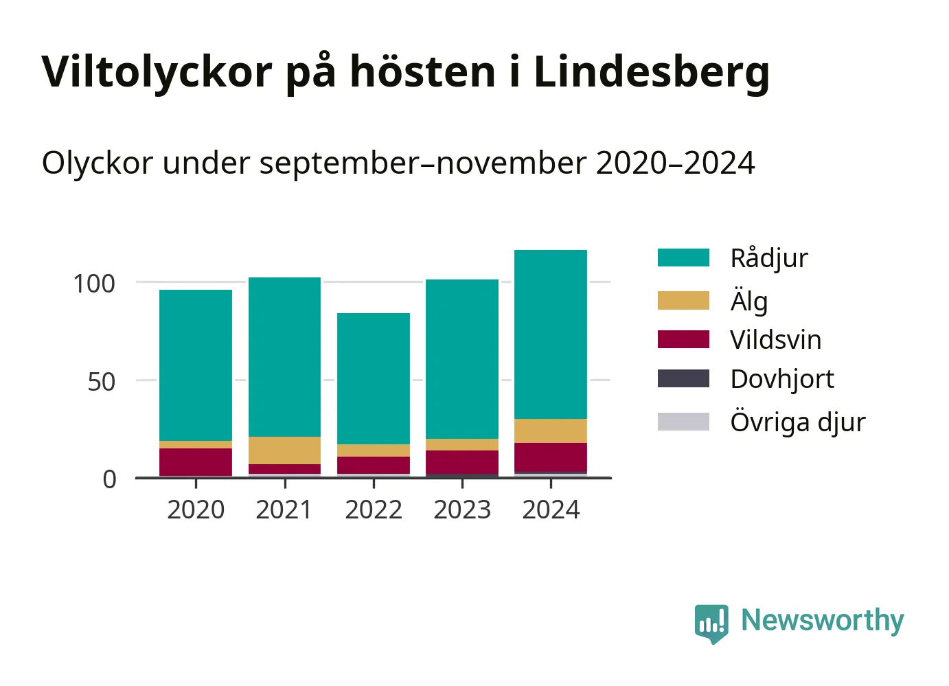 Under de senaste höstarna har antalet viltolyckor ökat i Sverige. I fjol höst noterades också flest viltolyckor i Lindesberg hittills under 2020-talet, totalt 116 stycken.