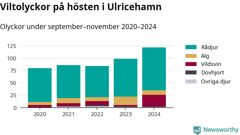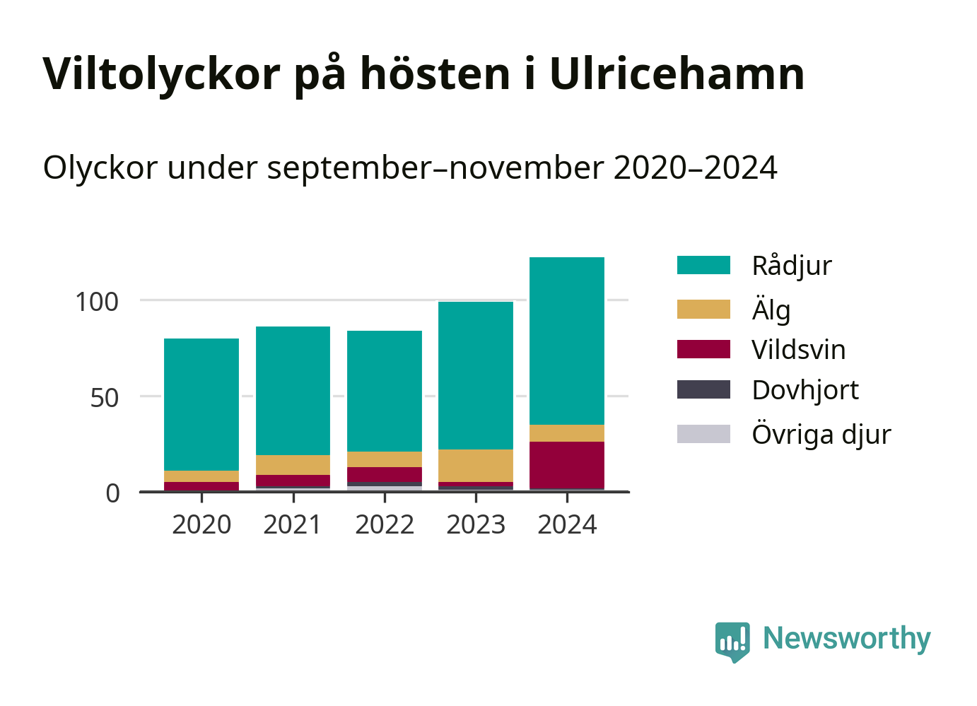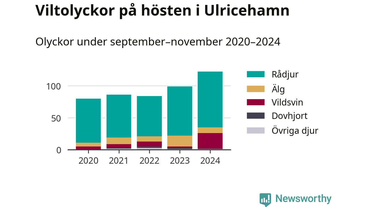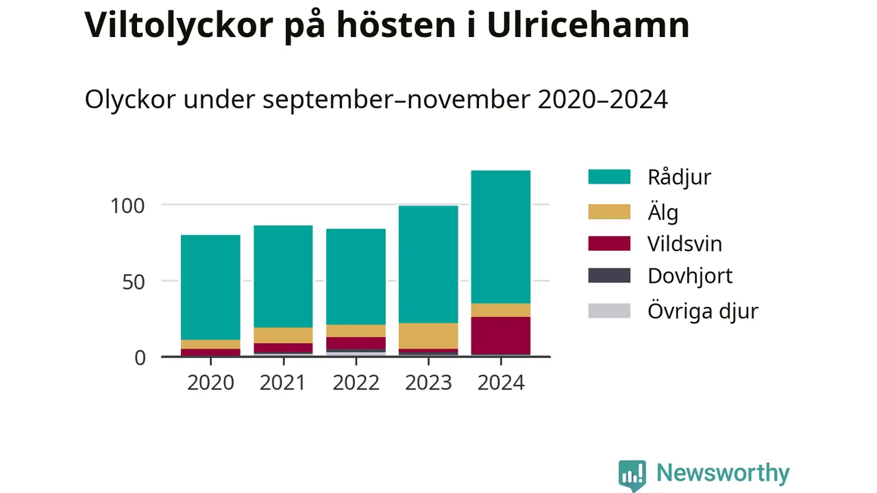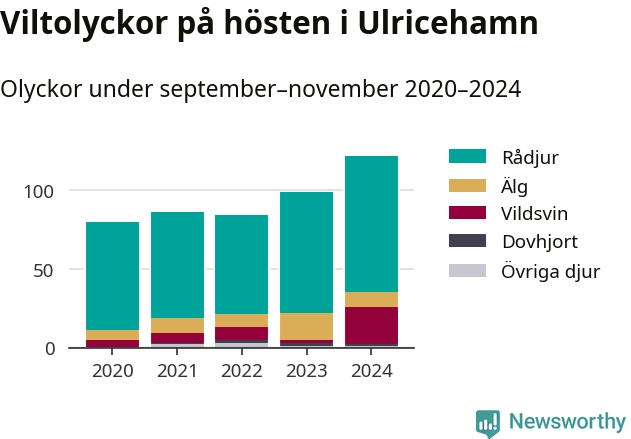 Under de senaste höstarna har antalet viltolyckor ökat i Sverige. I fjol höst noterades också flest viltolyckor i Ulricehamn hittills under 2020-talet, totalt 122 stycken.