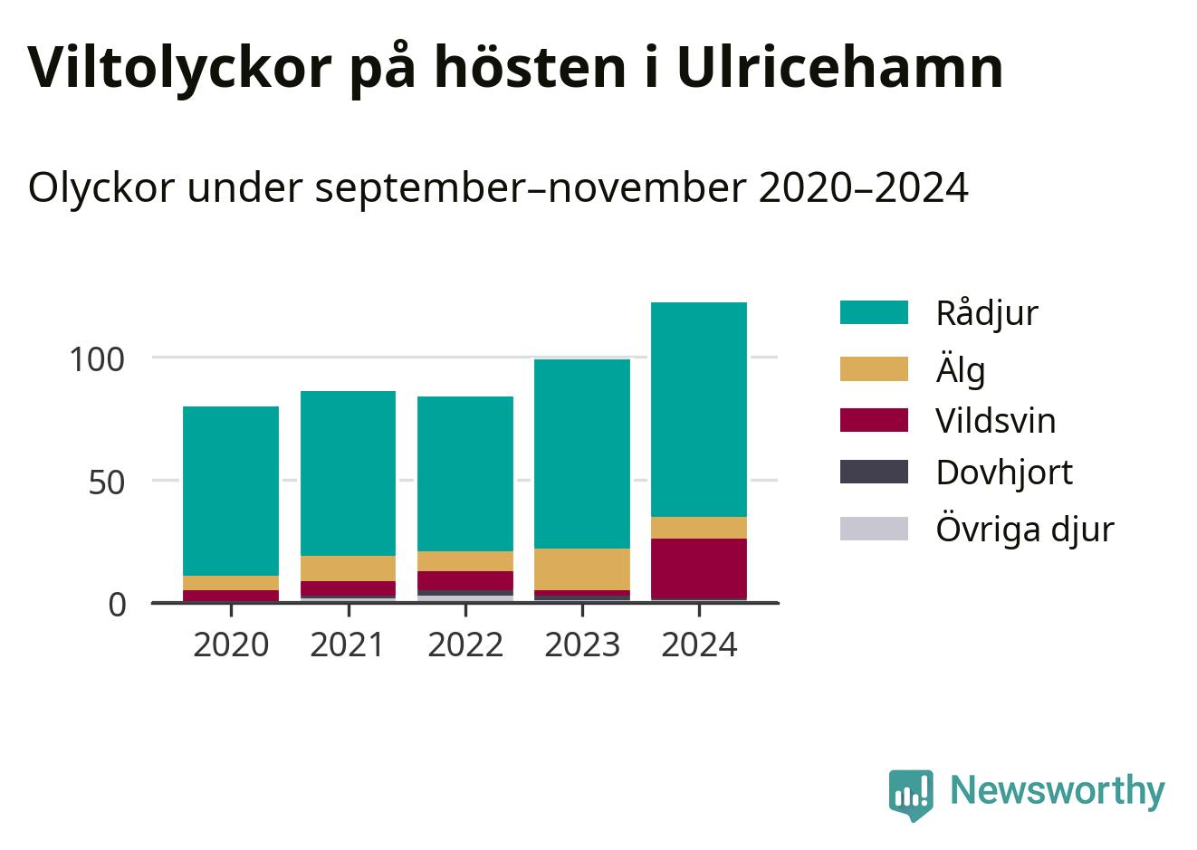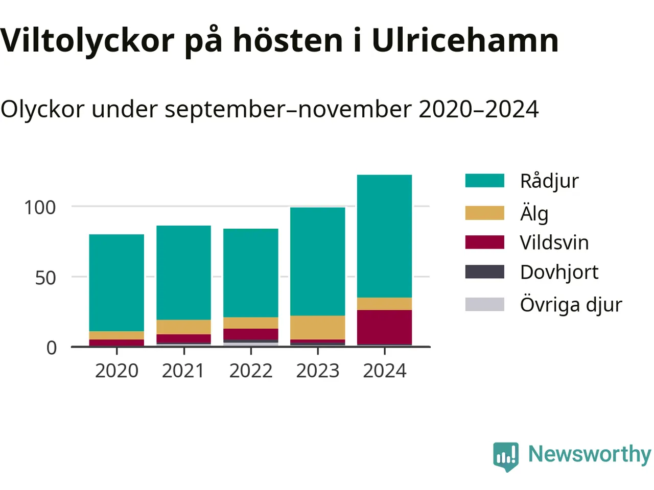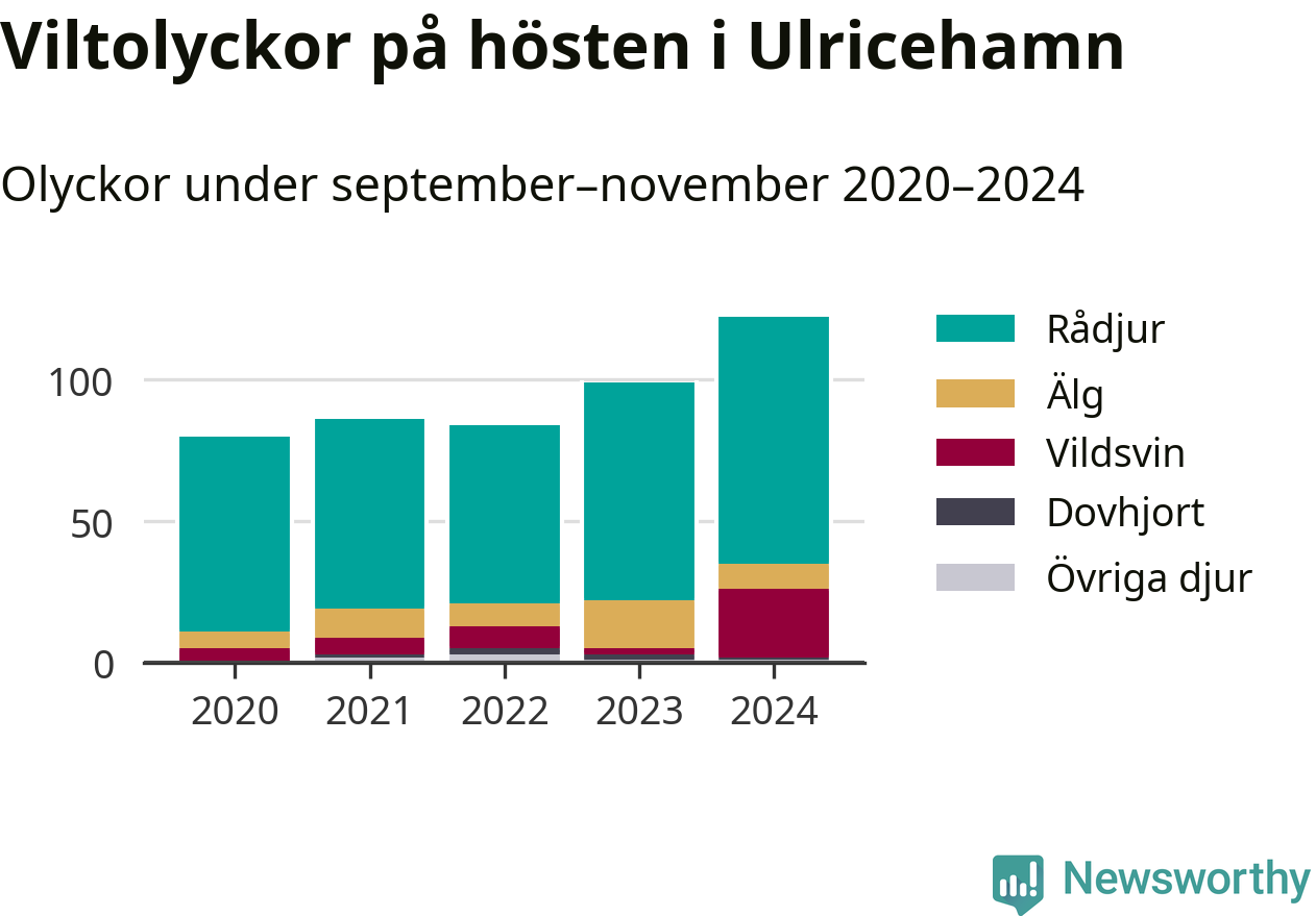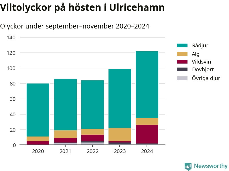 Under de senaste höstarna har antalet viltolyckor ökat i Sverige. I fjol höst noterades också flest viltolyckor i Ulricehamn hittills under 2020-talet, totalt 122 stycken.