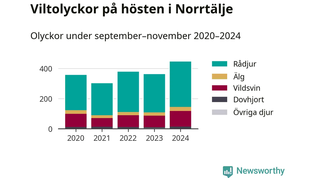 Under de senaste höstarna har antalet viltolyckor ökat i Sverige. I fjol höst noterades också flest viltolyckor i Norrtälje hittills under 2020-talet, totalt 445 stycken.