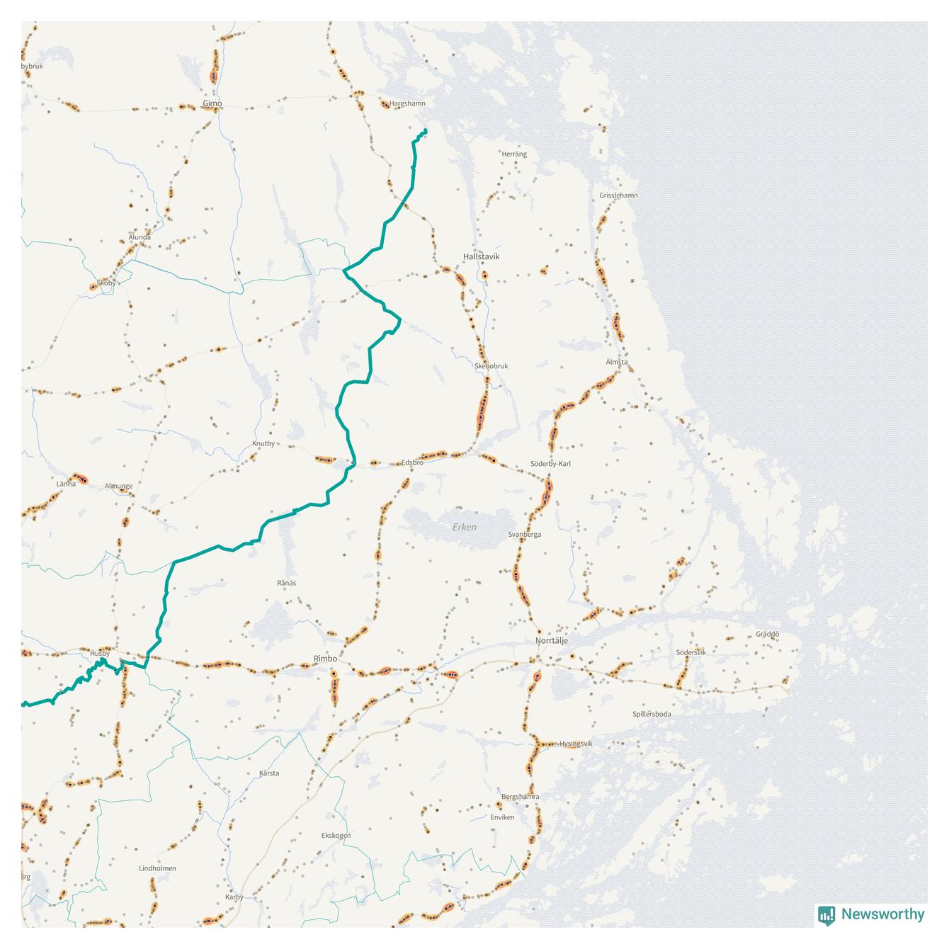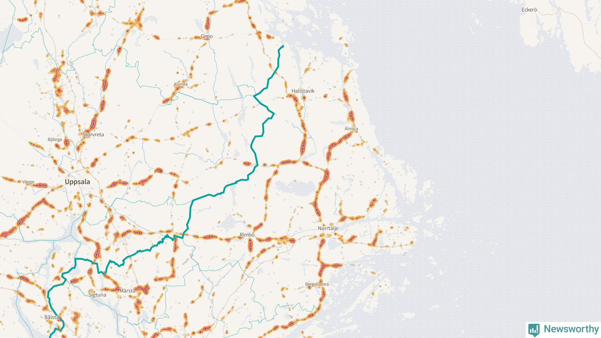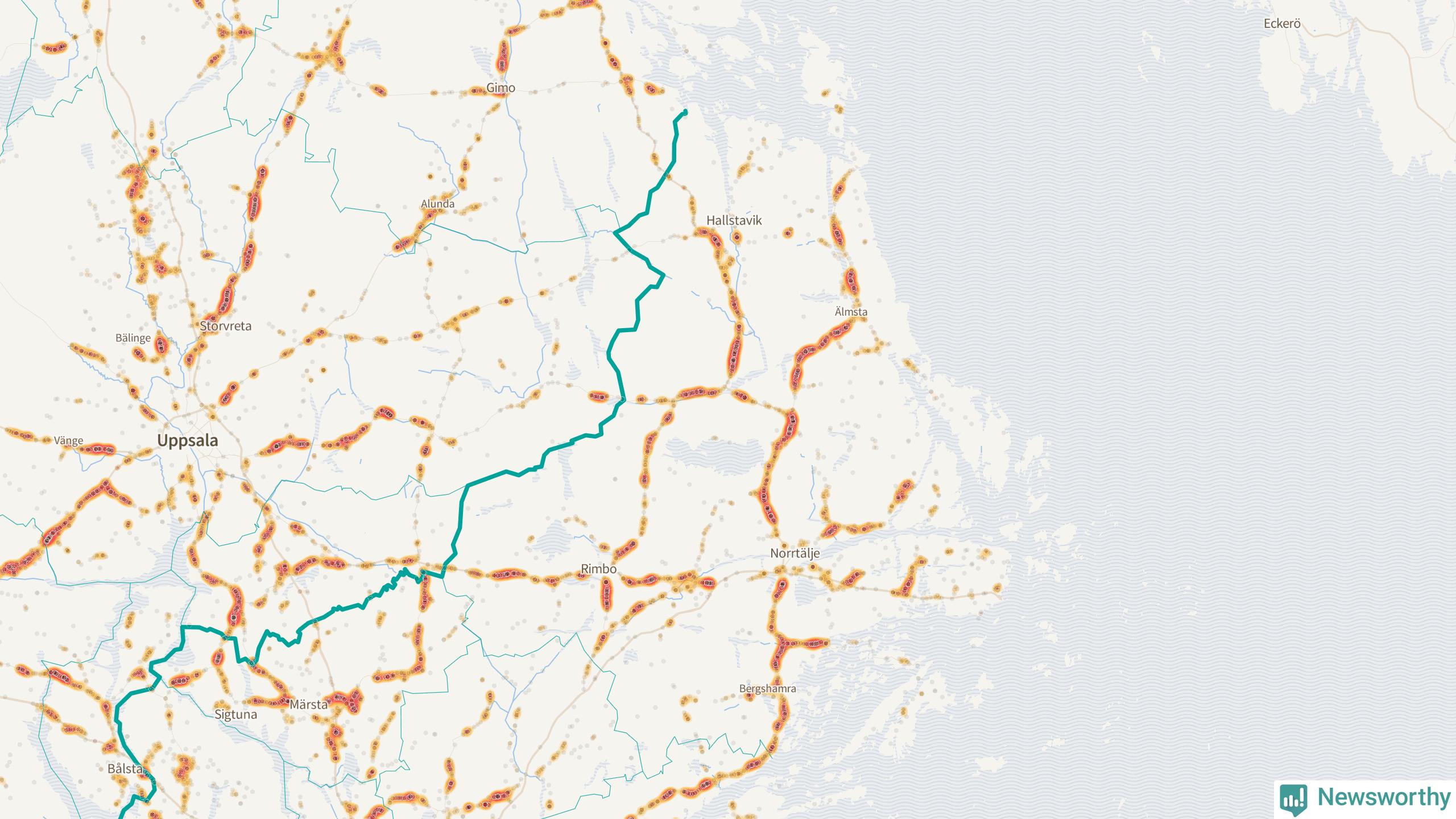 De mest viltolycksdrabbade vägarna i Norrtälje 2020–2024