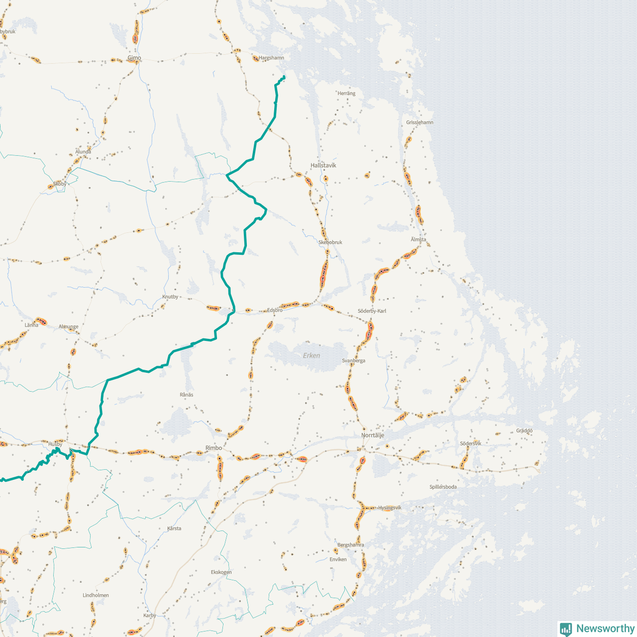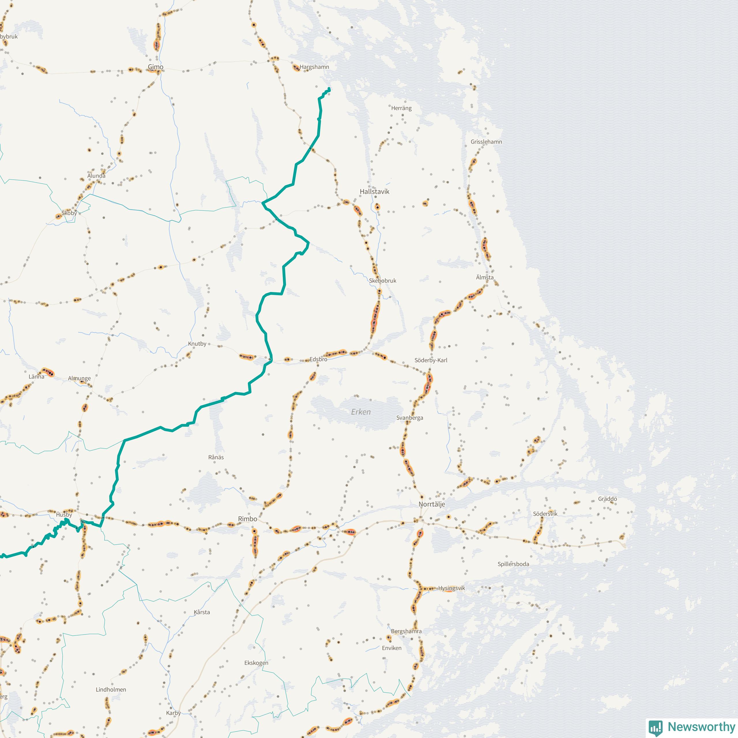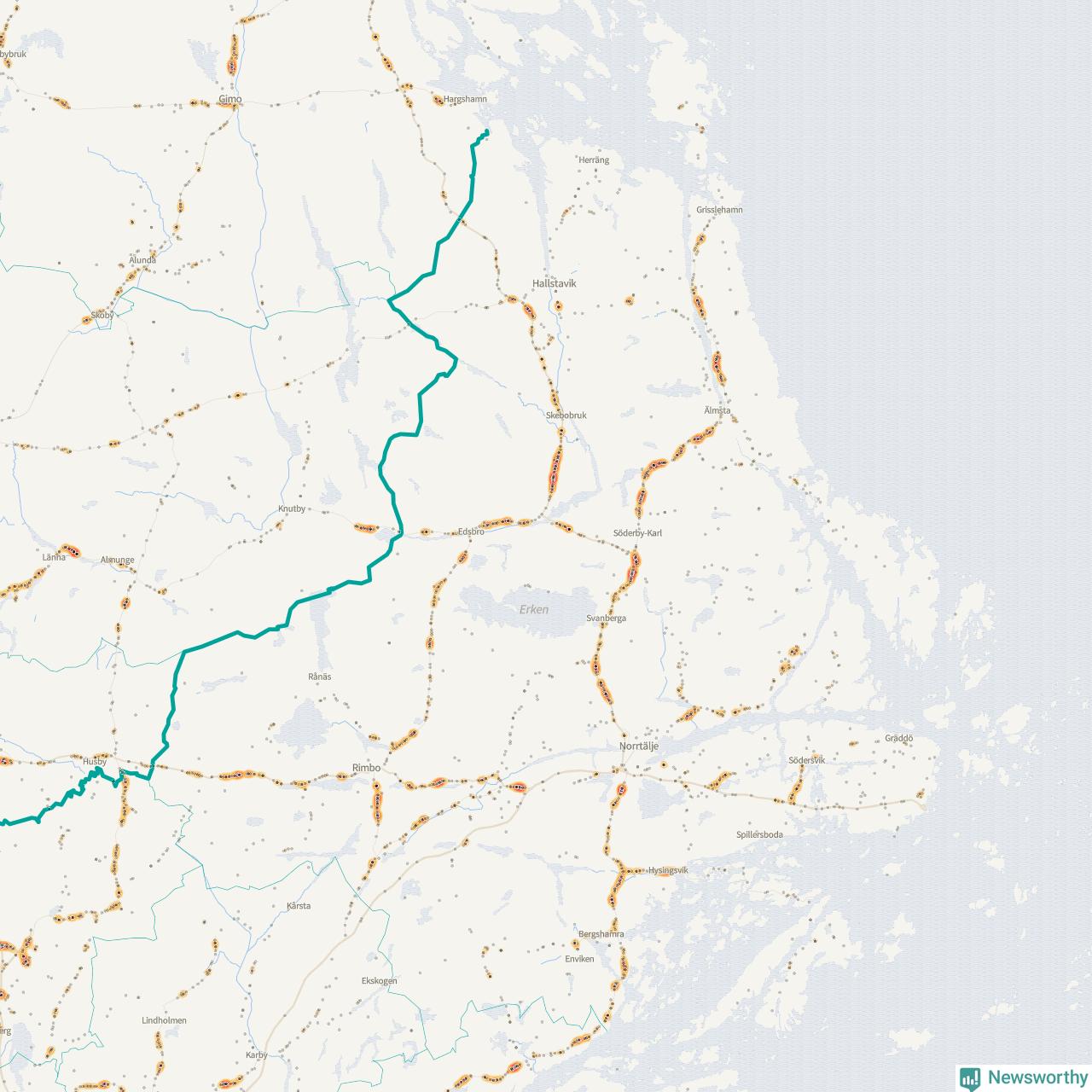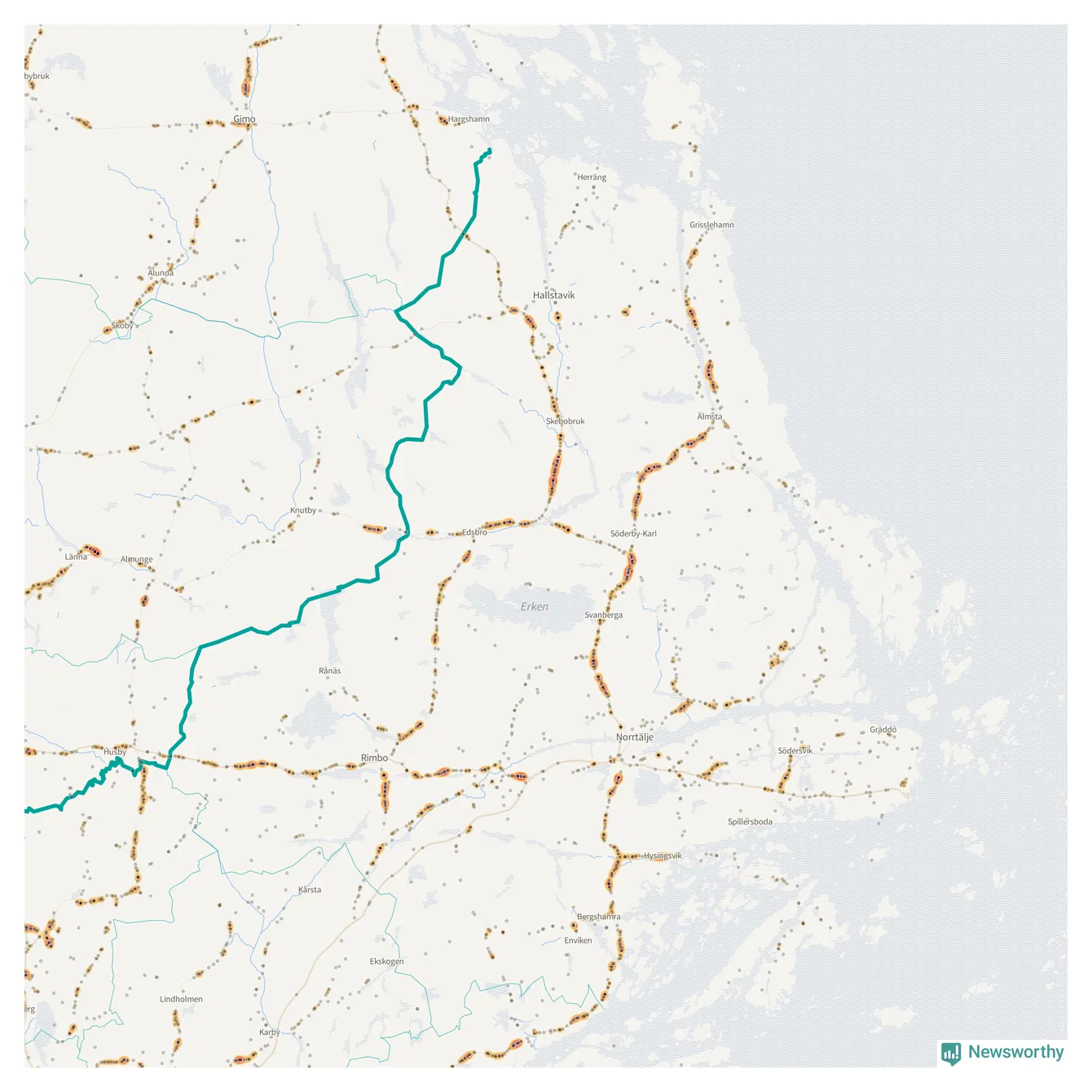 De mest viltolycksdrabbade vägarna i Norrtälje 2020–2024