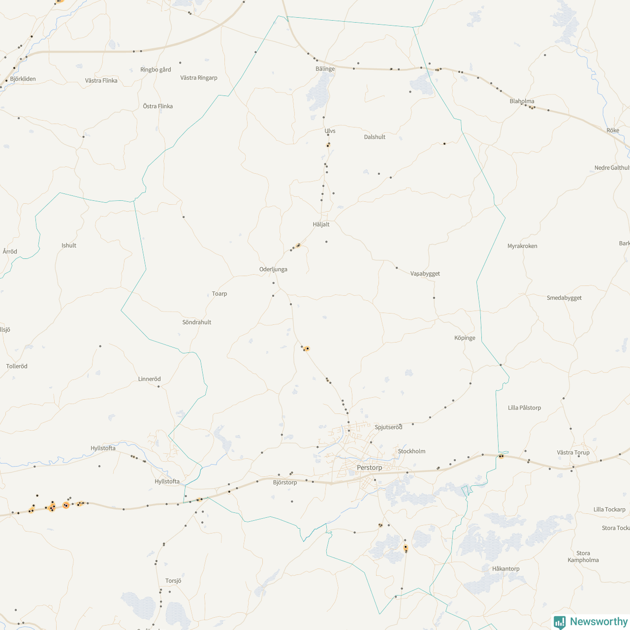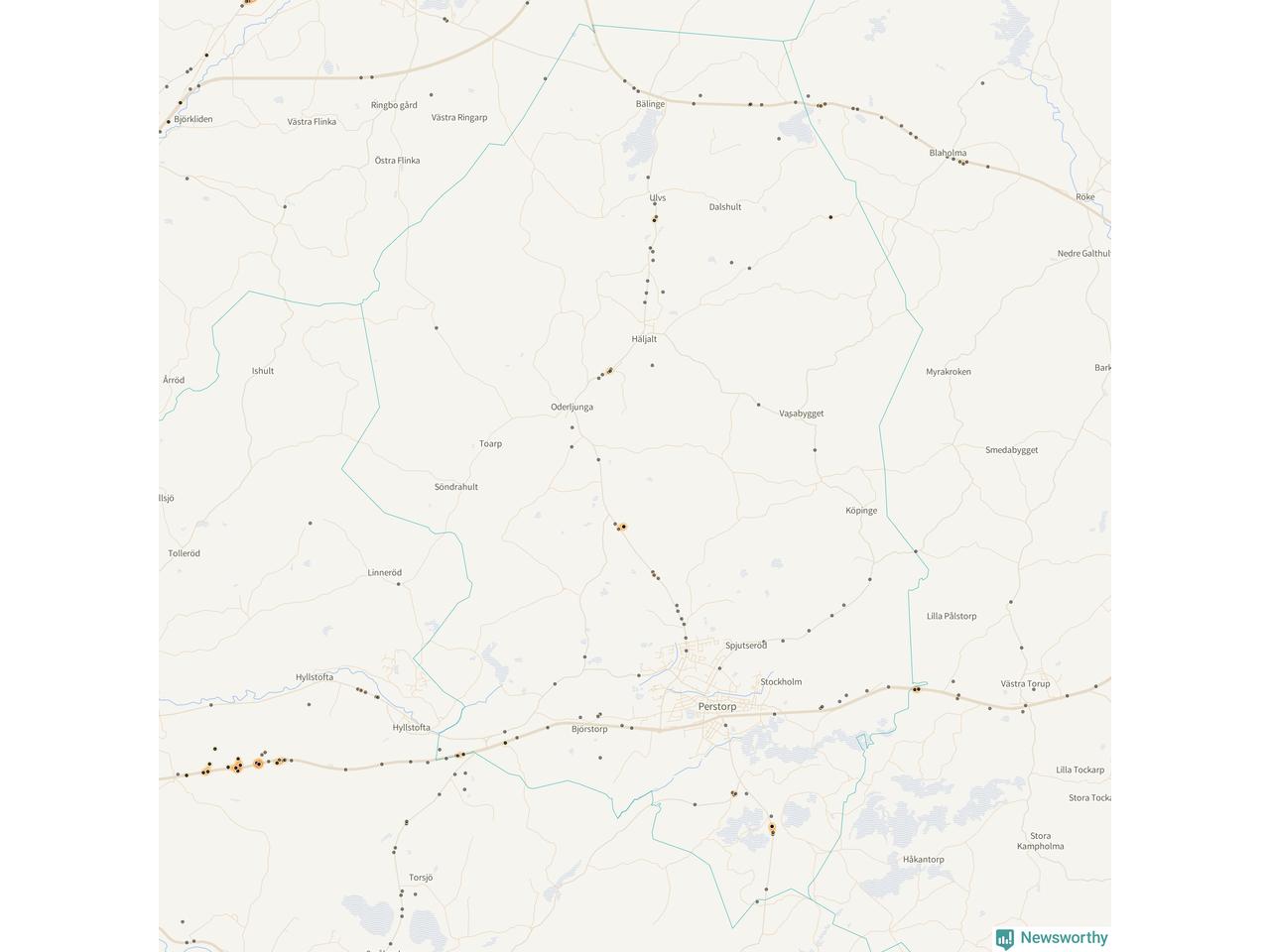 De mest viltolycksdrabbade vägarna i Perstorp 2020–2024