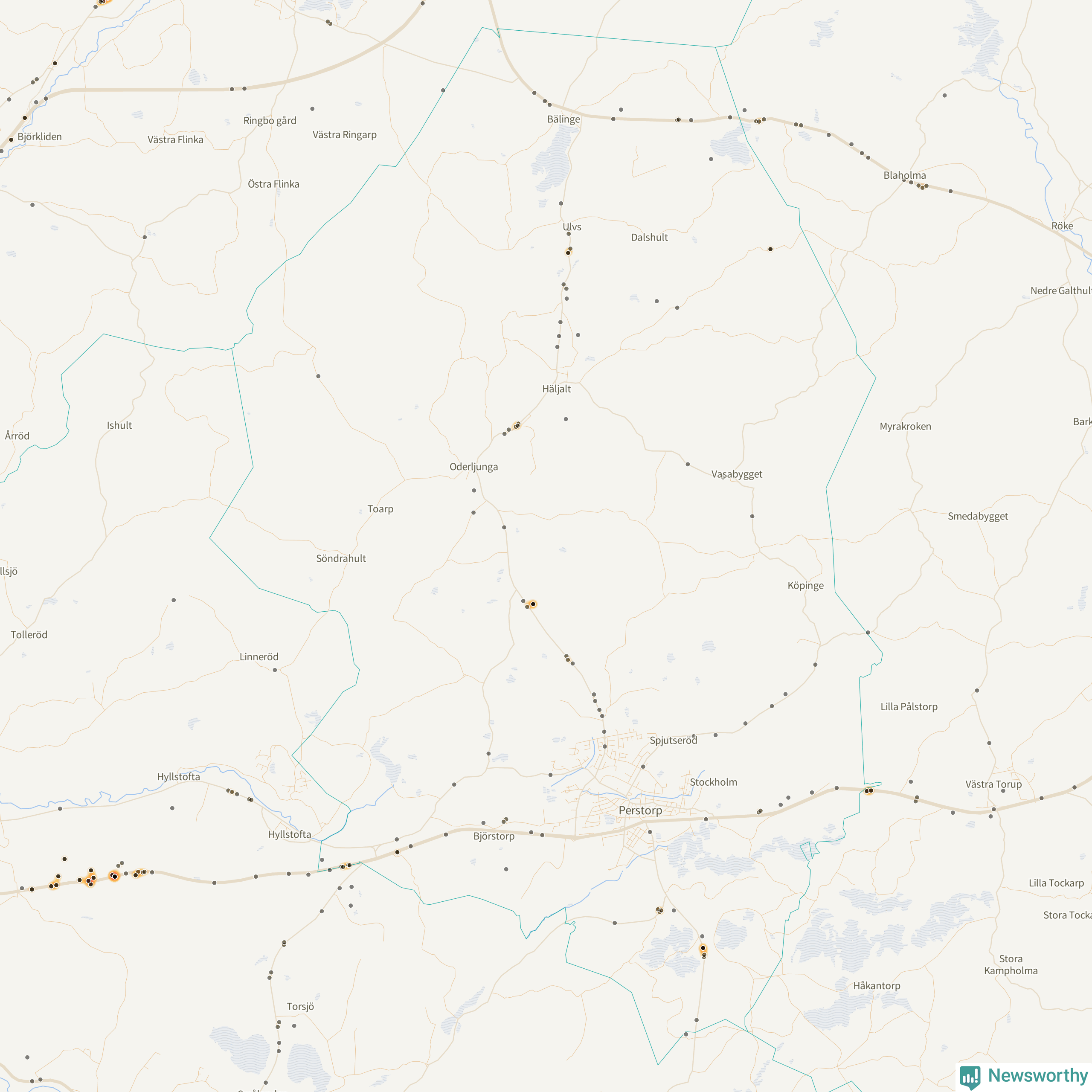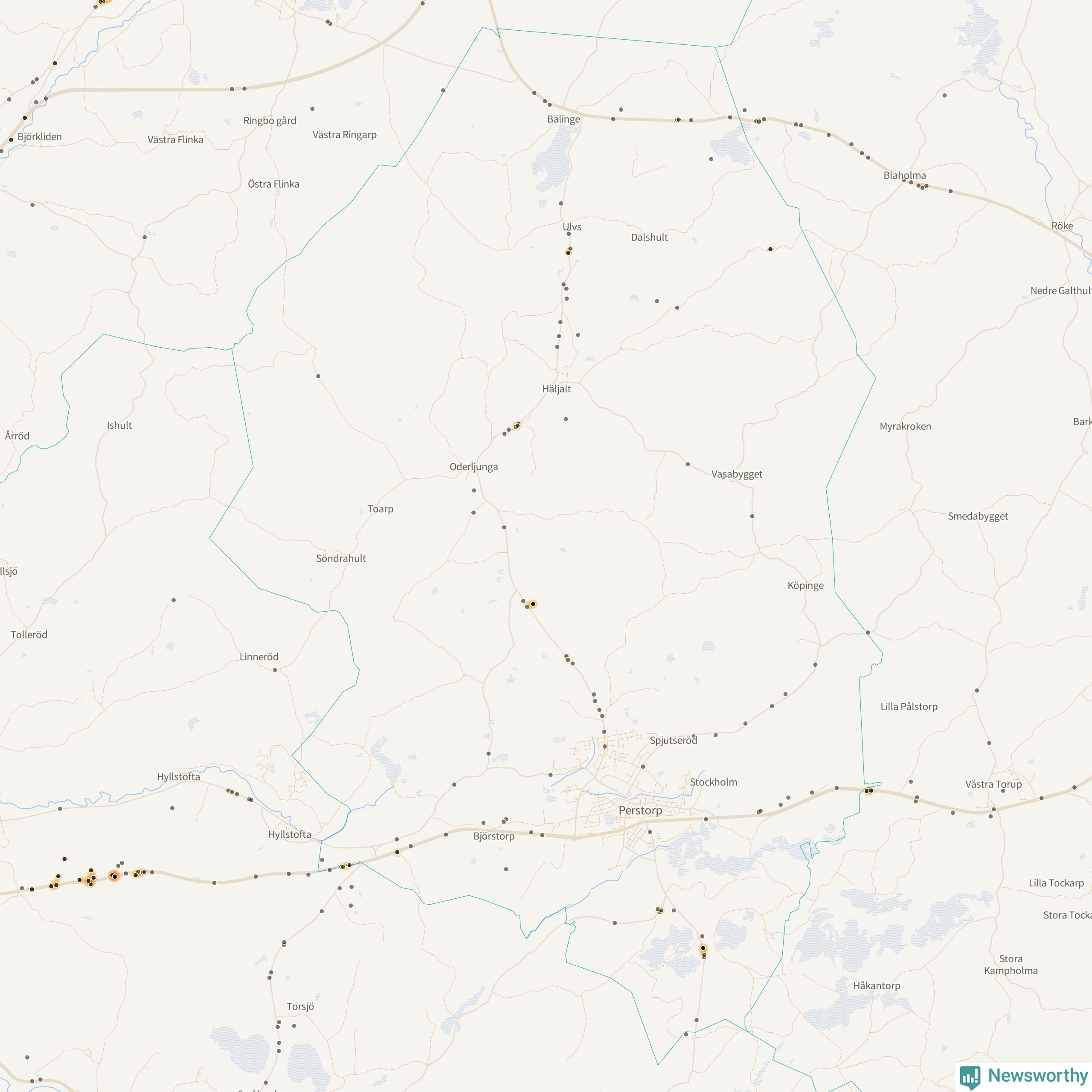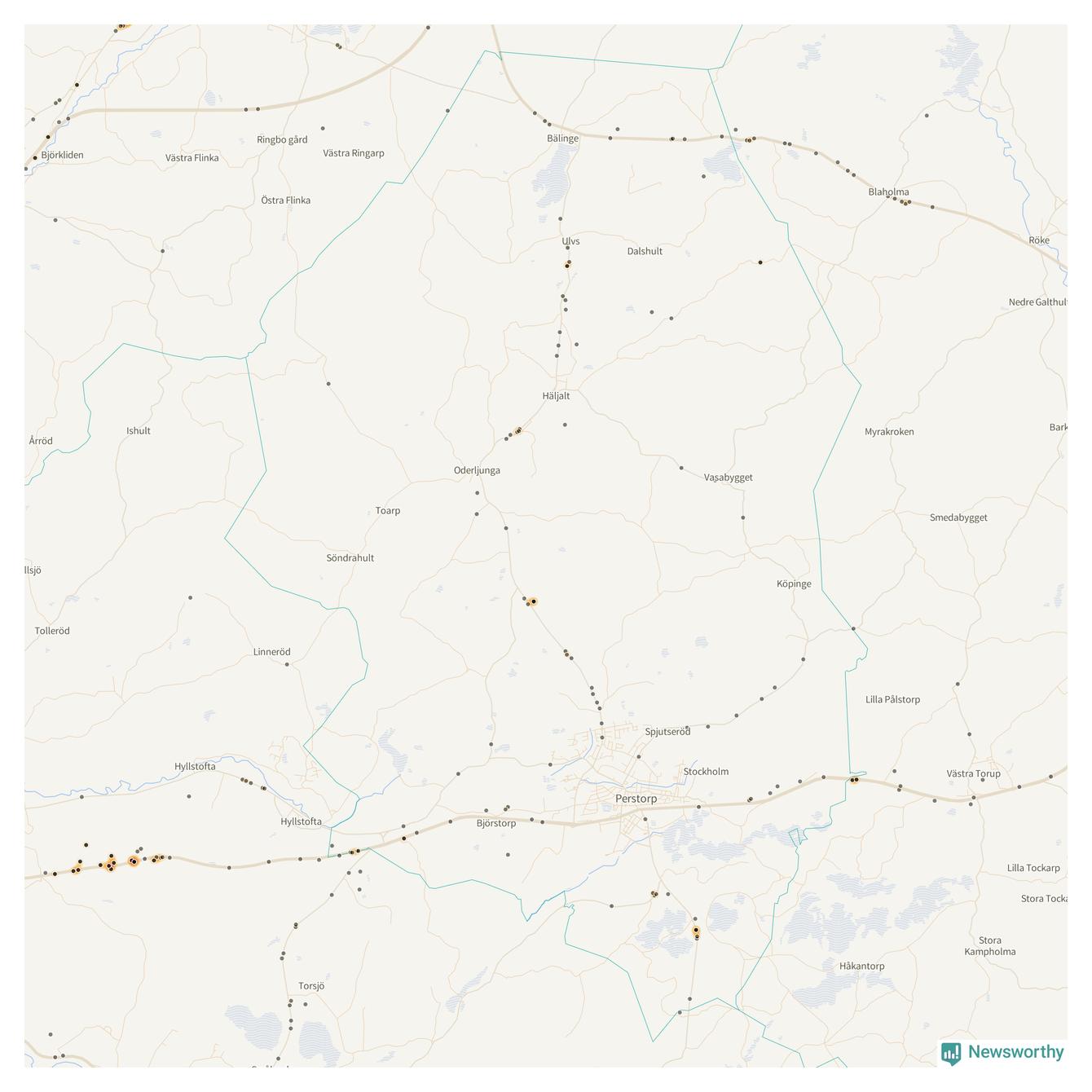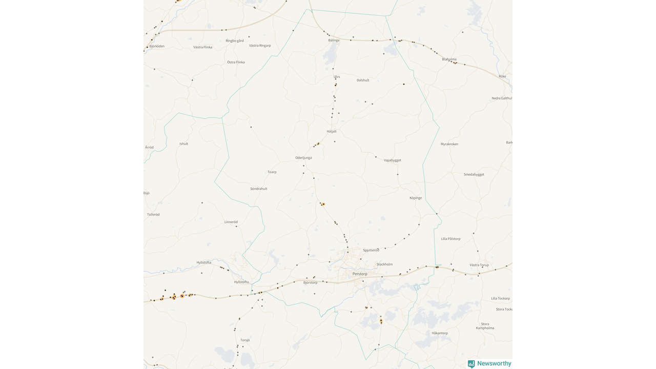 På hösten ökar risken för viltolyckor längs vägarna. Under de senaste fem höstarna har totalt 95 olyckor rapporterats i Perstorps kommun. Här är de mest drabbade vägarna.