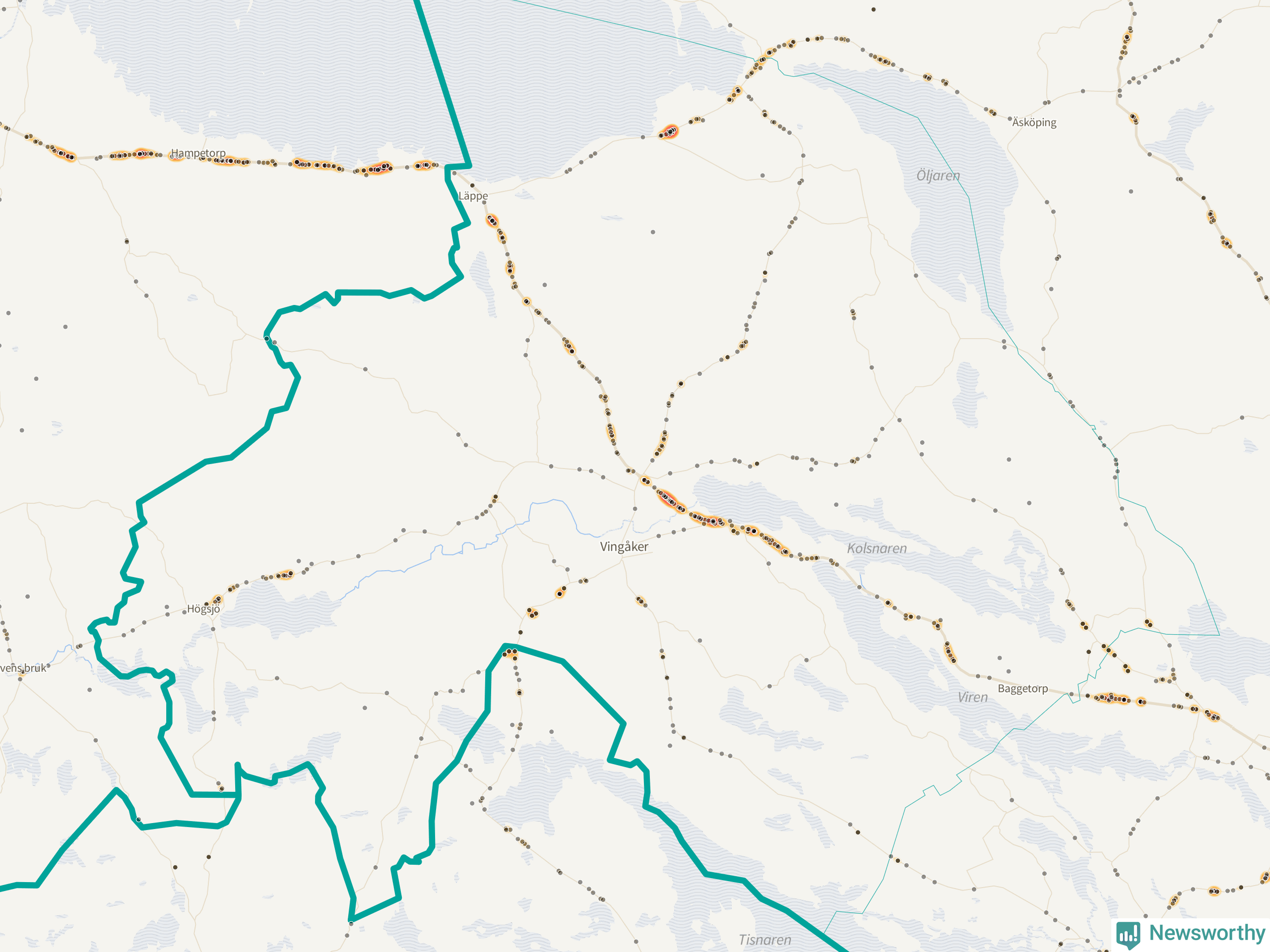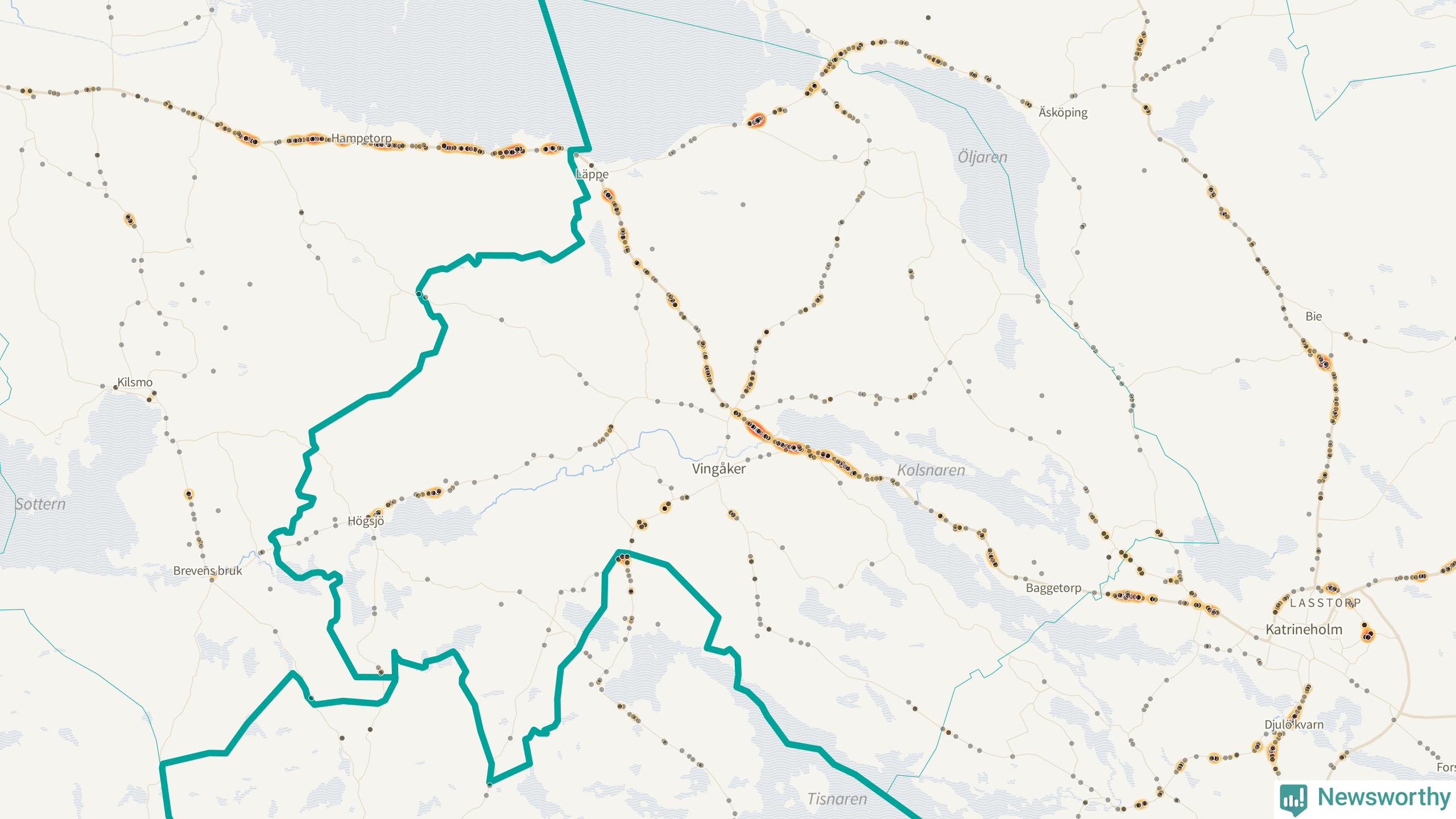 Flest olyckor i kommunen – 178 stycken – har skett längs väg 52. Av dessa orsakades 101 av dovhjort. Längs väg 582 har 54 viltolyckor rapporterats under motsvarande period.