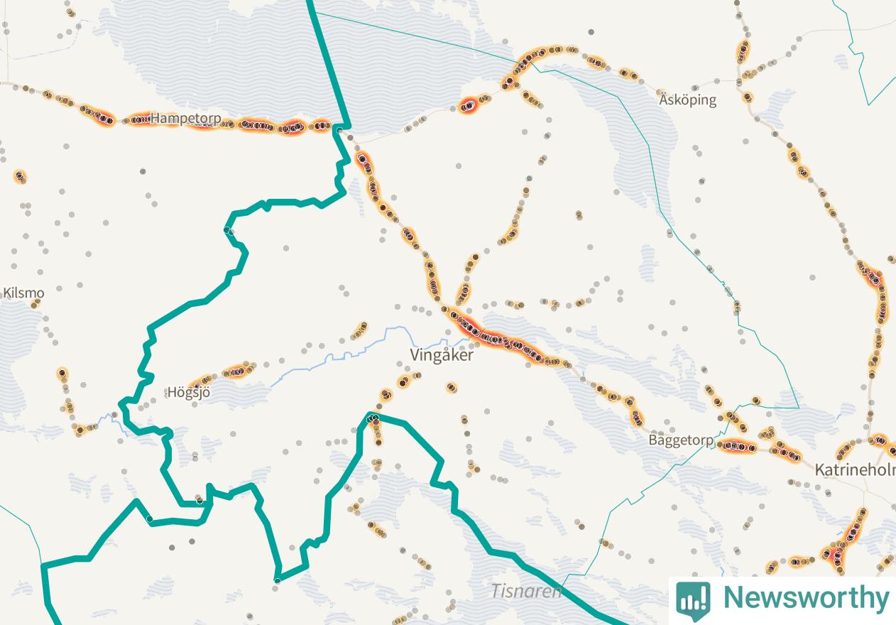 På hösten ökar risken för viltolyckor längs vägarna. Under de senaste fem höstarna har totalt 452 olyckor rapporterats i Vingåkers kommun. Här är de mest drabbade vägarna.