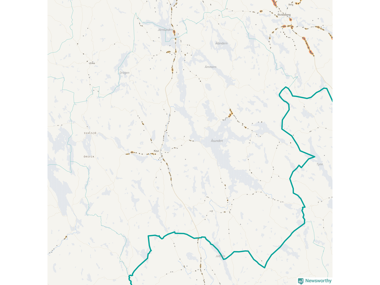 Flest olyckor i kommunen – 68 stycken – har skett längs väg 23 och väg 34 (då räknar vi in 68 olyckor där väg 23 har gemensam sträckning med väg 34 och 68 olyckor där väg 34 har gemensam sträckning med väg 23). 37 respektive 37 av olyckorna orsakades av rådjur. Längs väg 134 har 58 viltolyckor rapporterats under motsvarande period.