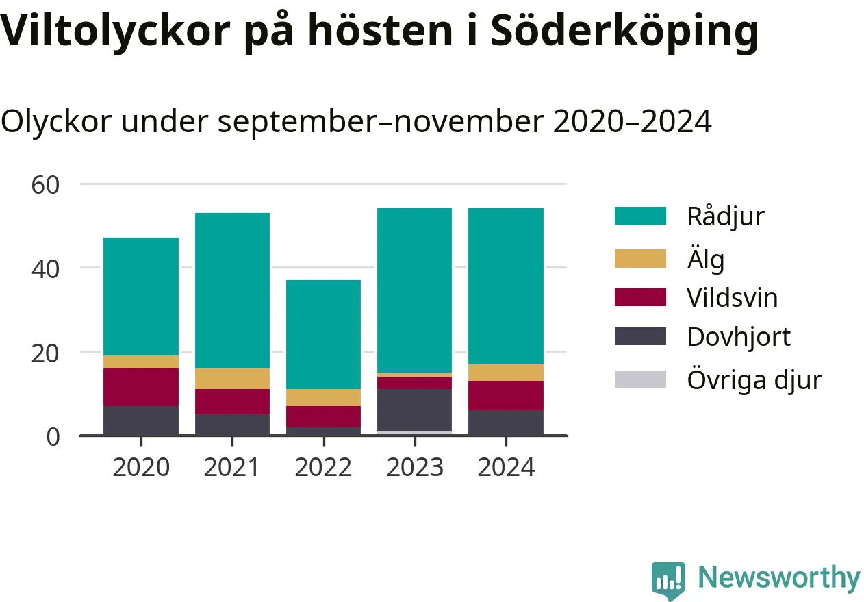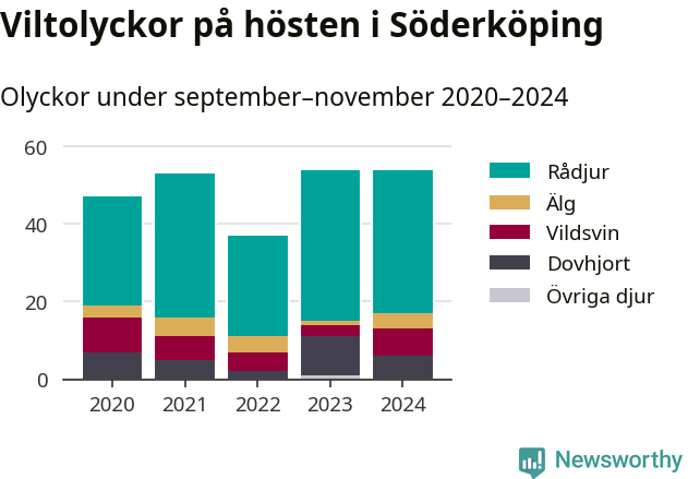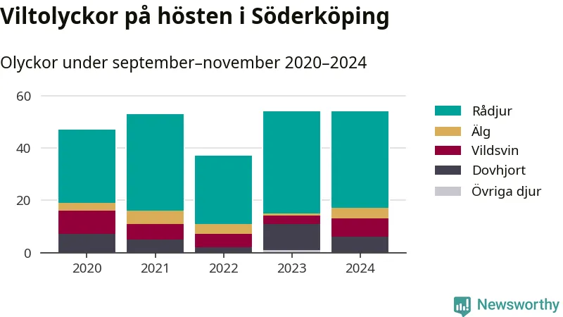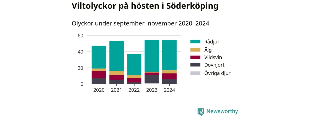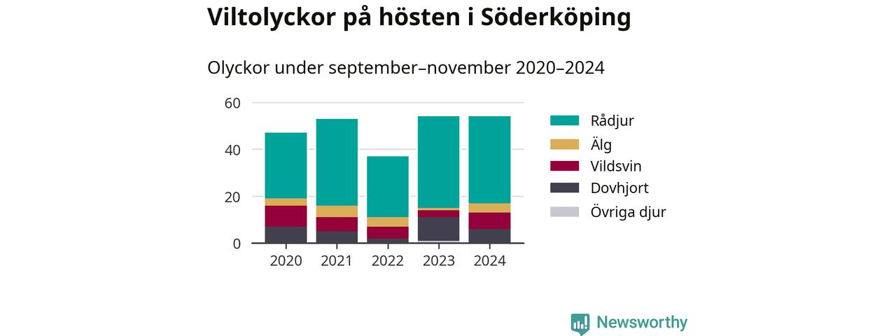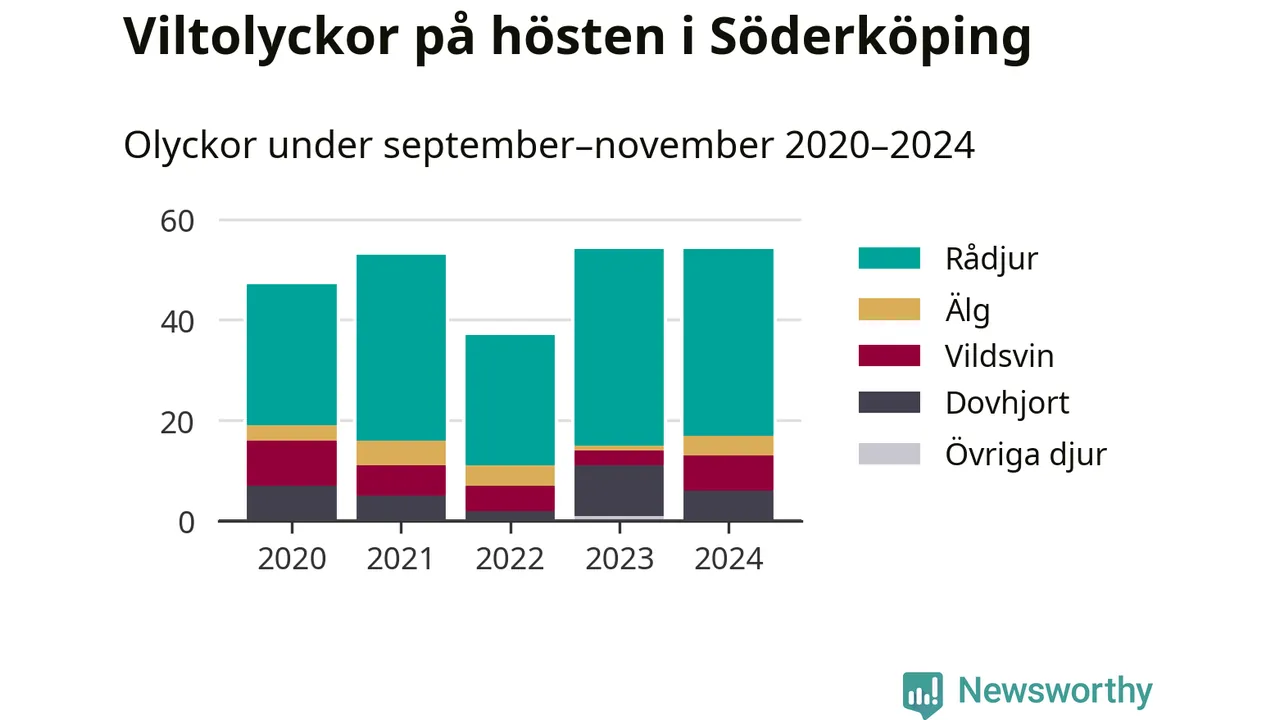 Under de senaste höstarna har antalet viltolyckor ökat i Sverige. I fjol höst noterades också flest viltolyckor i Söderköping hittills under 2020-talet, totalt 54 stycken.