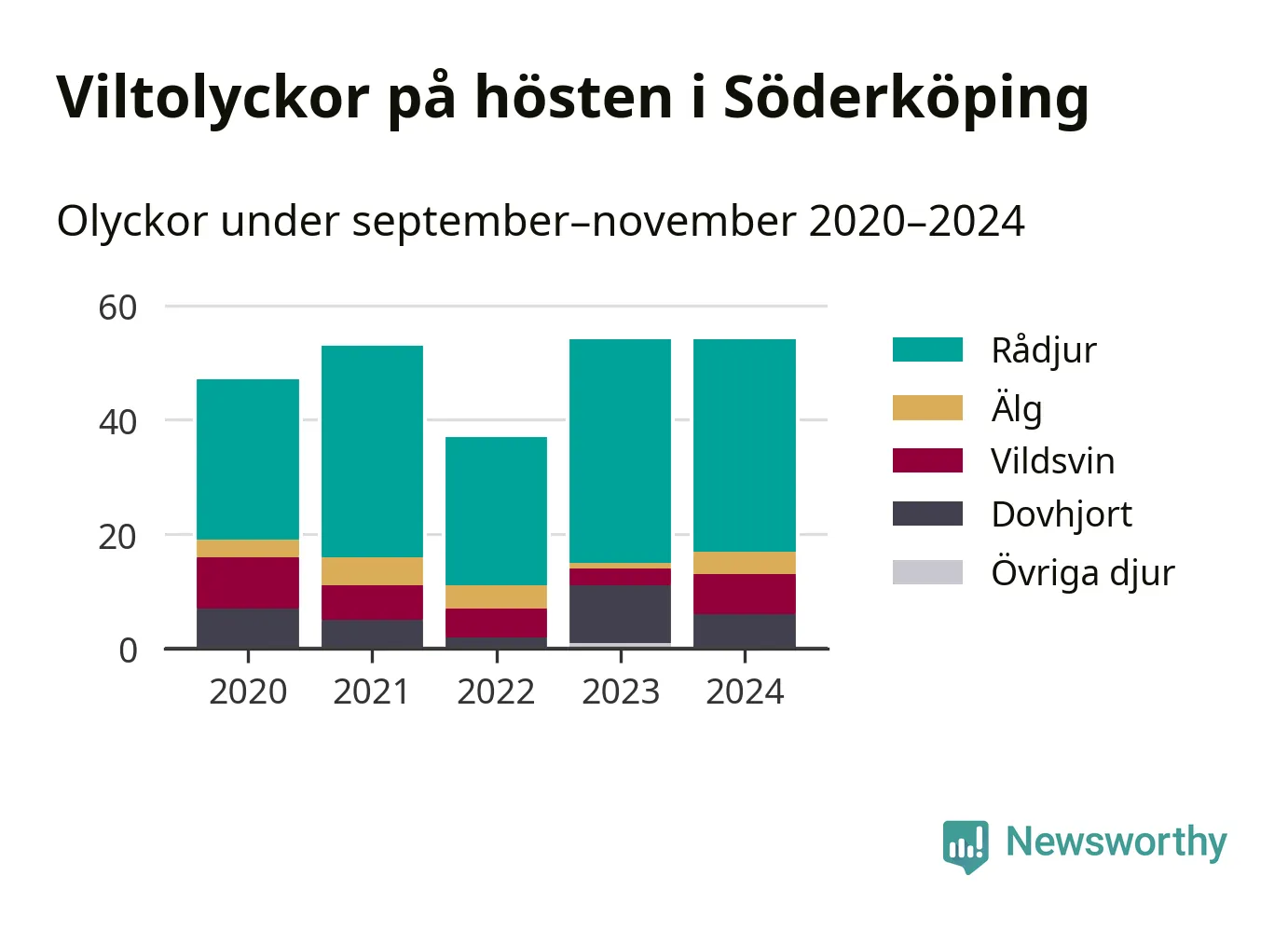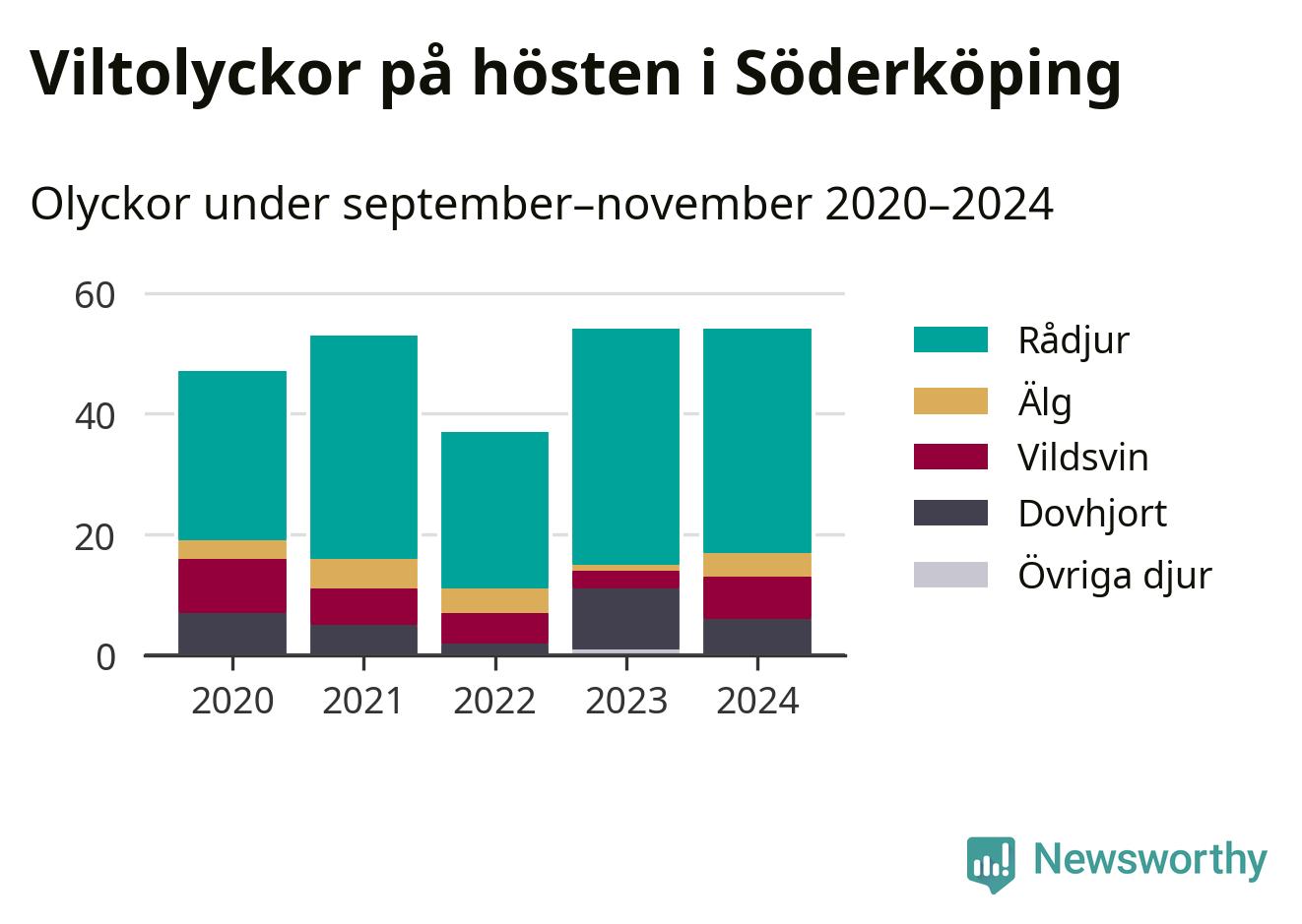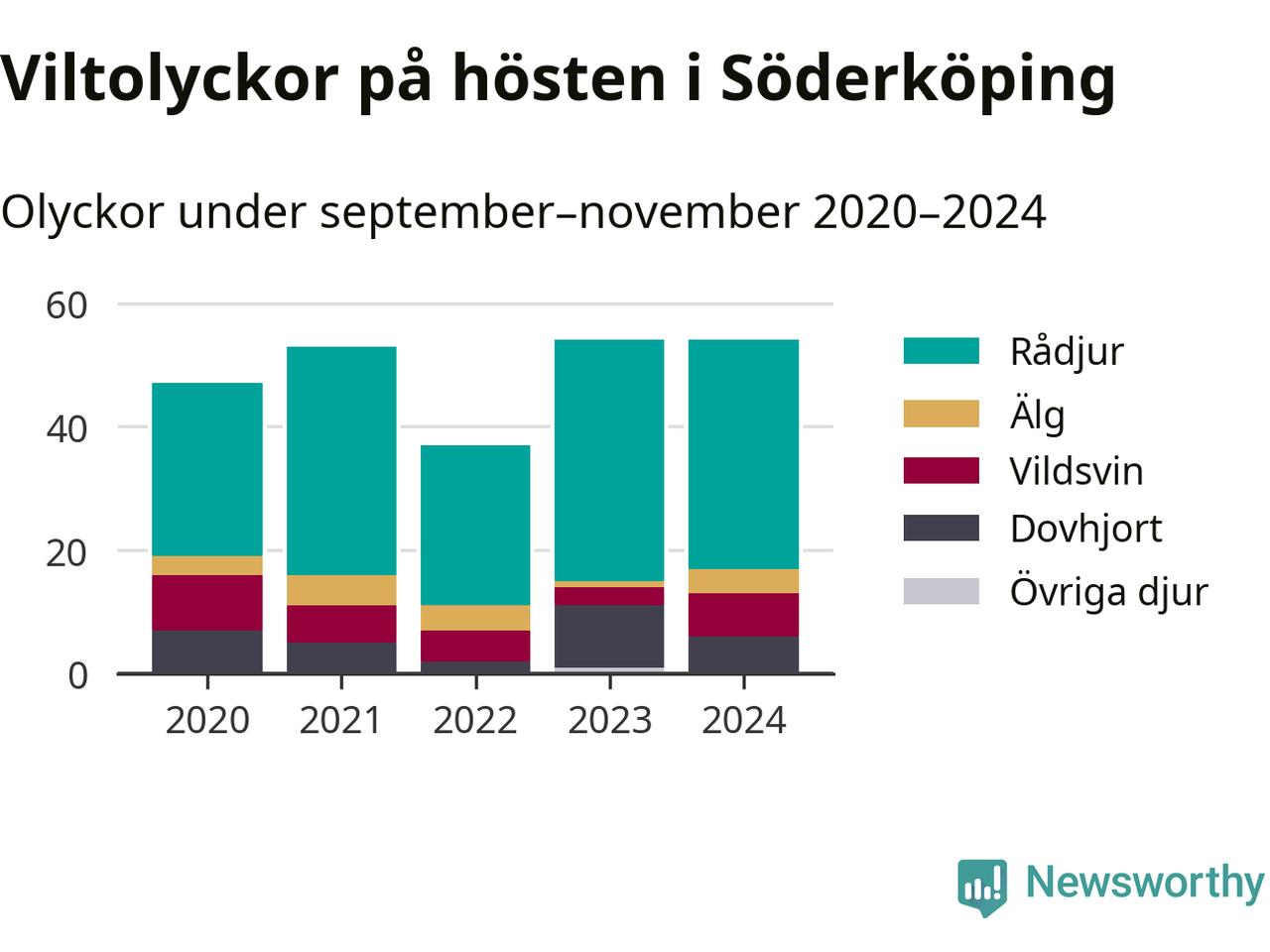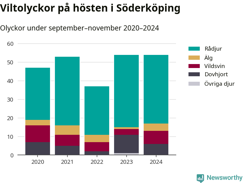 Under de senaste höstarna har antalet viltolyckor ökat i Sverige. I fjol höst noterades också flest viltolyckor i Söderköping hittills under 2020-talet, totalt 54 stycken.