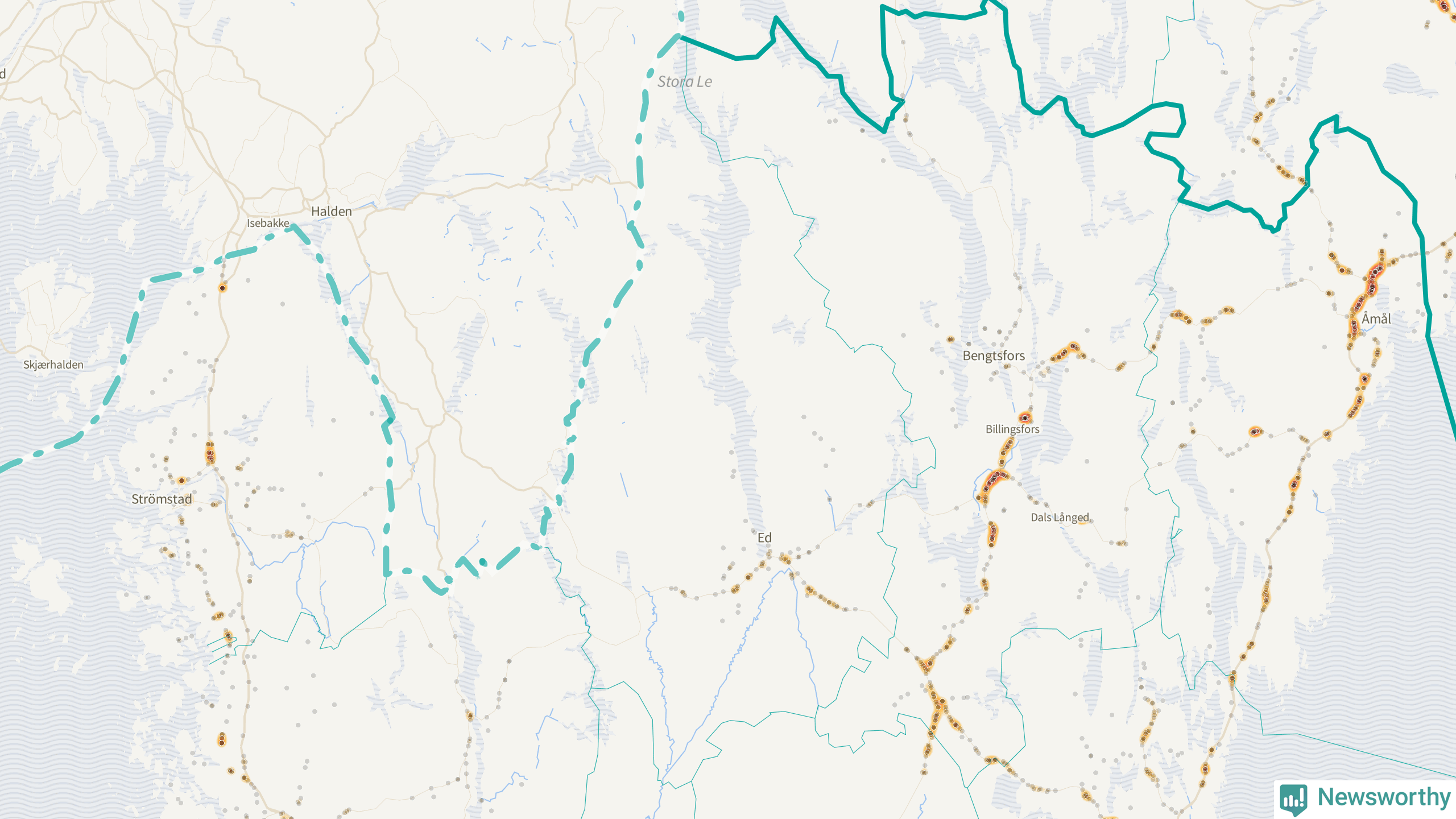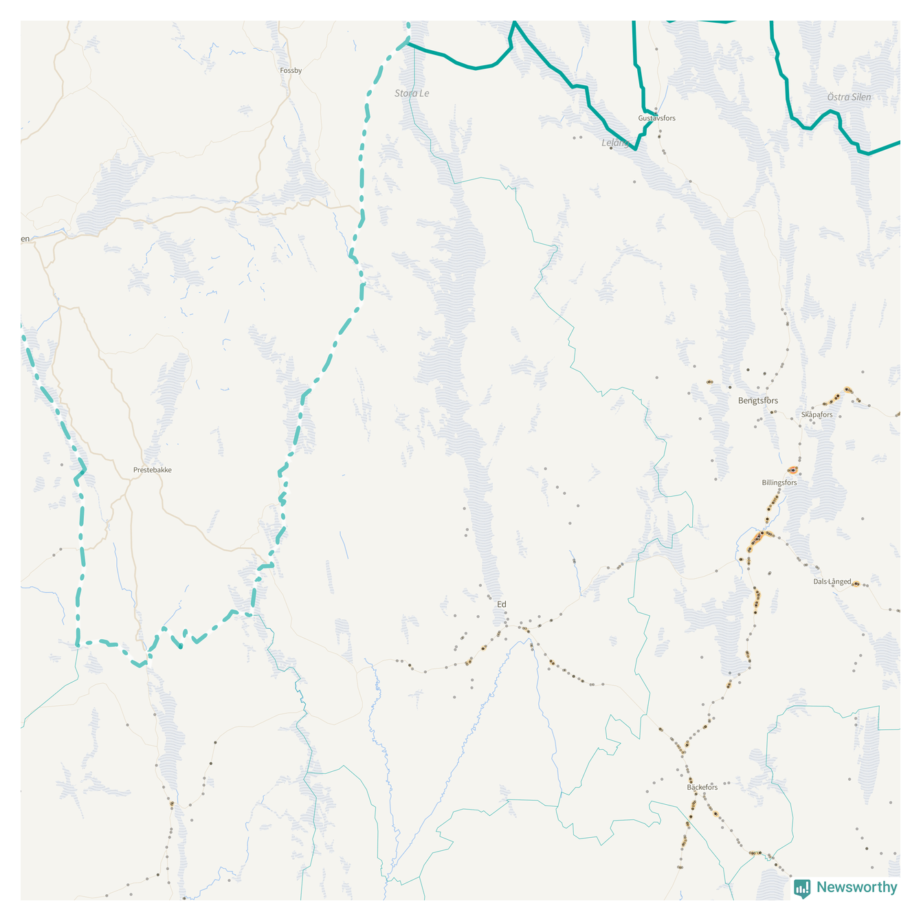 På hösten ökar risken för viltolyckor längs vägarna. Under de senaste fem höstarna har totalt 88 olyckor rapporterats i Dals-Eds kommun. Här är de mest drabbade vägarna.