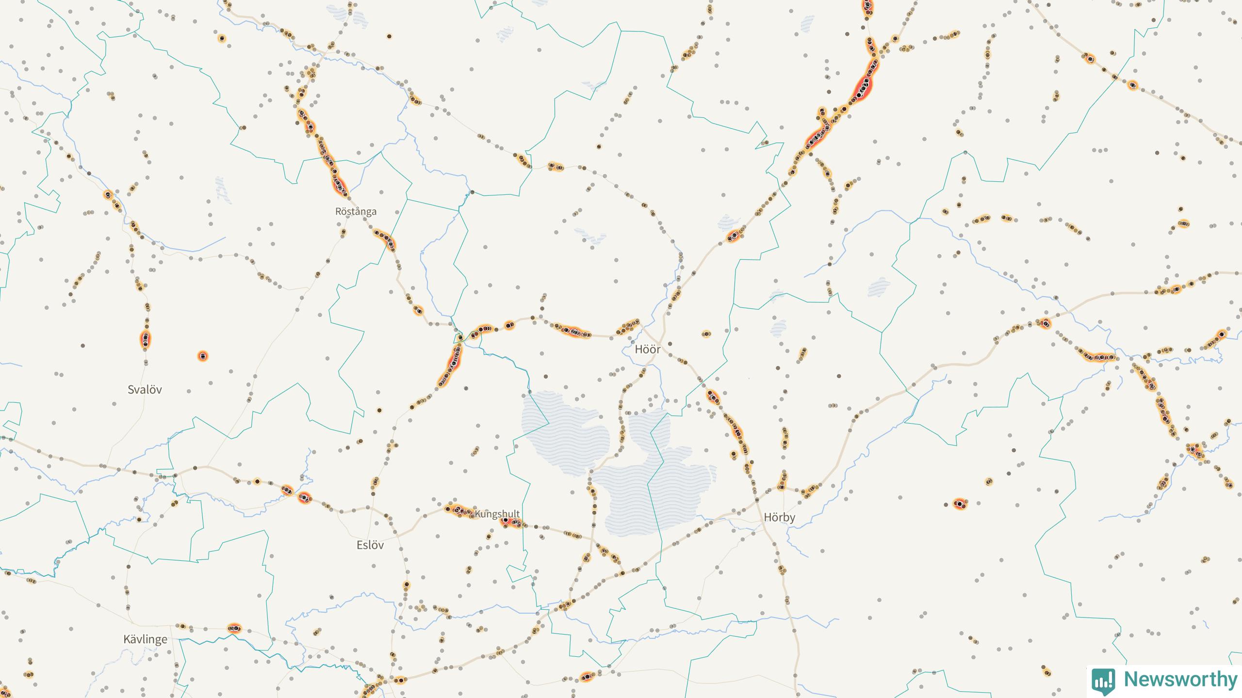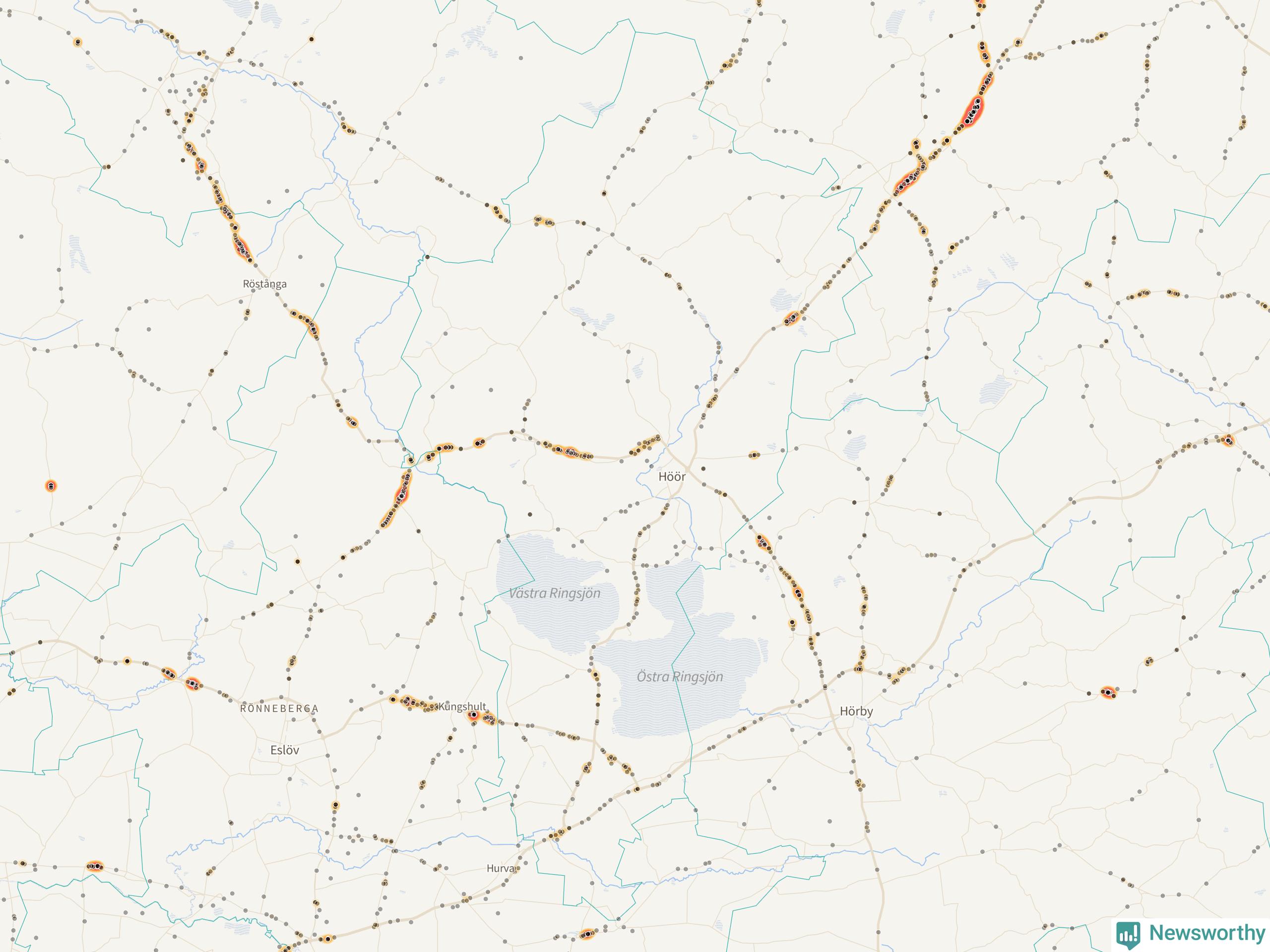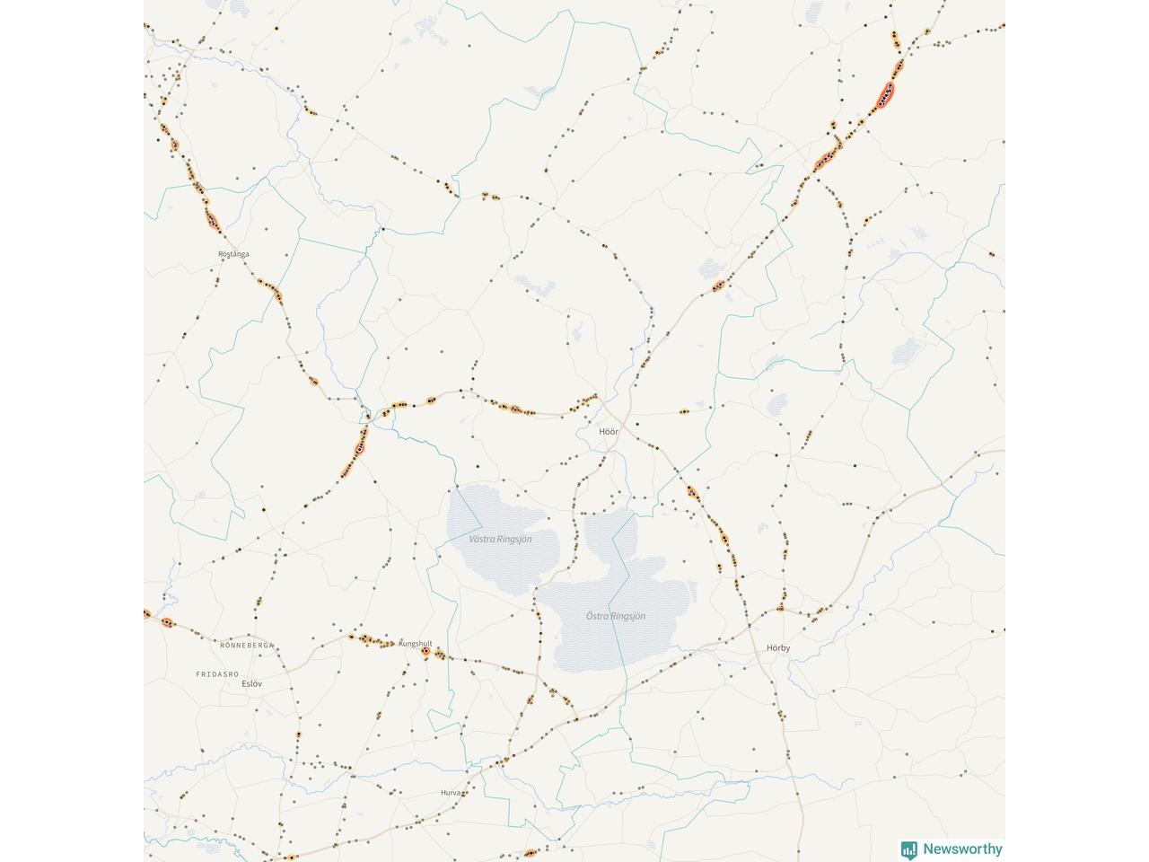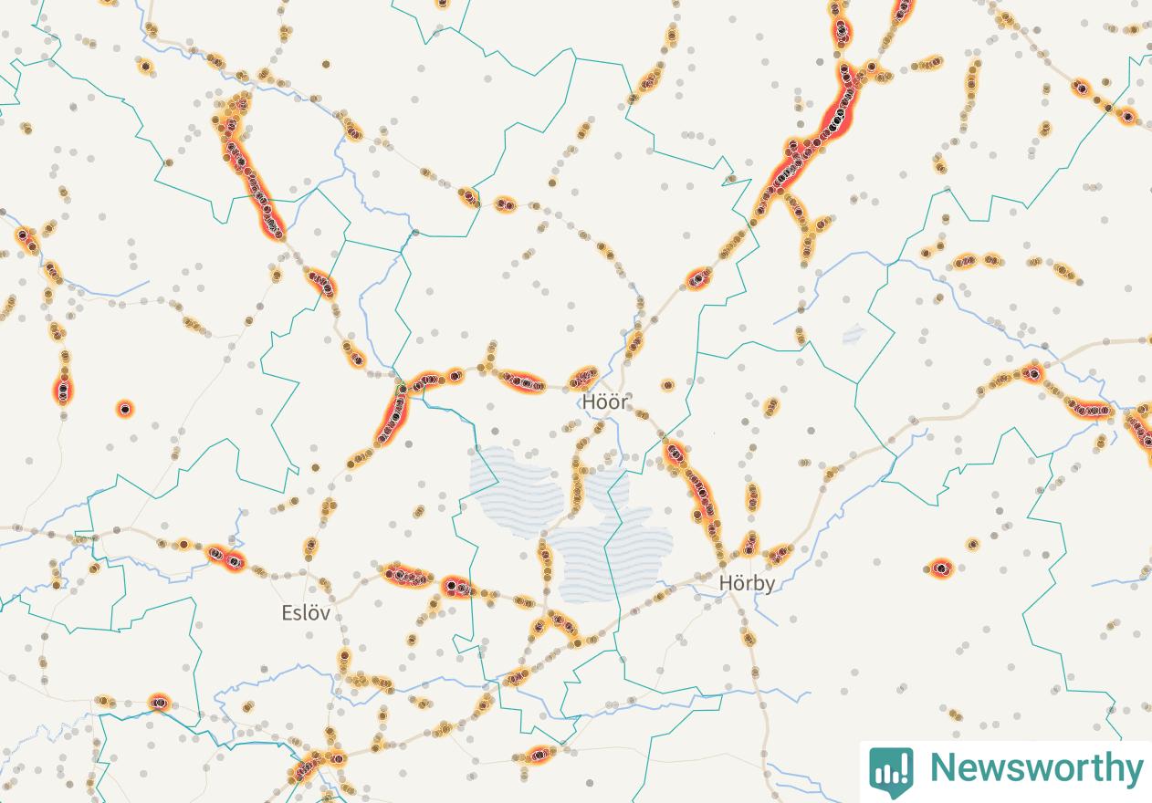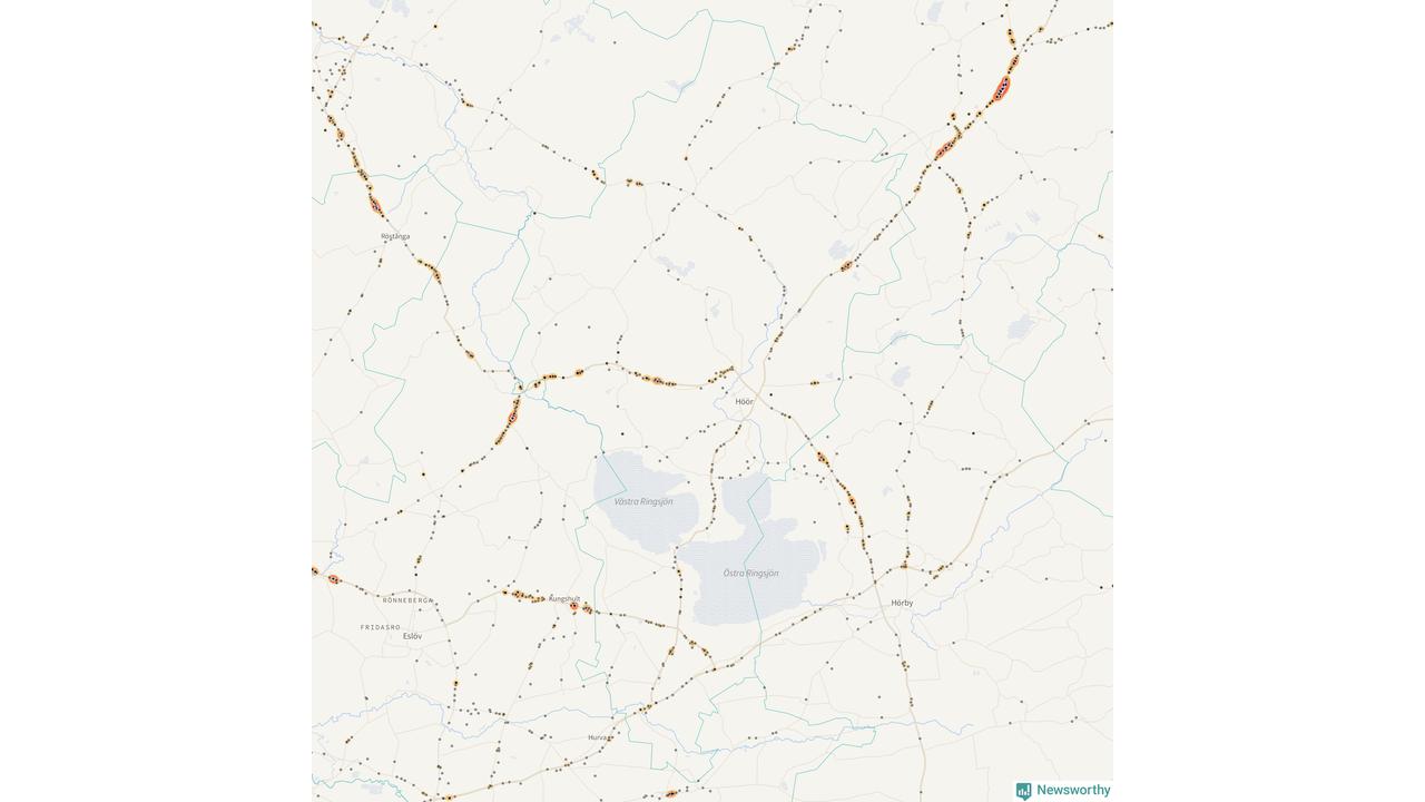 Här sker viltolyckorna i Höör