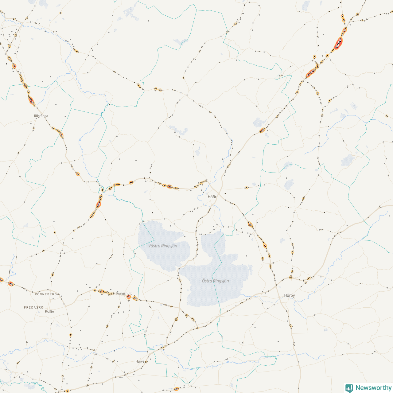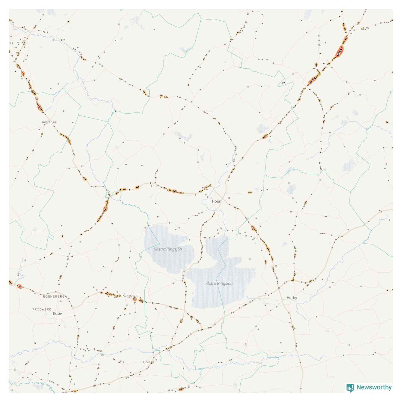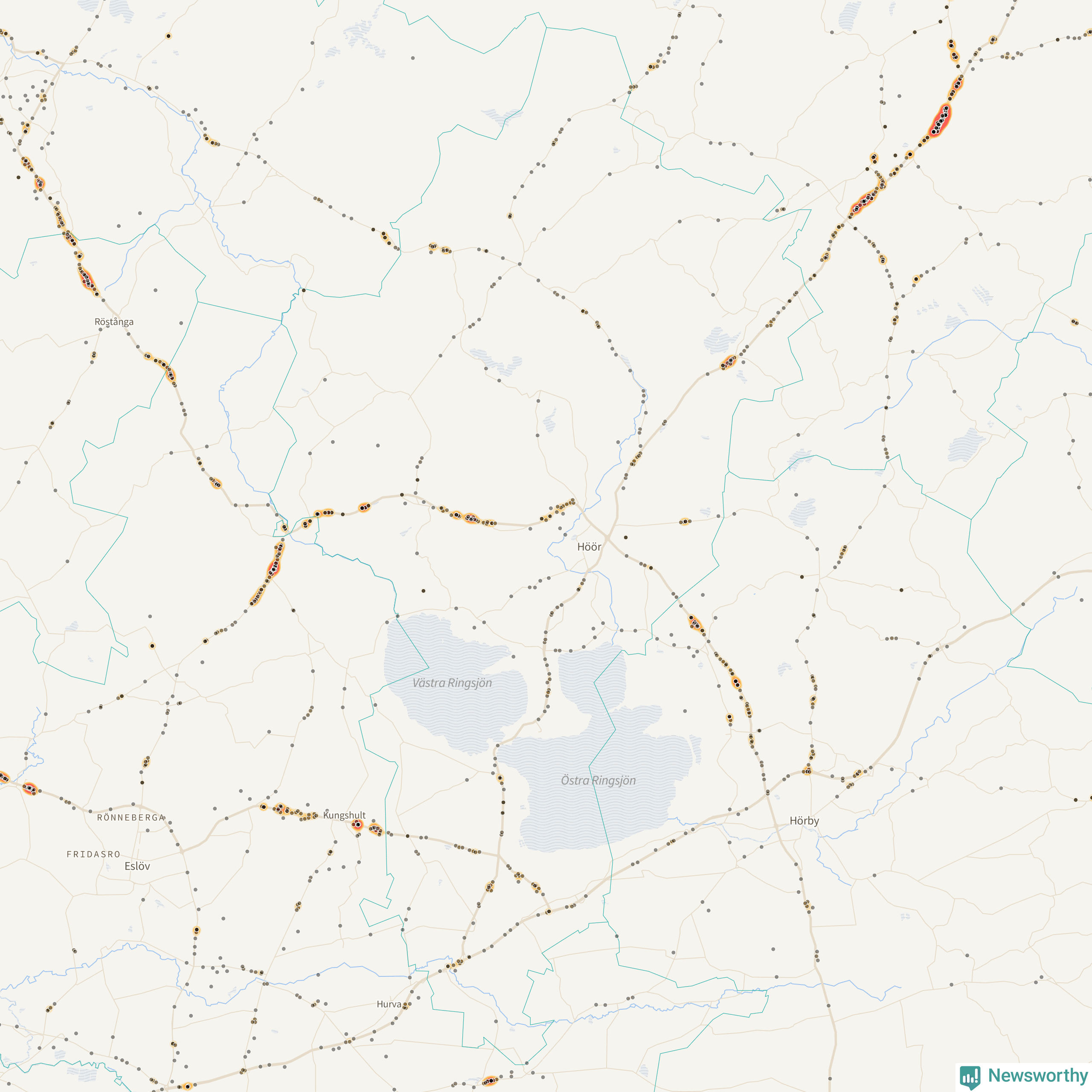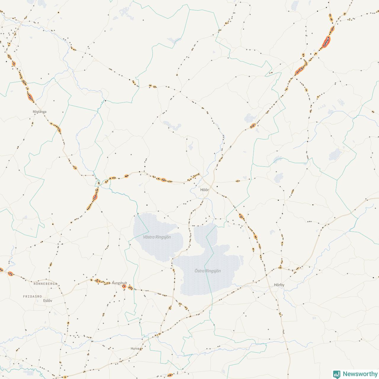 Här sker viltolyckorna i Höör