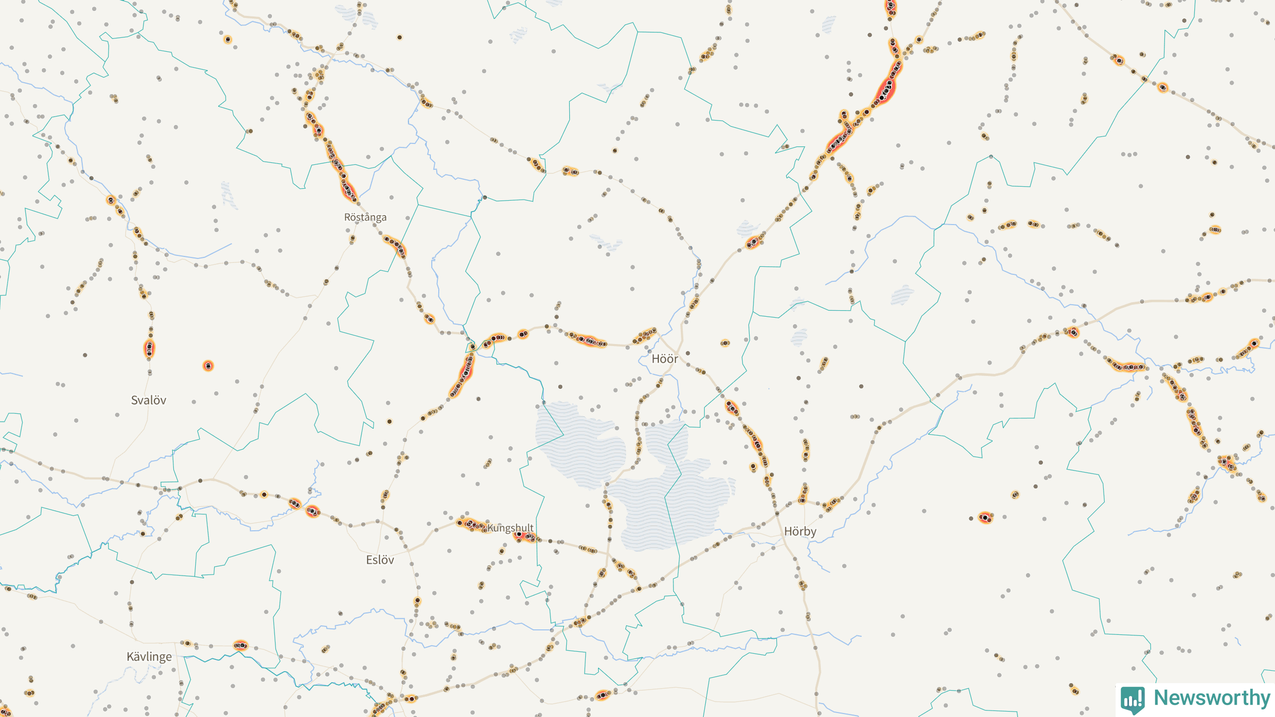 Newsworthy är en nyhetssajt som gör lokal journalistik baserat på data. Vi är datajournalister som analyserar och tolkar världen på siffror, snarare än tyckande.