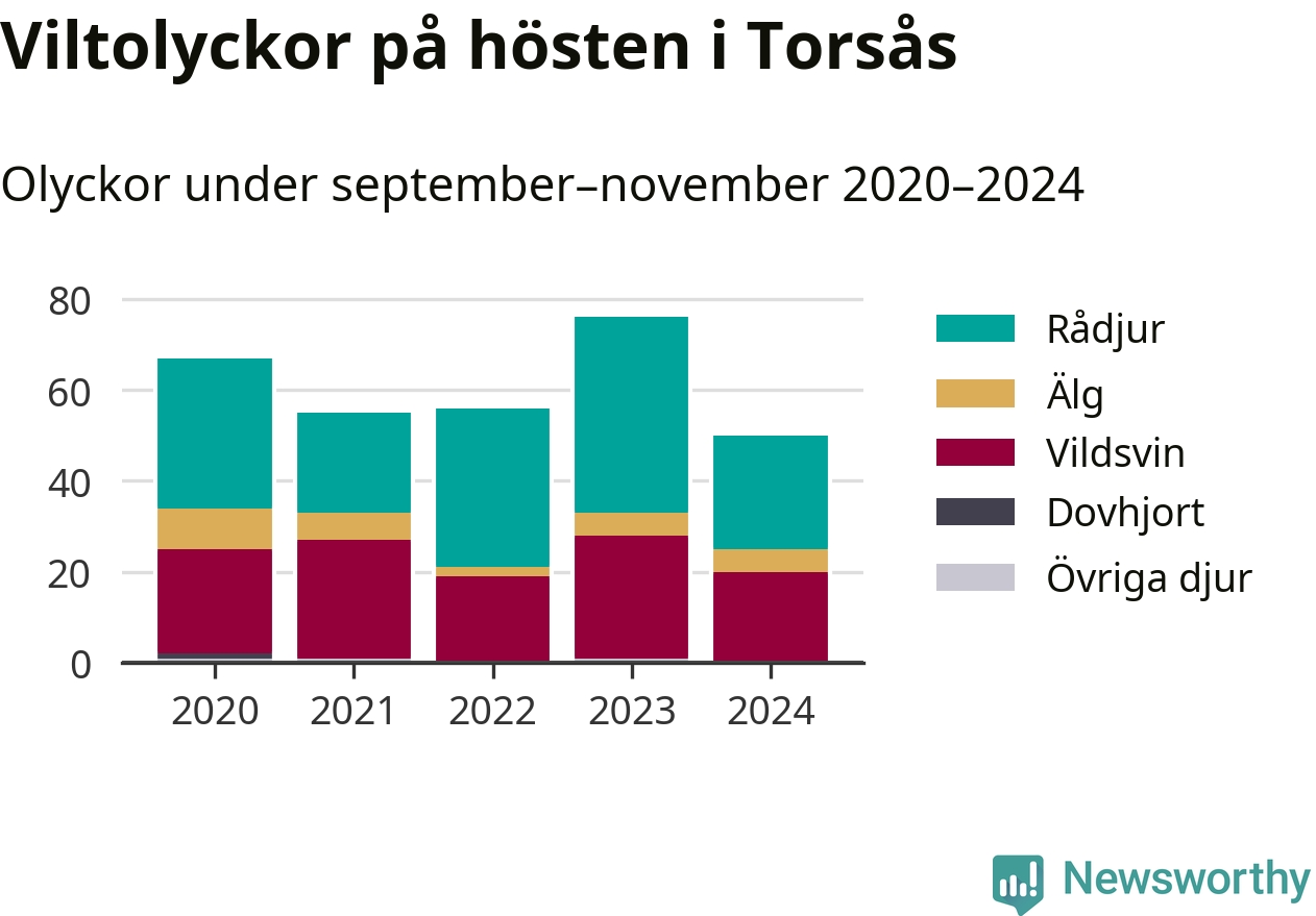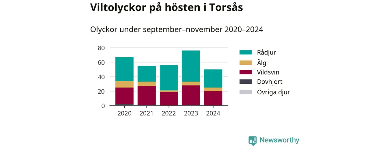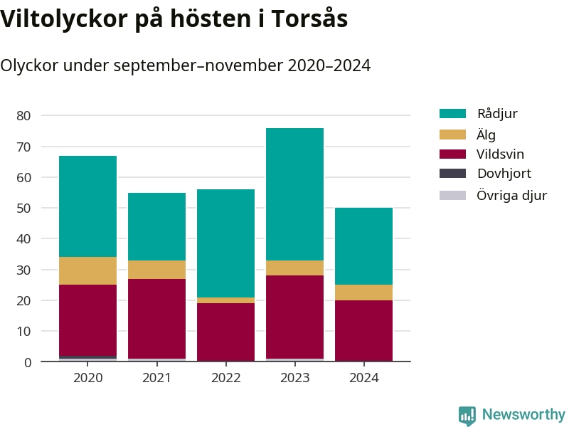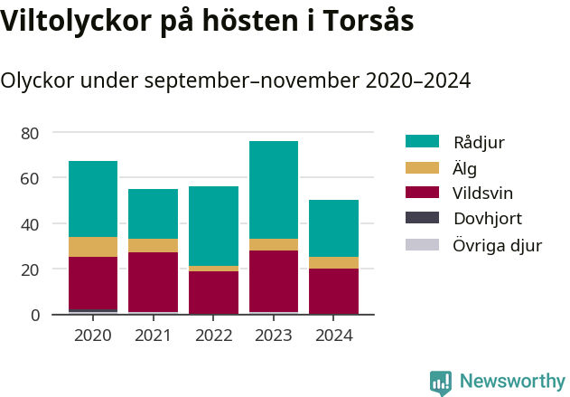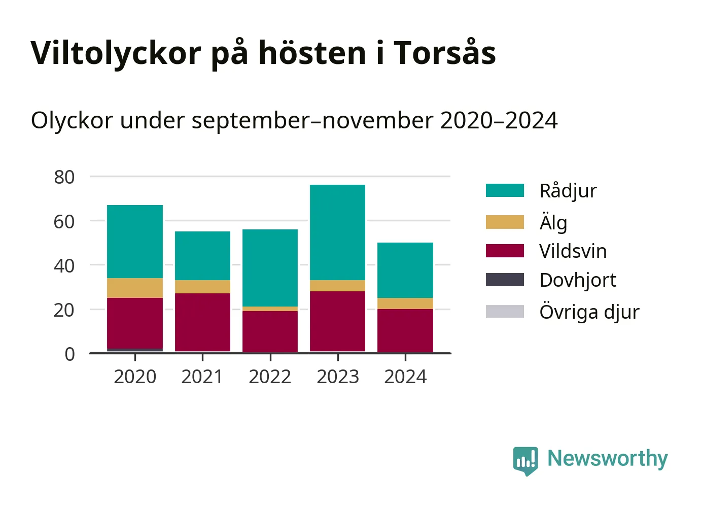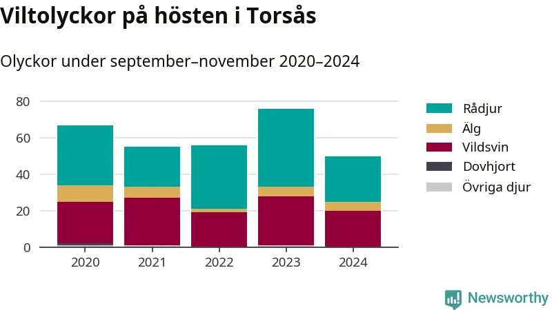 Under de senaste höstarna har antalet viltolyckor ökat i Sverige. I fjol höst noterades dock färst viltolyckor i Torsås hittills under 2020-talet, totalt 50 stycken.