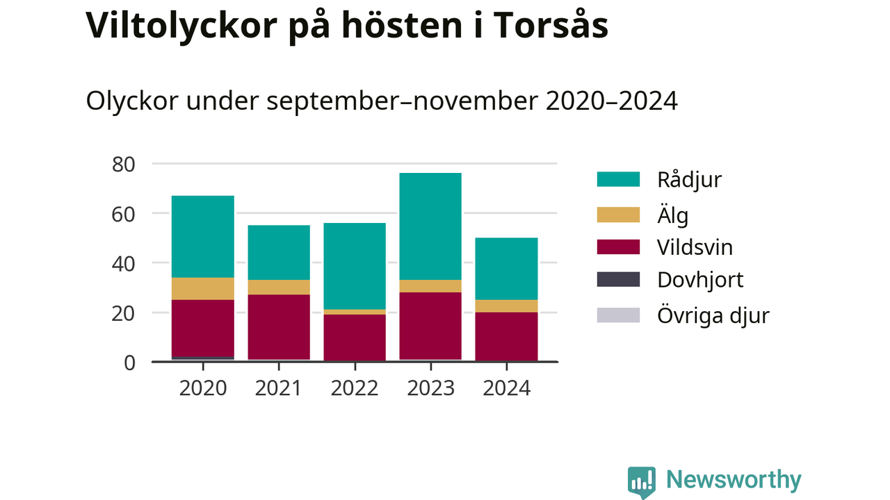 På hösten ökar risken för viltolyckor längs vägarna. Under de senaste fem höstarna har totalt 304 olyckor rapporterats i Torsås kommun. Här är de mest drabbade vägarna.