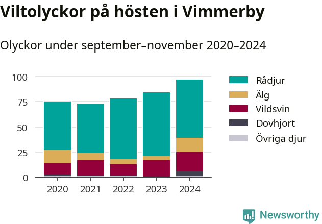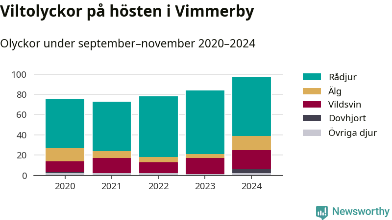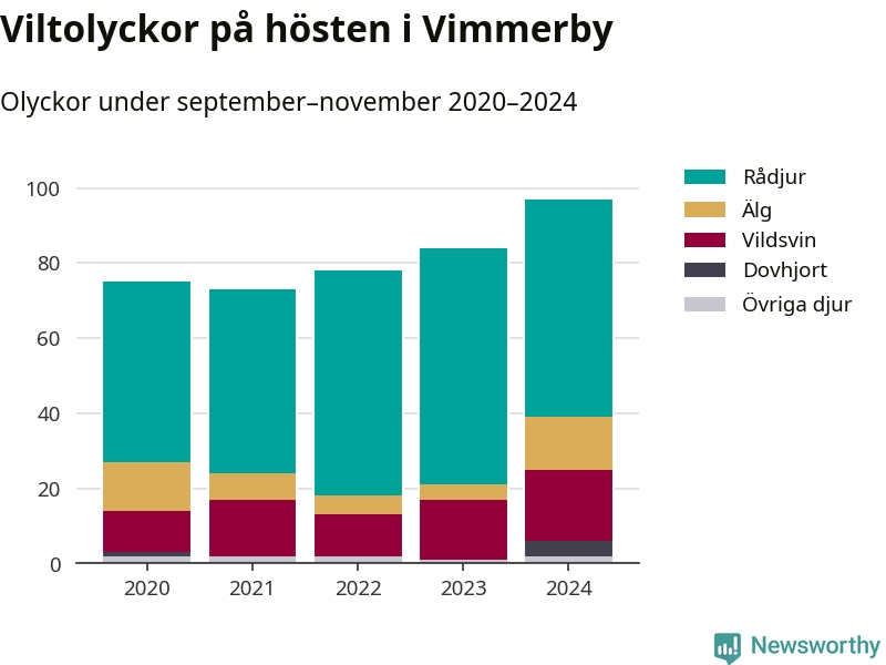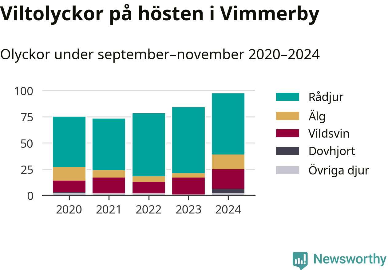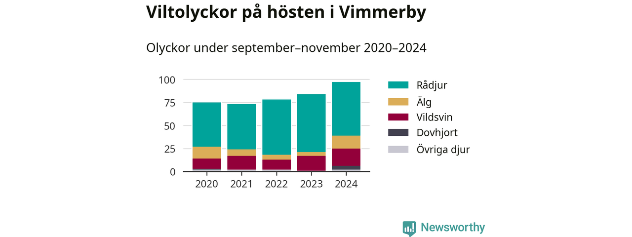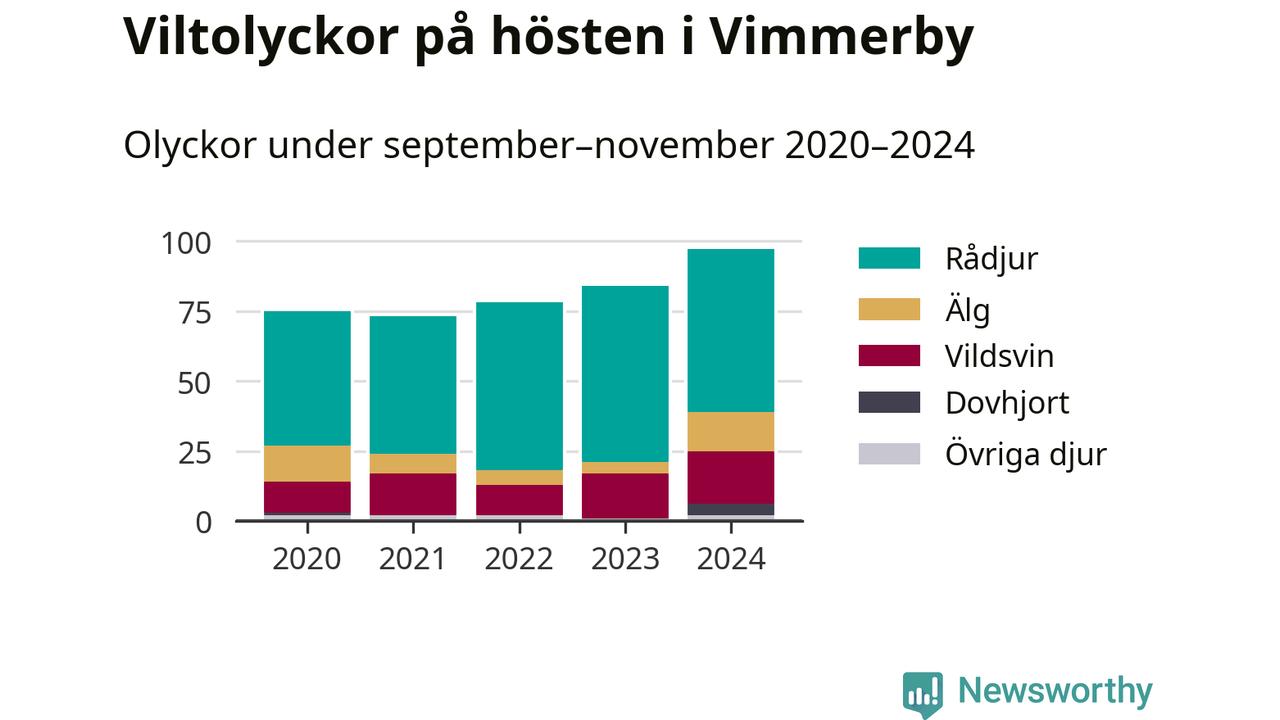 Under de senaste höstarna har antalet viltolyckor ökat i Sverige. I fjol höst noterades också flest viltolyckor i Vimmerby hittills under 2020-talet, totalt 97 stycken.