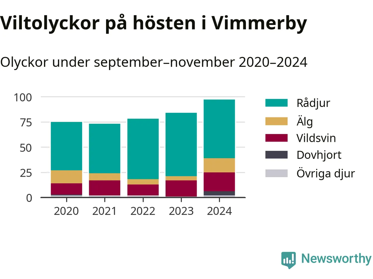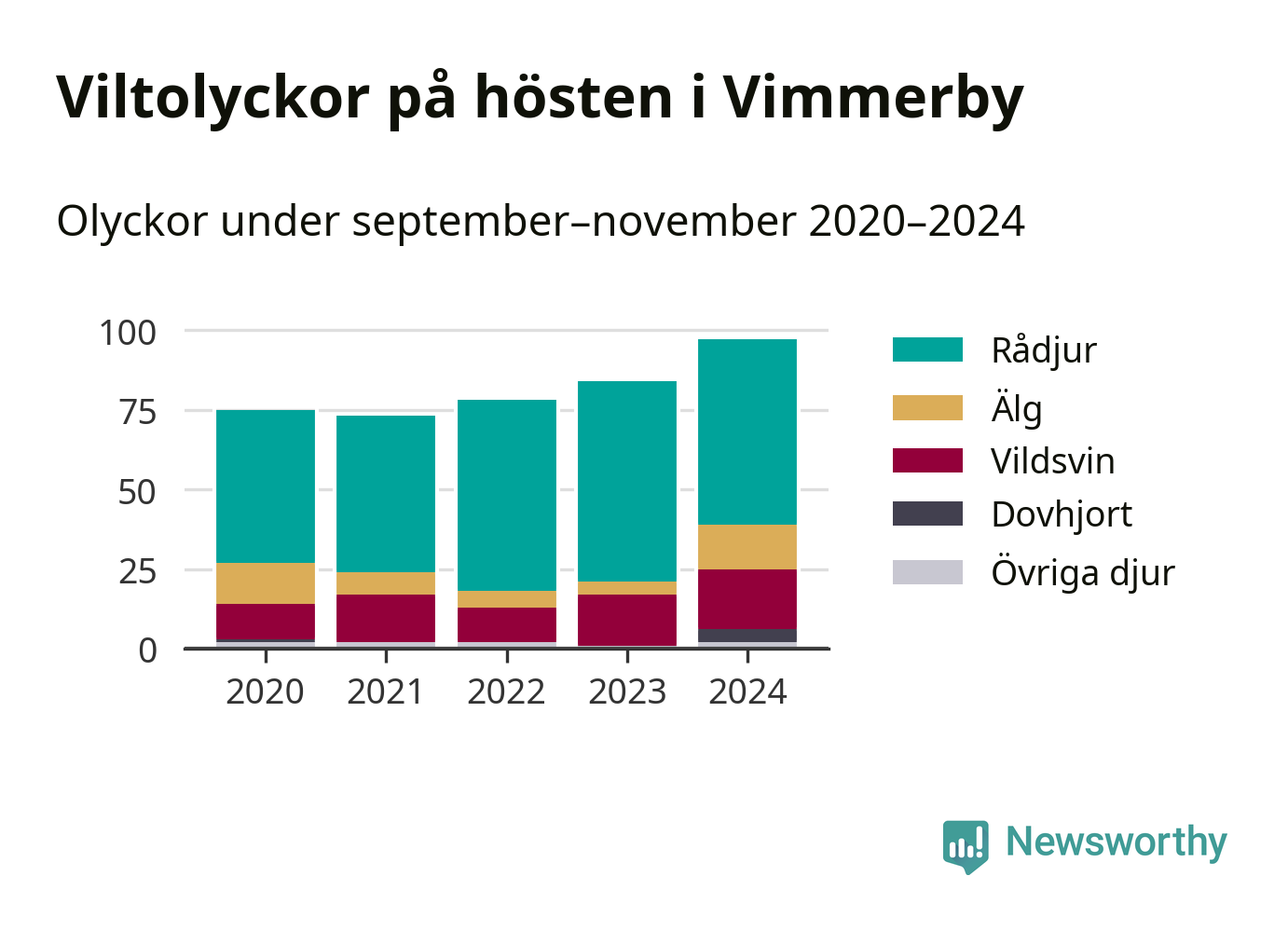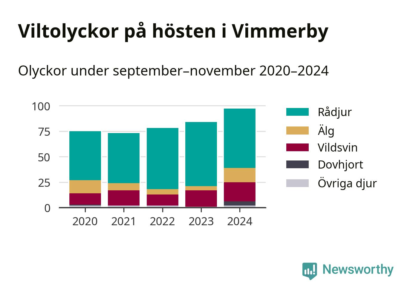 Under de senaste höstarna har antalet viltolyckor ökat i Sverige. I fjol höst noterades också flest viltolyckor i Vimmerby hittills under 2020-talet, totalt 97 stycken.