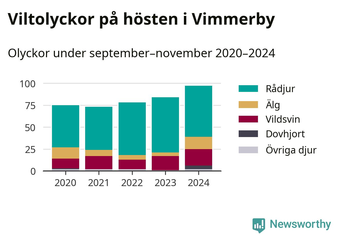 Källa: Nationella viltolycksrådet. Gäller olyckor under månaderna september–november 2020–2024.