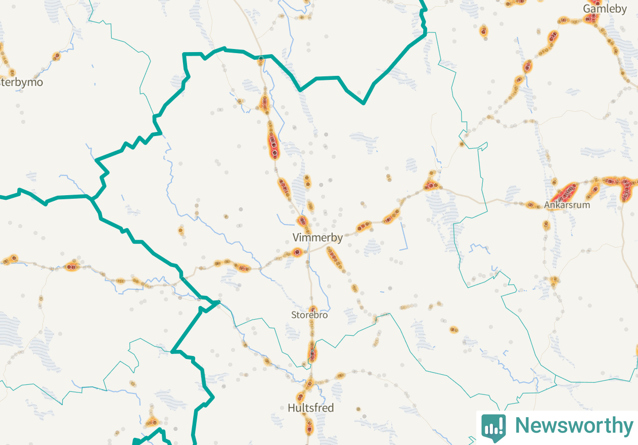 På hösten ökar risken för viltolyckor längs vägarna. Under de senaste fem höstarna har totalt 407 olyckor rapporterats i Vimmerby kommun. Här är de mest drabbade vägarna.