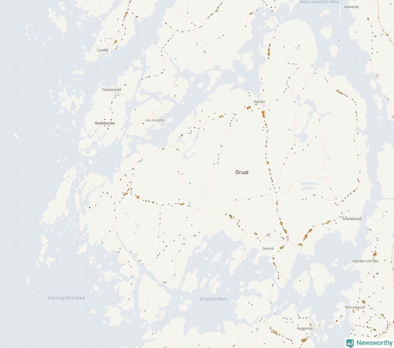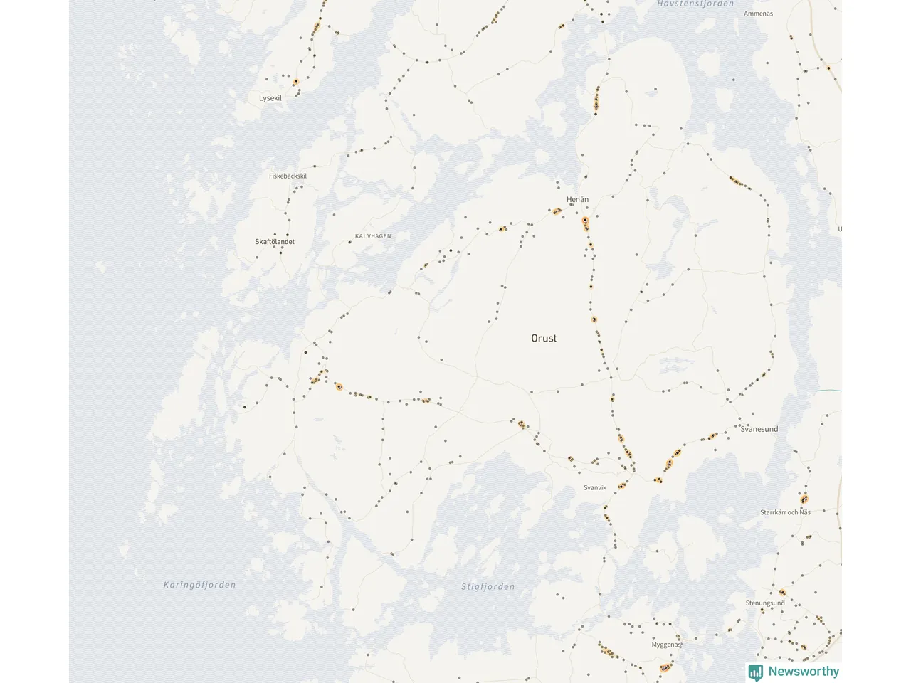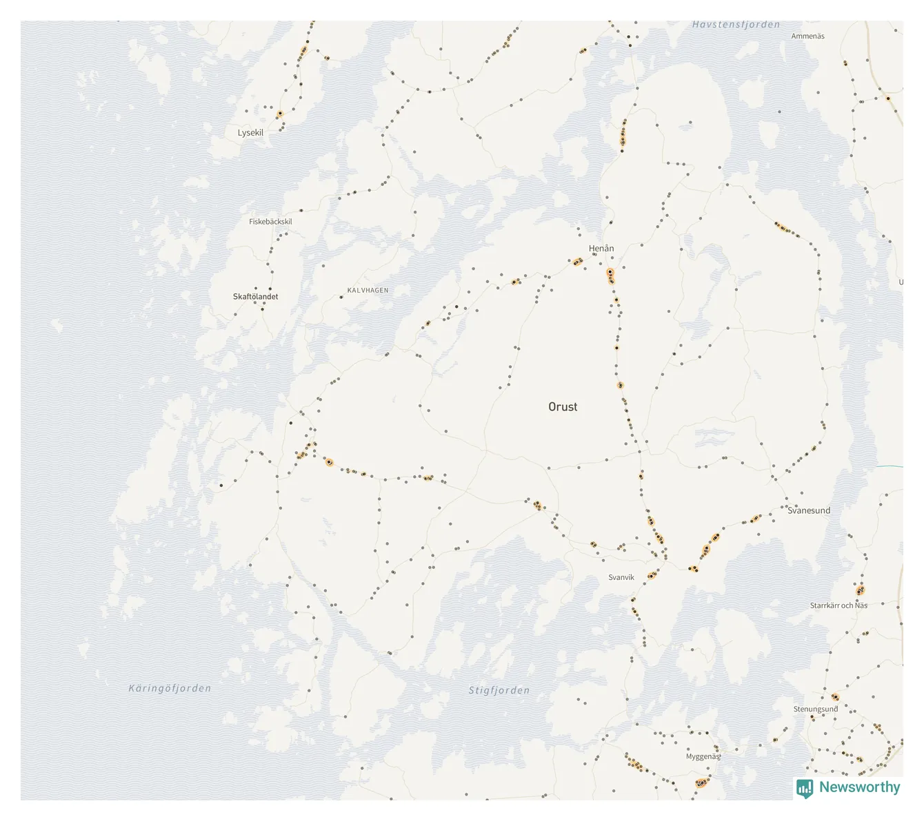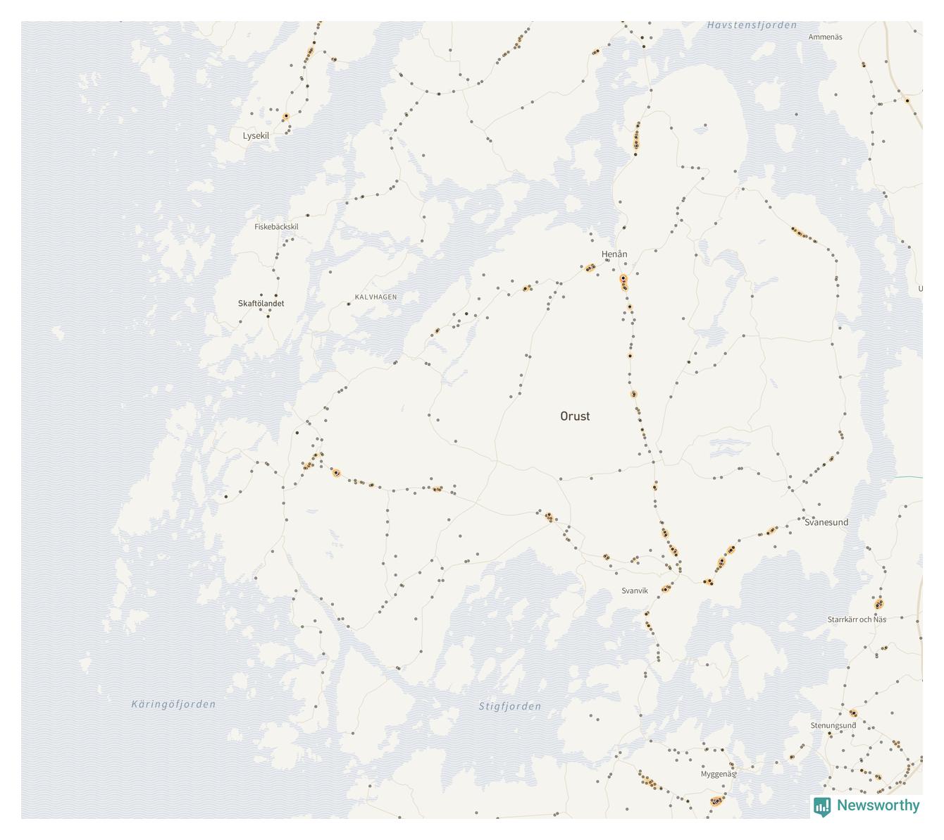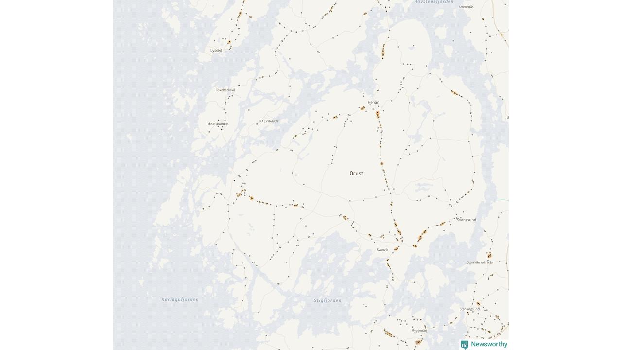 På hösten ökar risken för viltolyckor längs vägarna. Under de senaste fem höstarna har totalt 426 olyckor rapporterats i Orusts kommun. Här är de mest drabbade vägarna.