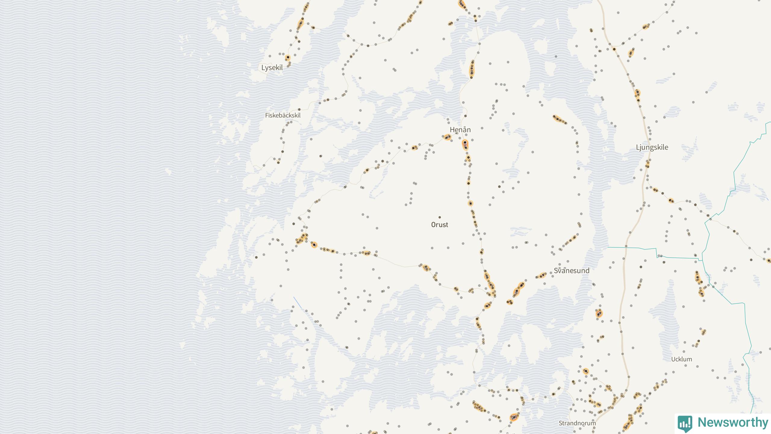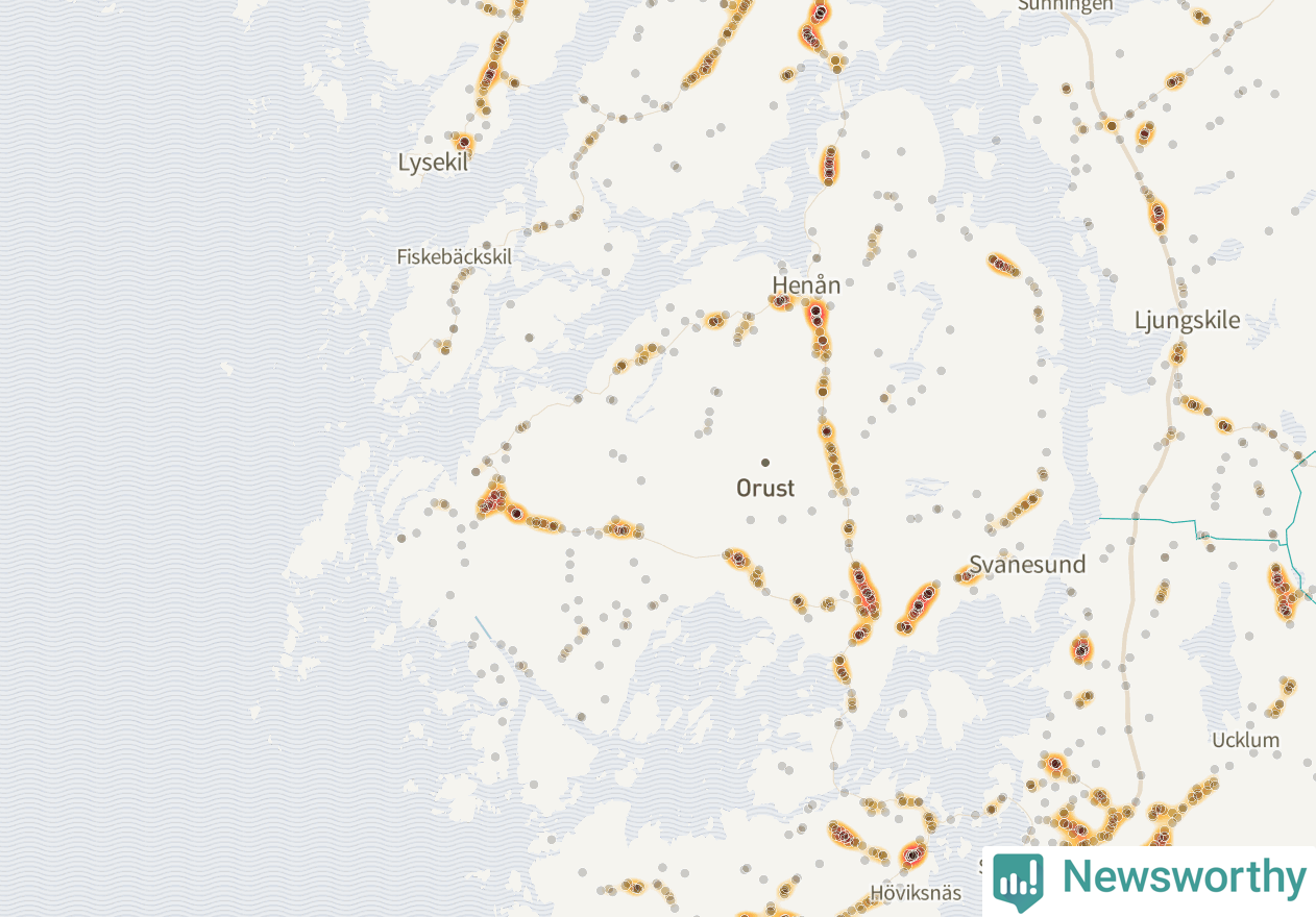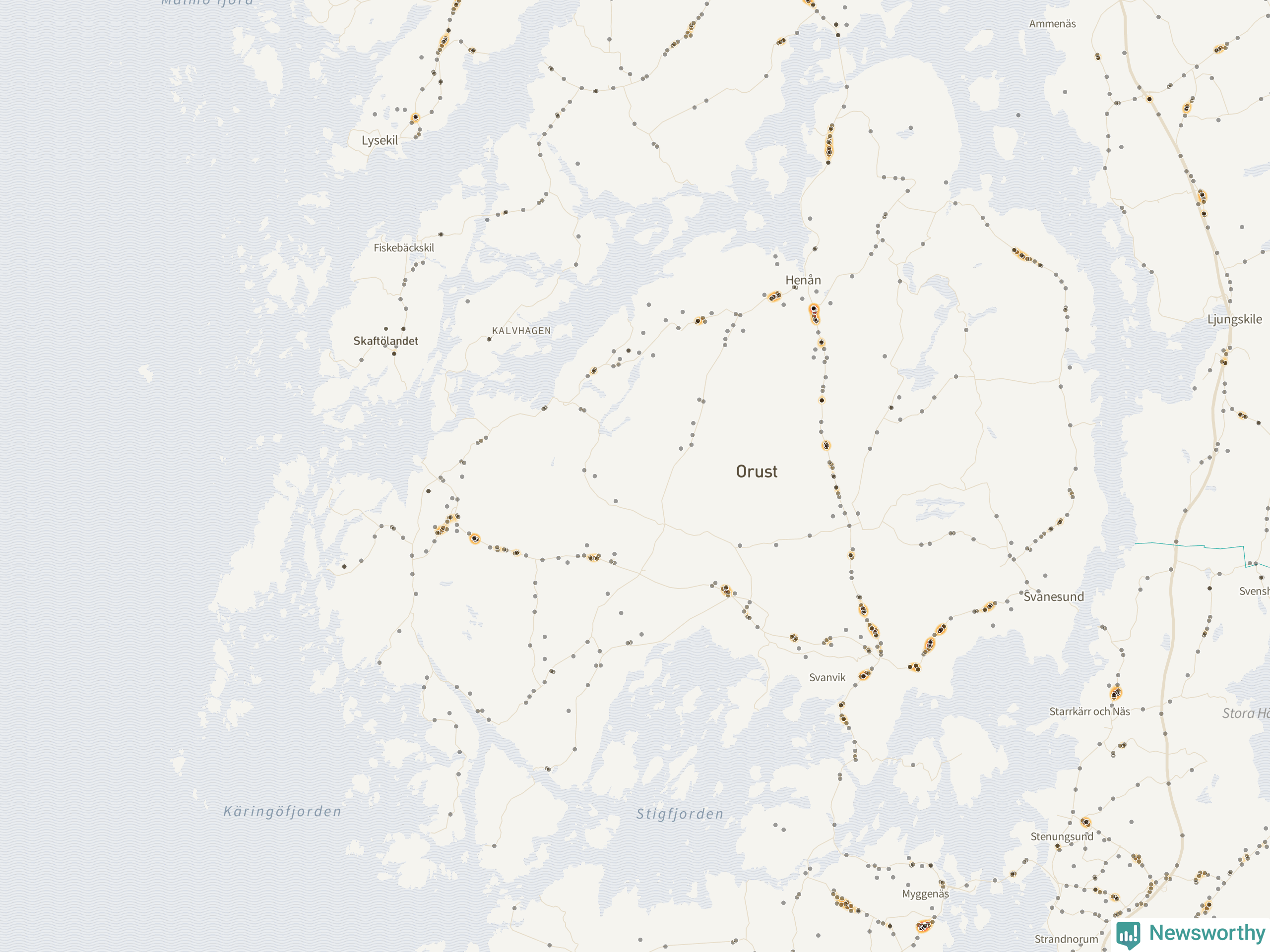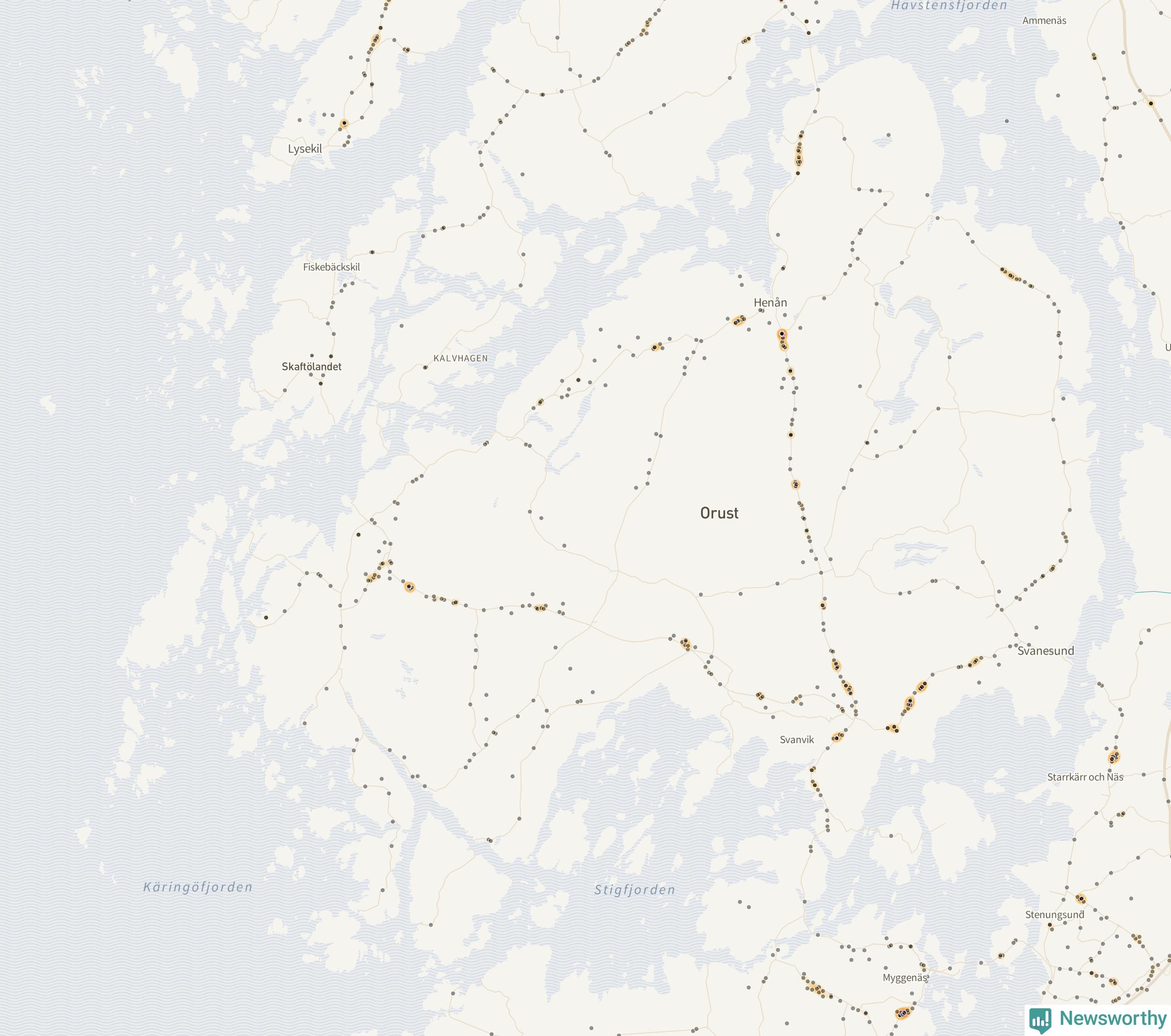På hösten ökar risken för viltolyckor längs vägarna. Under de senaste fem höstarna har totalt 426 olyckor rapporterats i Orusts kommun. Här är de mest drabbade vägarna.