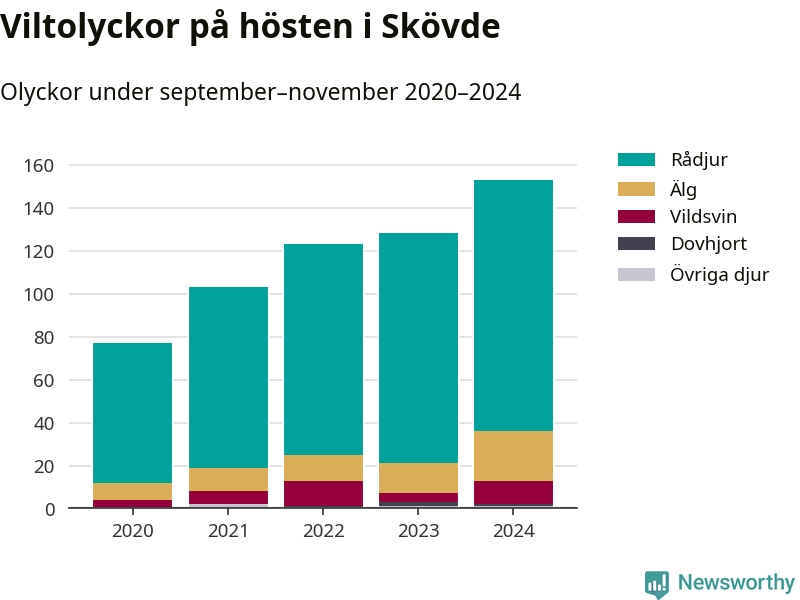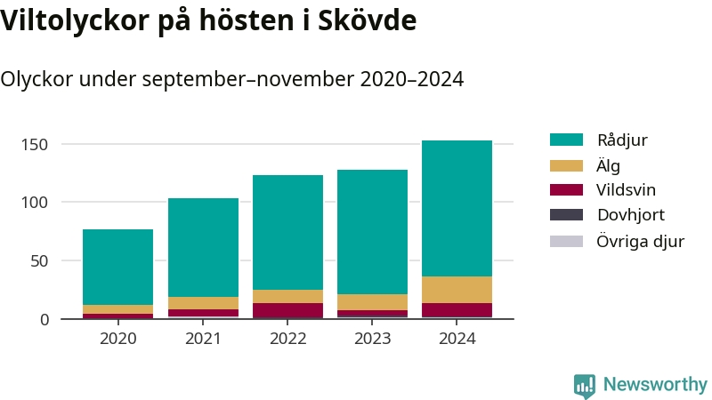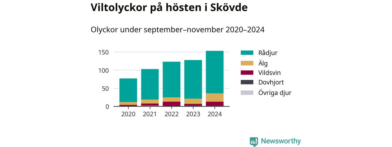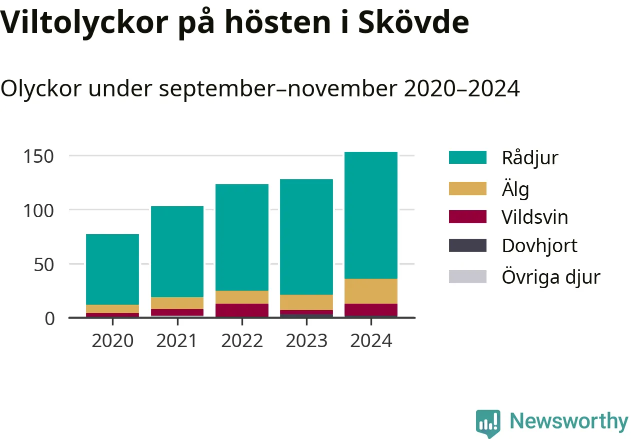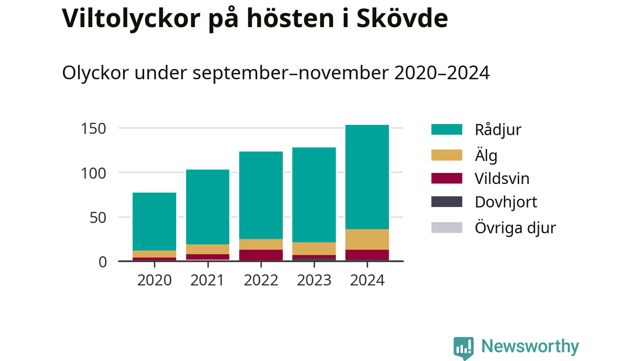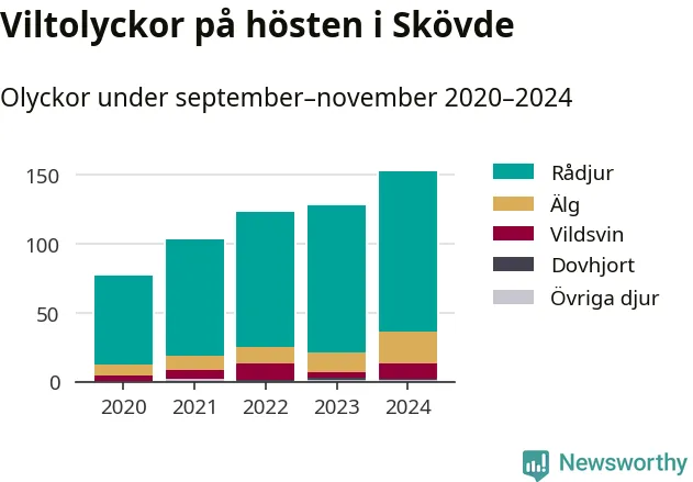 Under de senaste höstarna har antalet viltolyckor ökat i Sverige. Så också i Skövde, där antalet viltolyckor stadigt blivit fler – från 77 hösten 2020 till 153 olyckor i fjol.