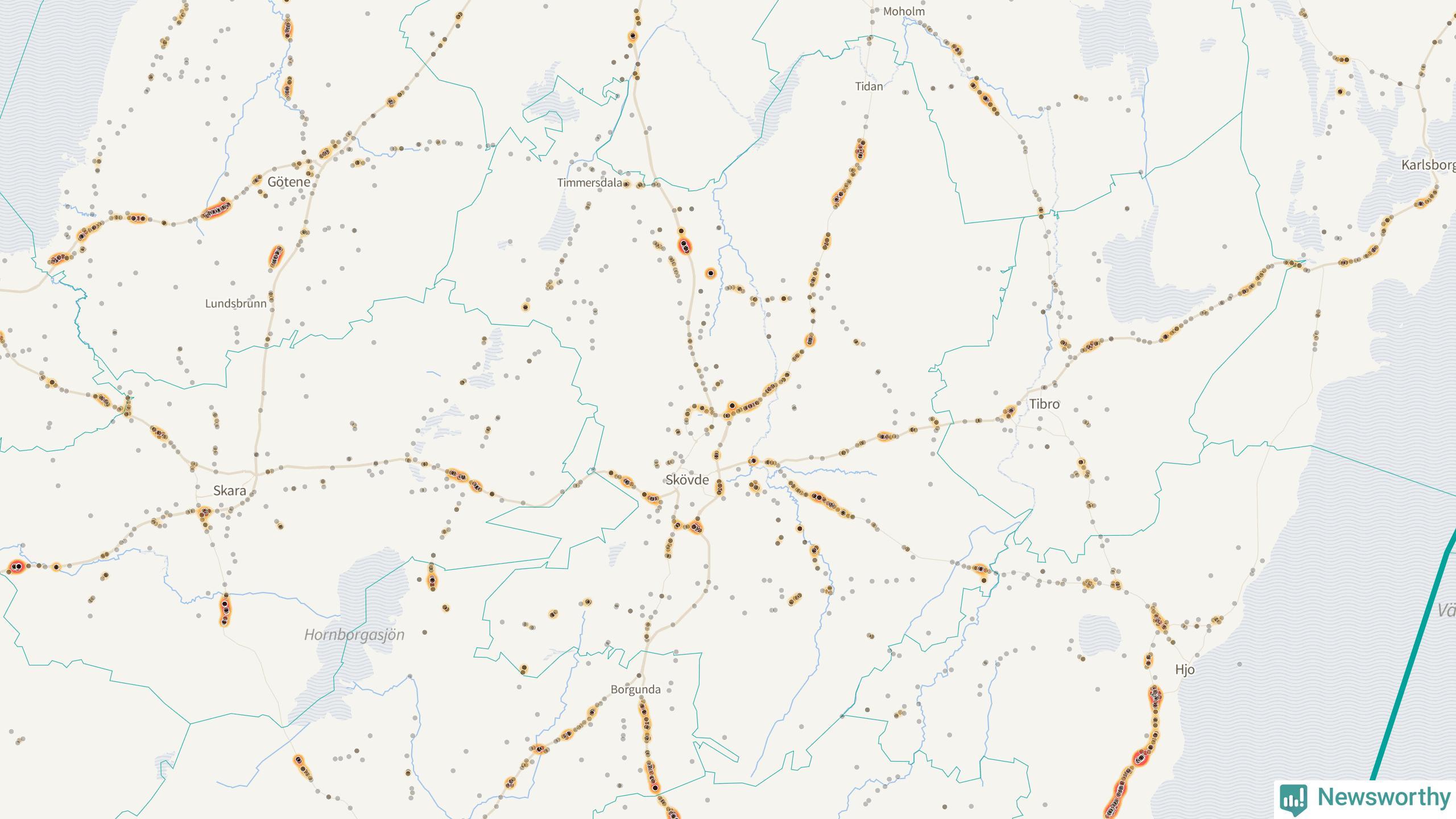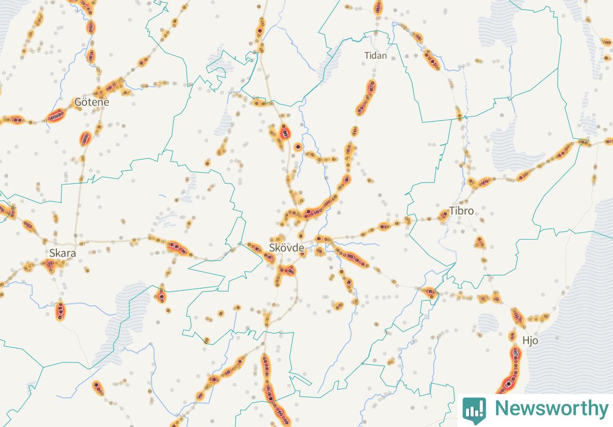 På hösten ökar risken för viltolyckor längs vägarna. Under de senaste fem höstarna har totalt 584 olyckor rapporterats i Skövde kommun. Här är de mest drabbade vägarna.