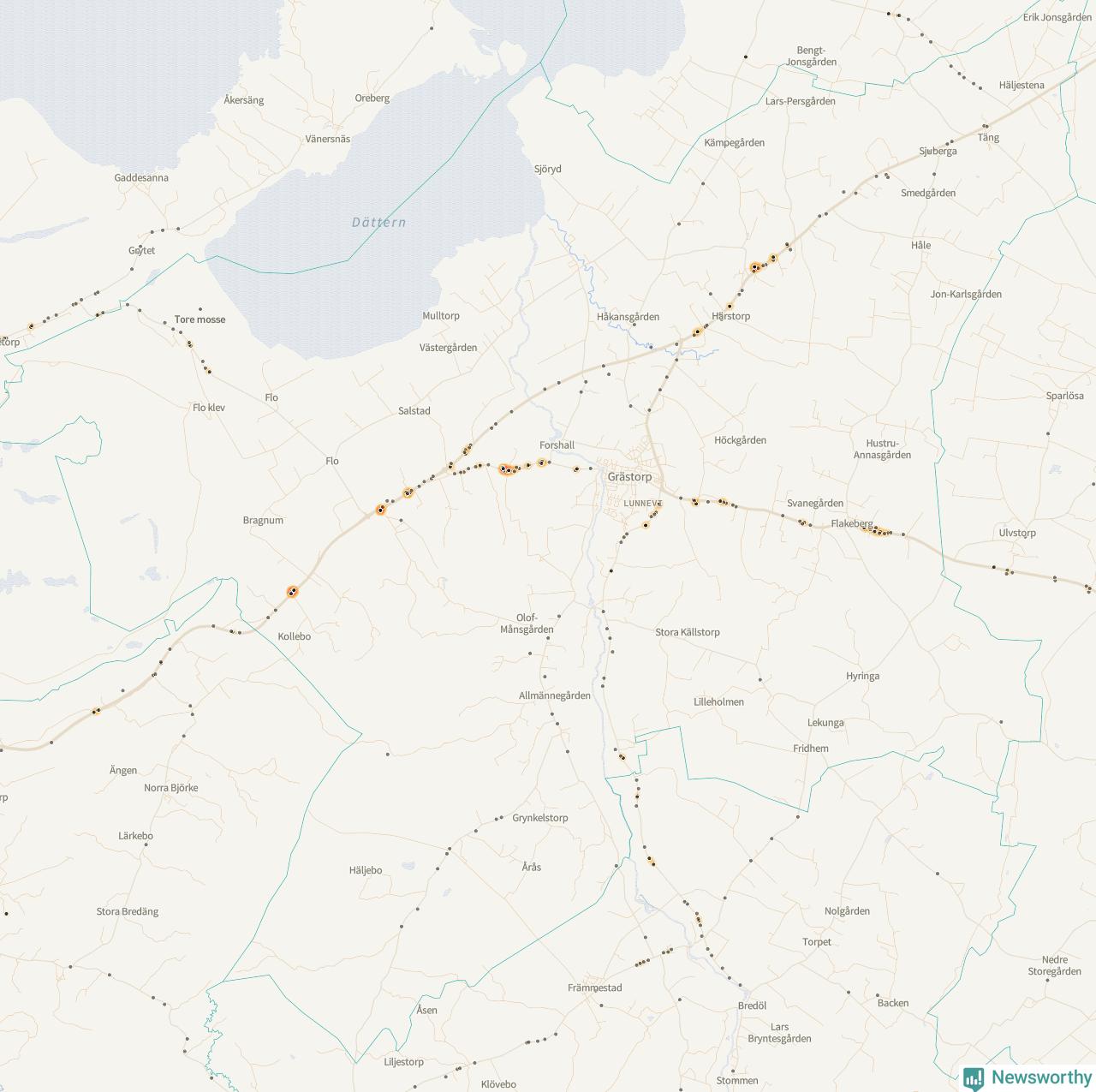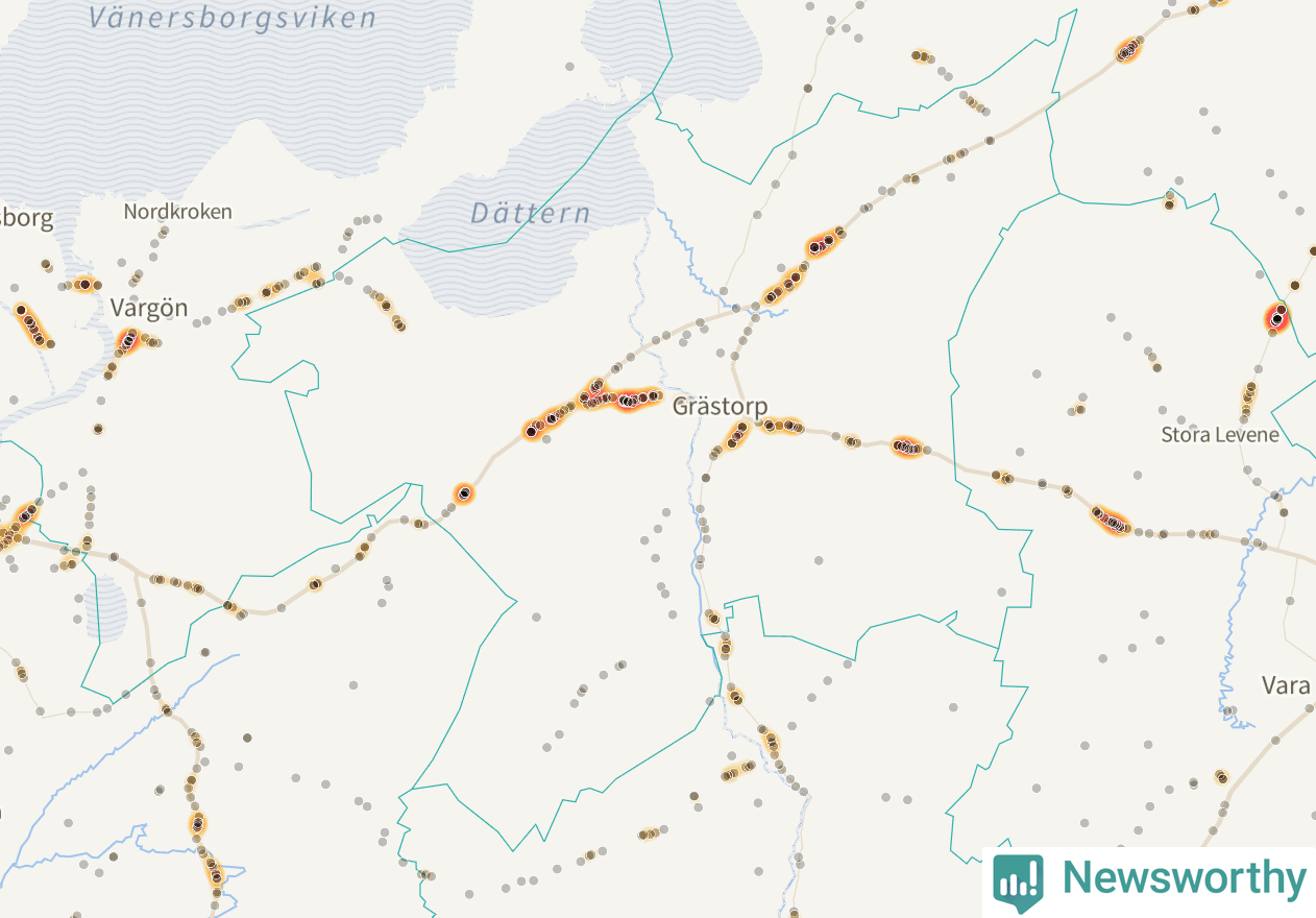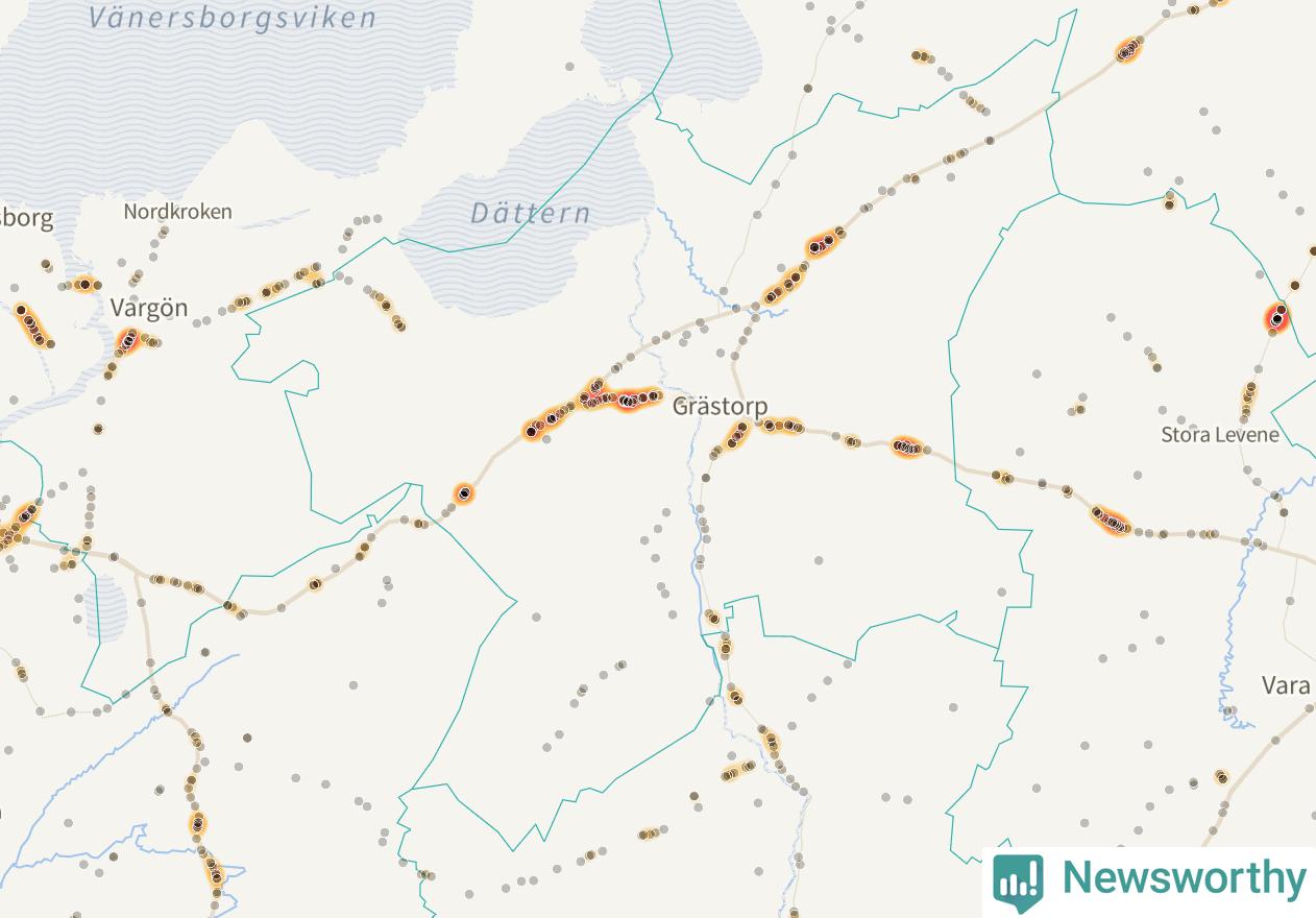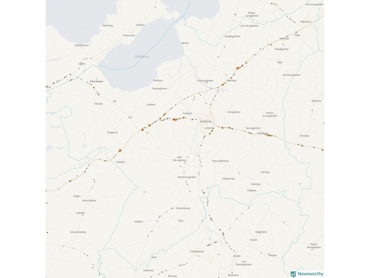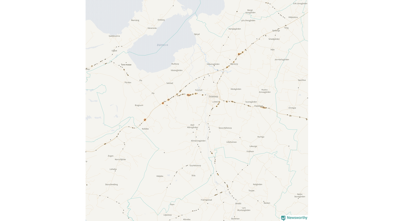 På hösten ökar risken för viltolyckor längs vägarna. Under de senaste fem höstarna har totalt 201 olyckor rapporterats i Grästorps kommun. Här är de mest drabbade vägarna.