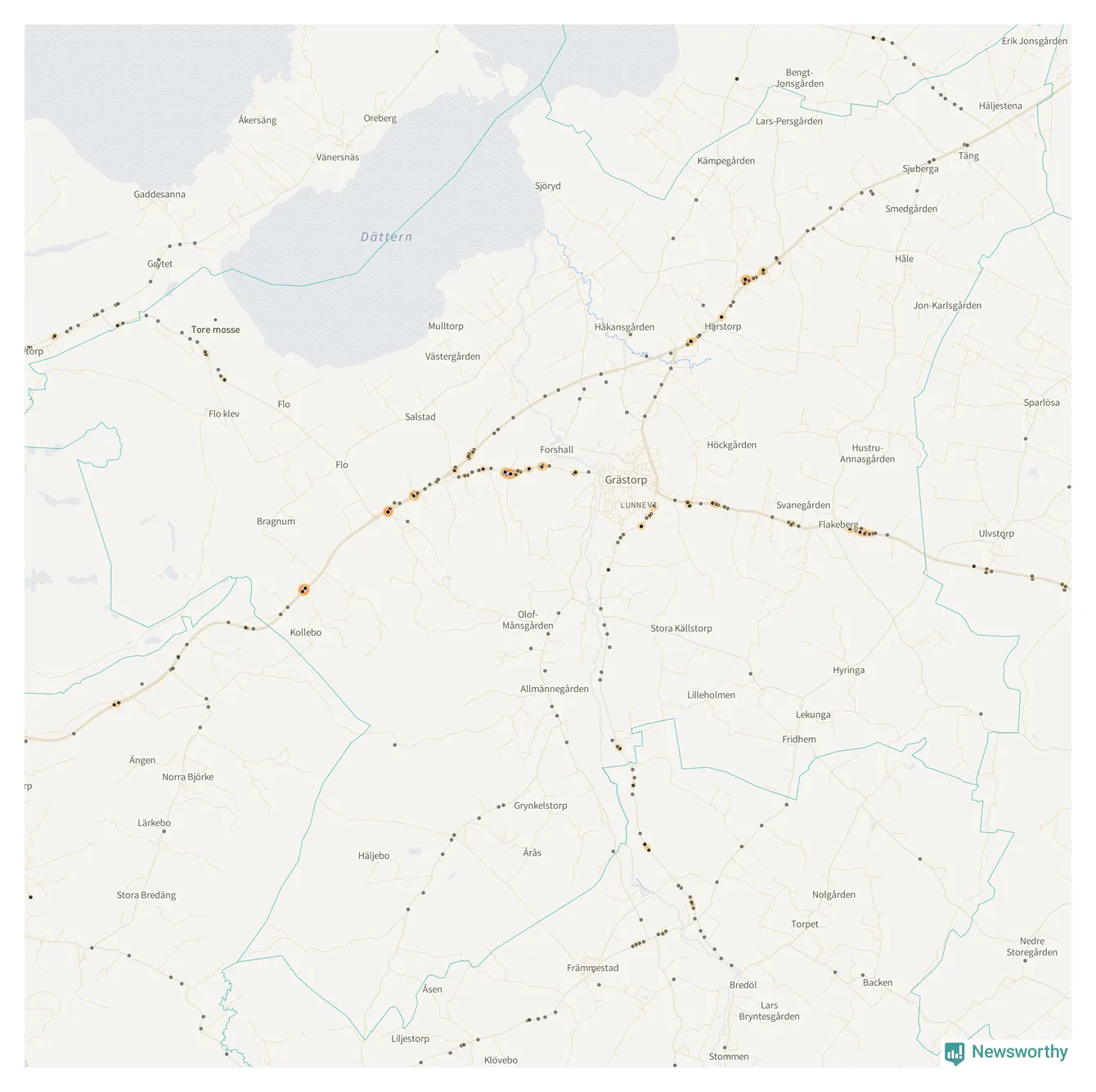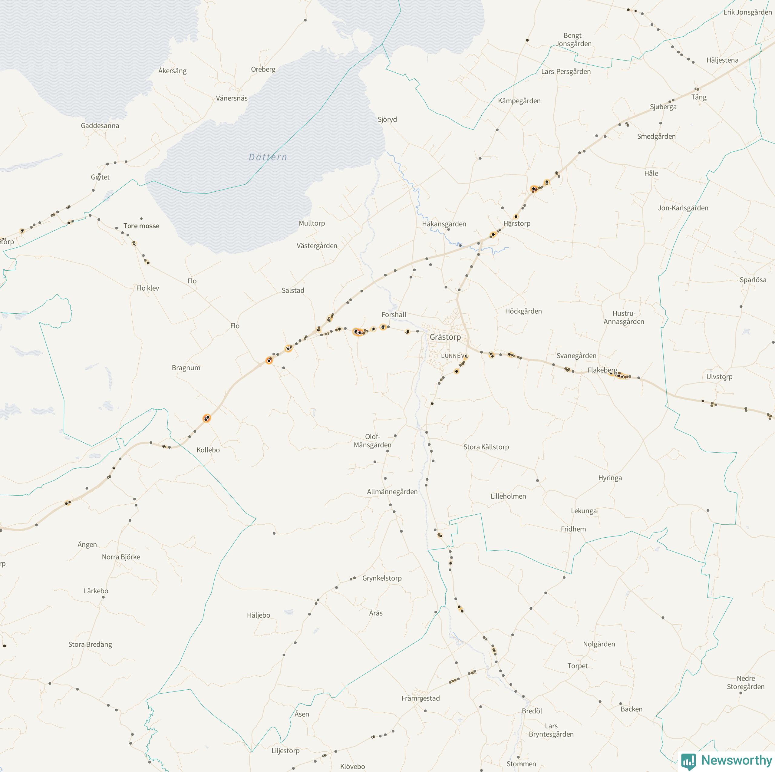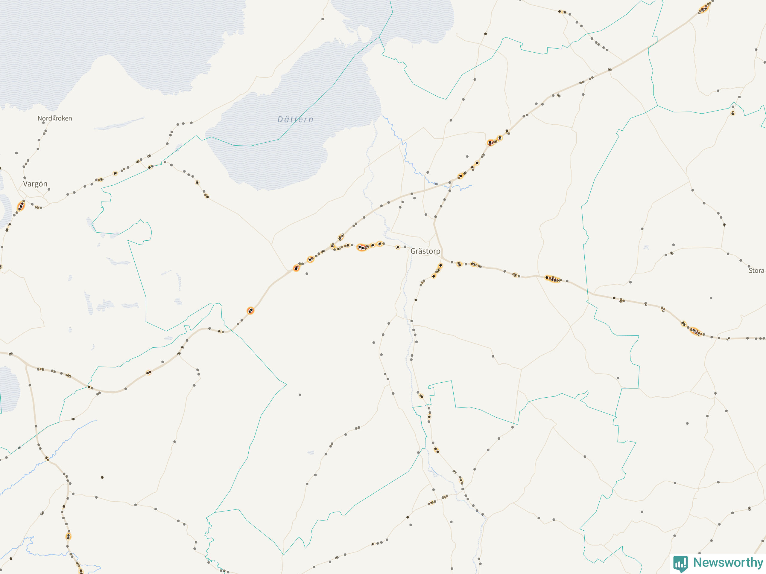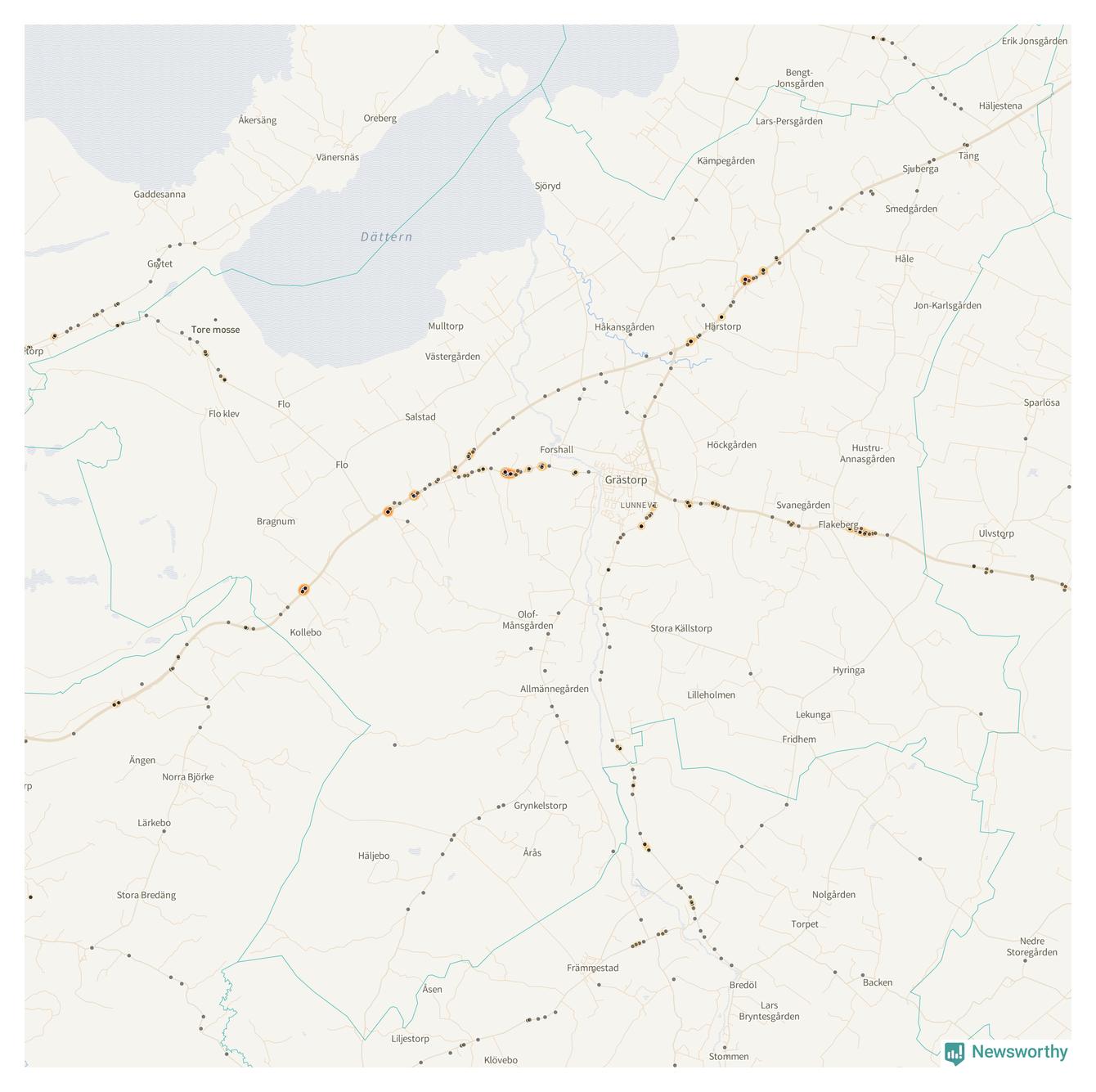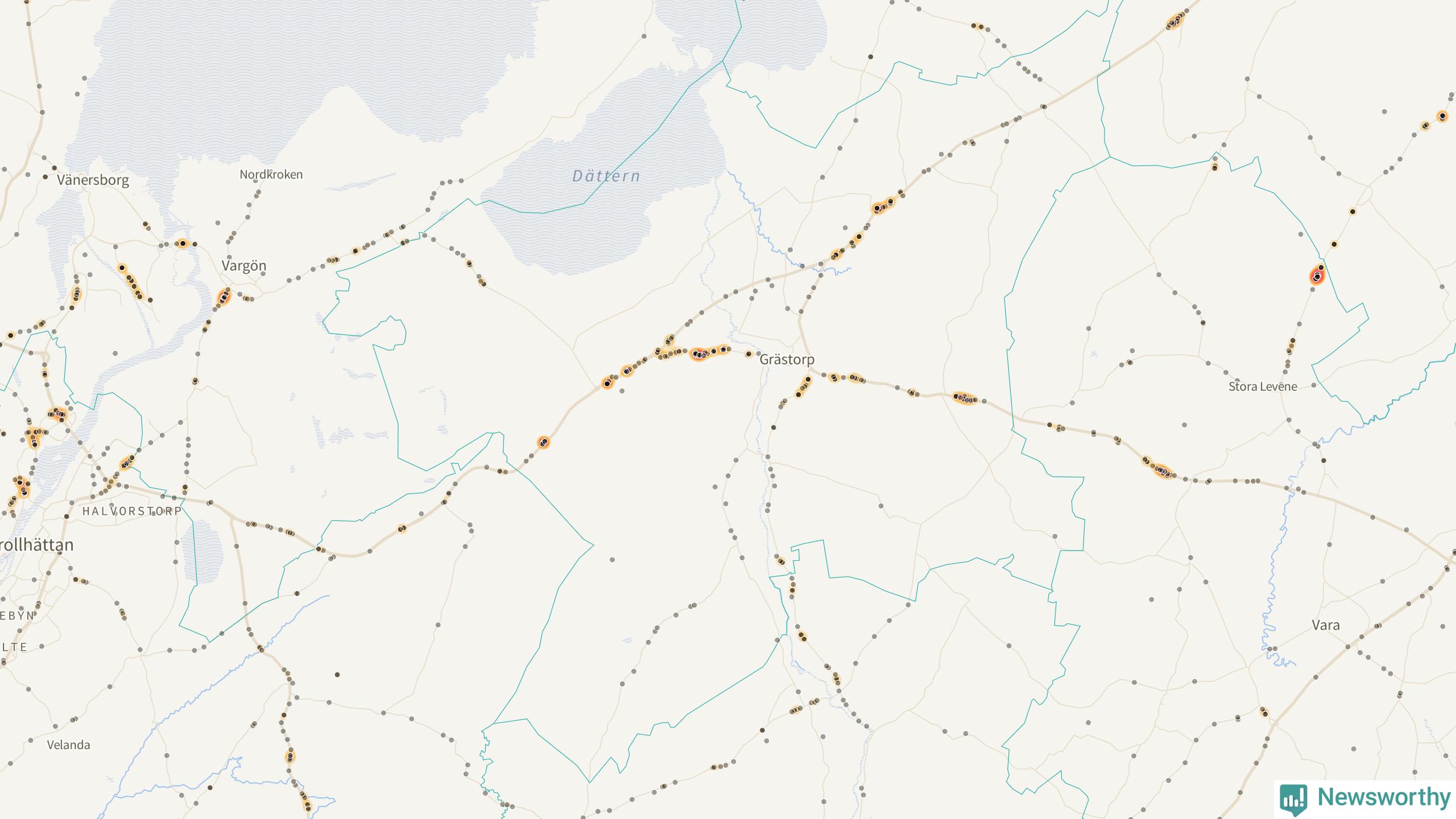 På hösten ökar risken för viltolyckor längs vägarna. Under de senaste fem höstarna har totalt 201 olyckor rapporterats i Grästorps kommun. Här är de mest drabbade vägarna.