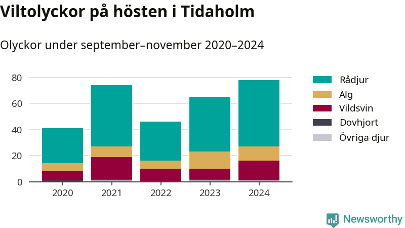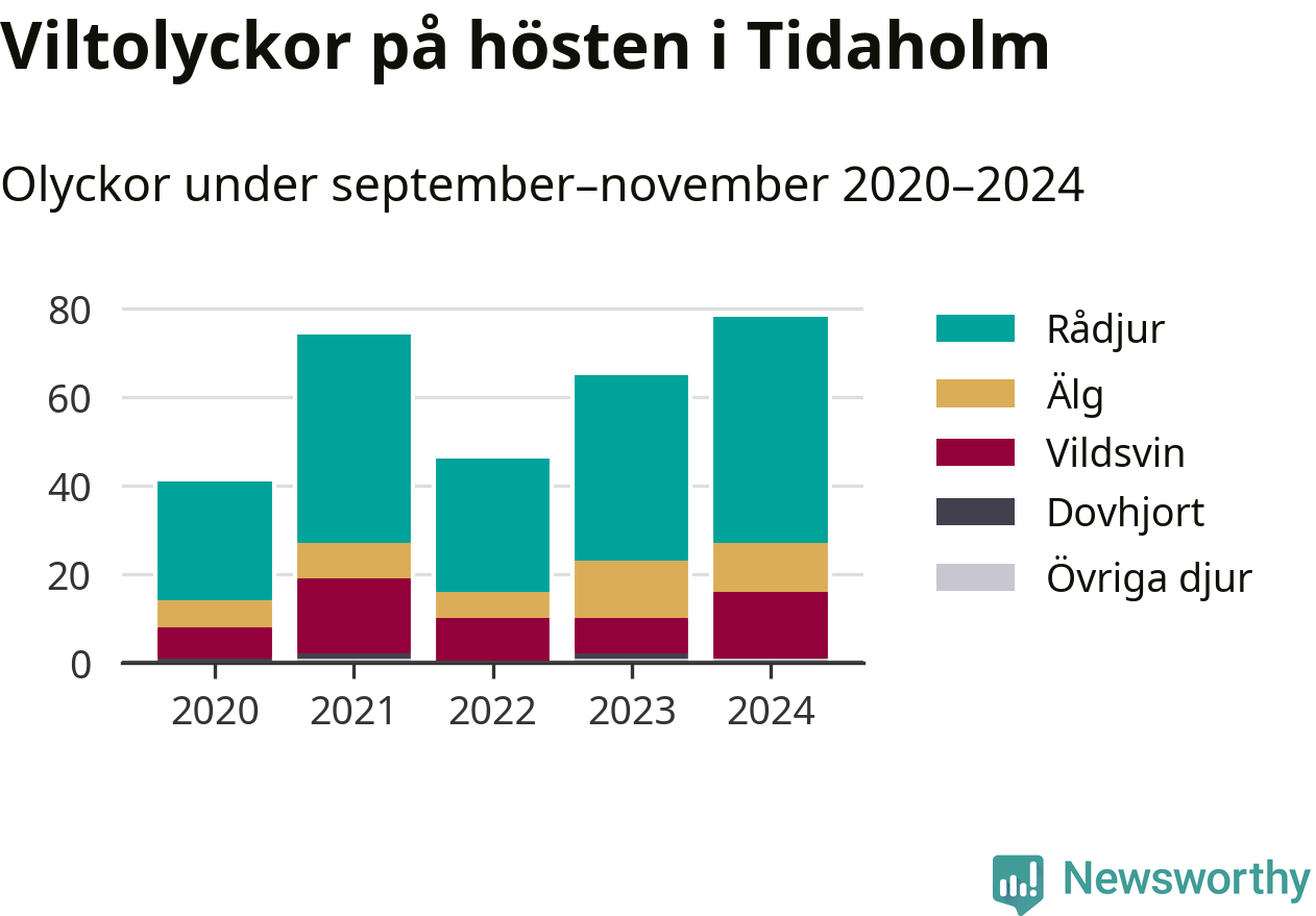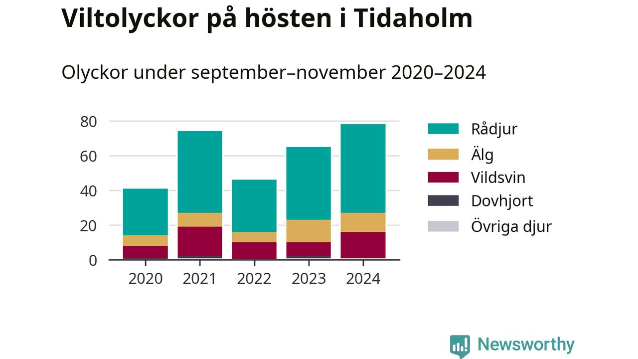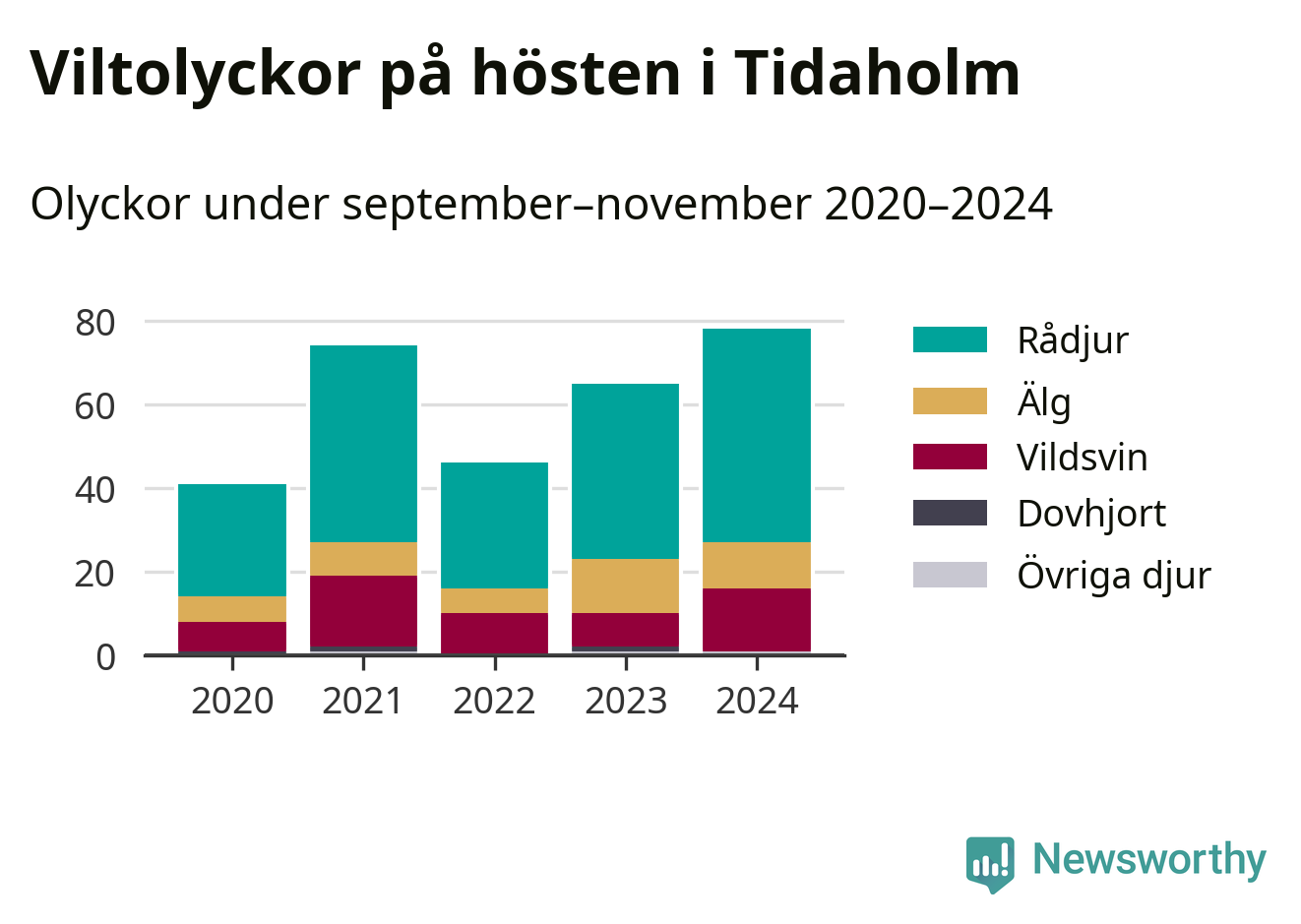 Under de senaste höstarna har antalet viltolyckor ökat i Sverige. I fjol höst noterades också flest viltolyckor i Tidaholm hittills under 2020-talet, totalt 78 stycken.